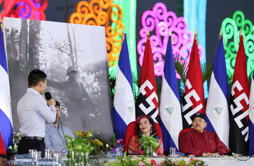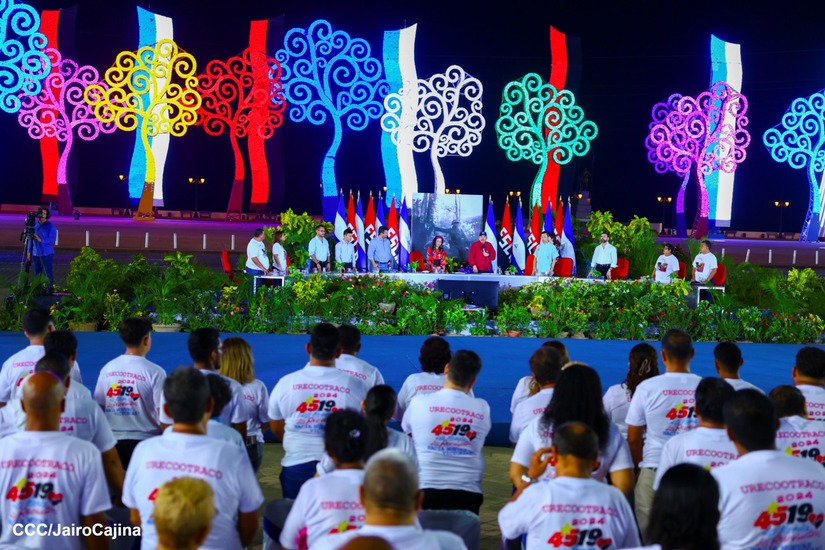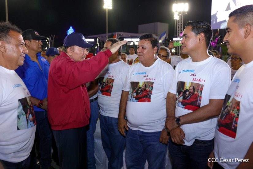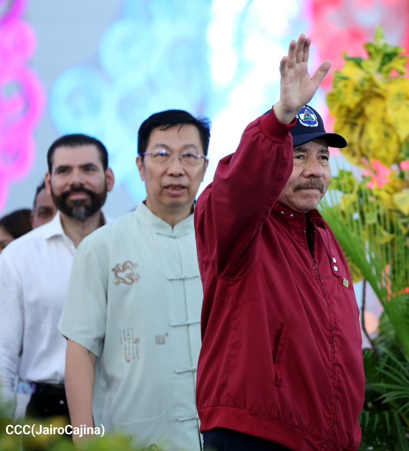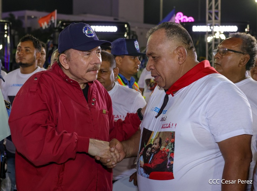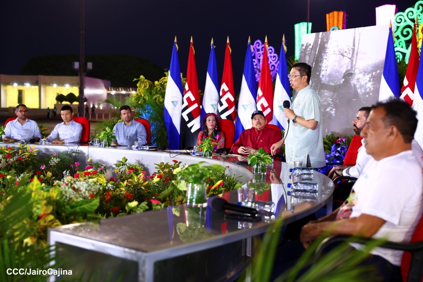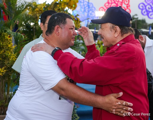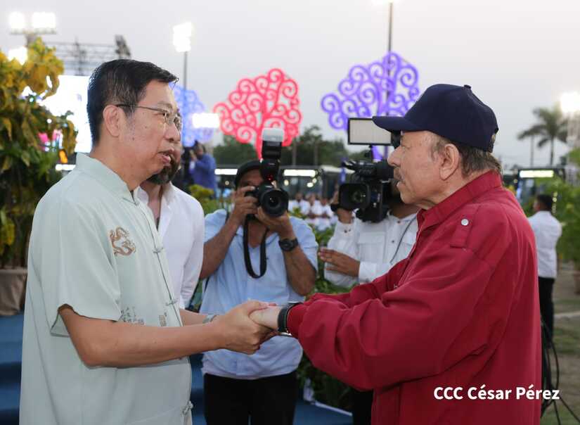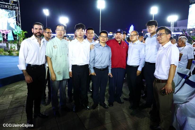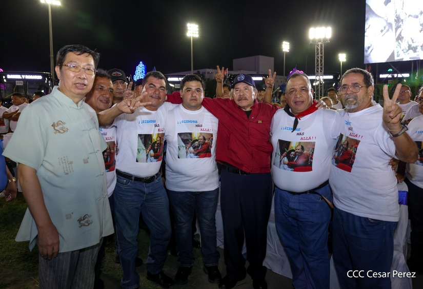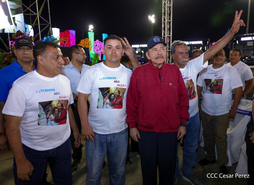 El Presidente de la República, Comandante Daniel Ortega y la Vicepresidenta Compañera Rosario Murillo, presiden el acto de la entrega de autobuses provenientes de la República Popular China a transportistas de las cooperativas de Managua, en conmemoración al Comandante Germán Pomares Ordóñez.