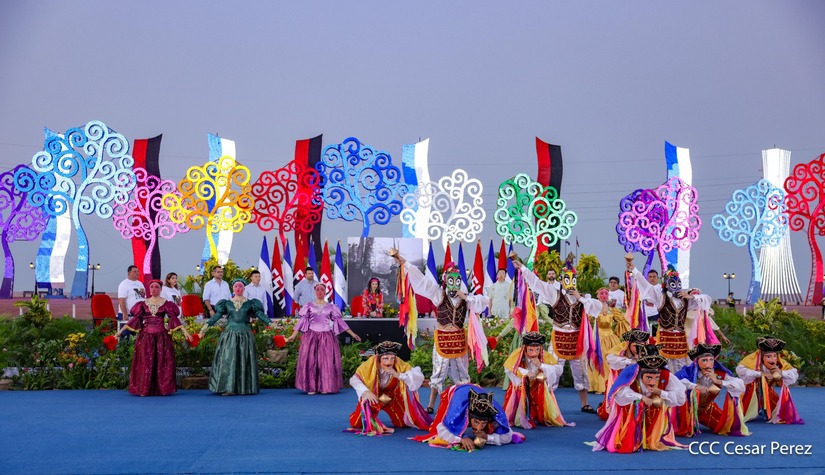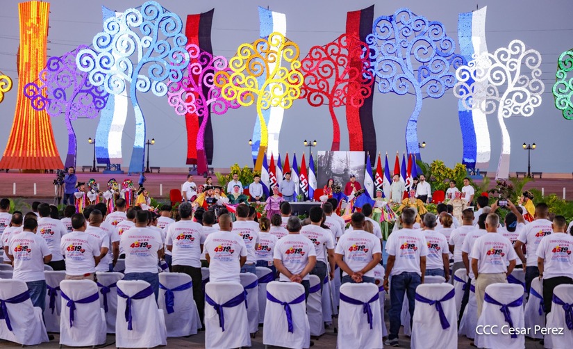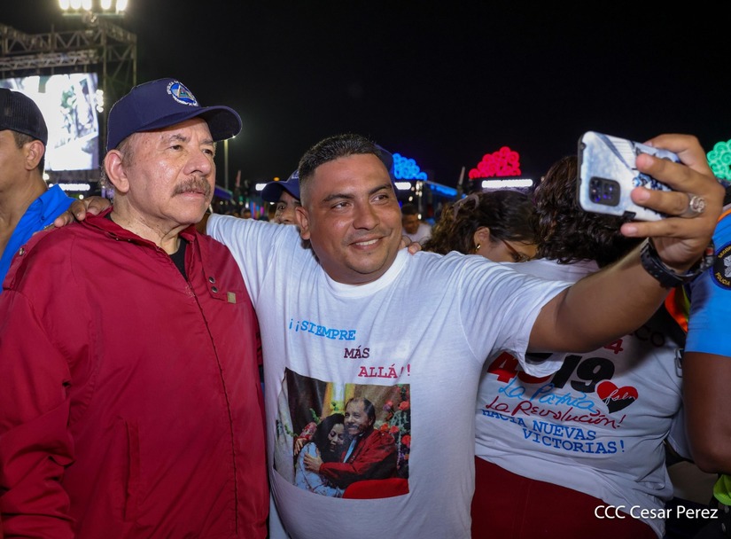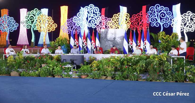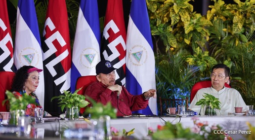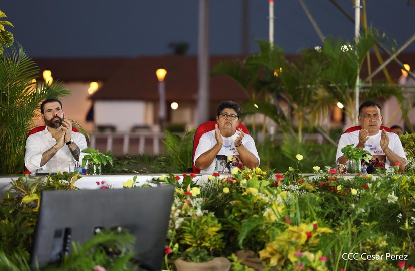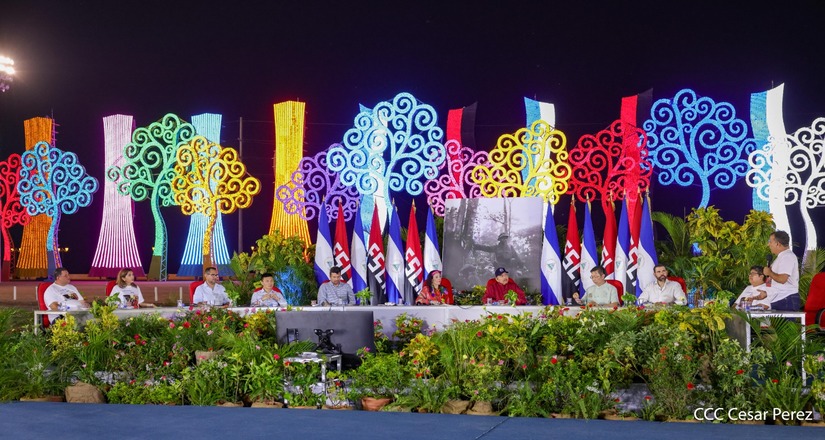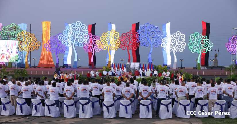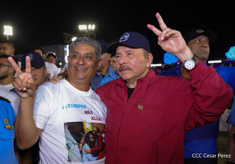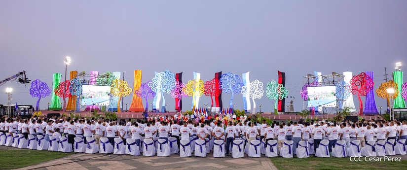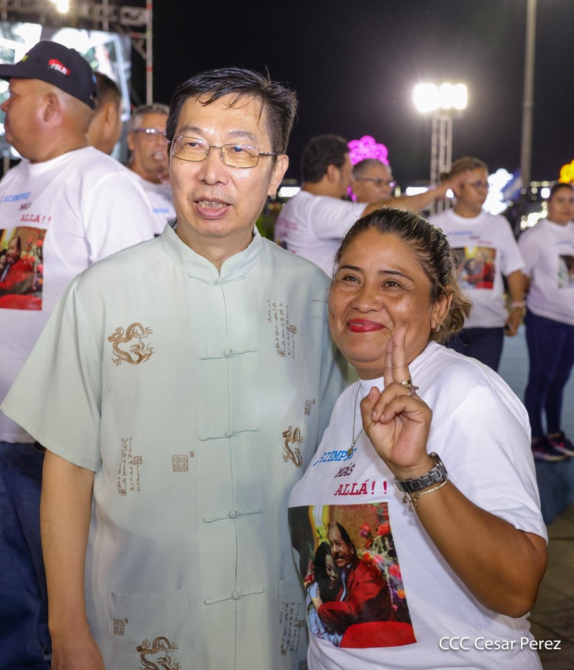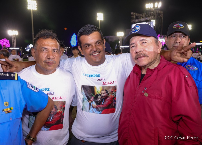 El Presidente de la República, Comandante Daniel Ortega y la Vicepresidenta Compañera Rosario Murillo, presiden el acto de la entrega de autobuses provenientes de la República Popular China a transportistas de las cooperativas de Managua, en conmemoración al Comandante Germán Pomares Ordóñez.