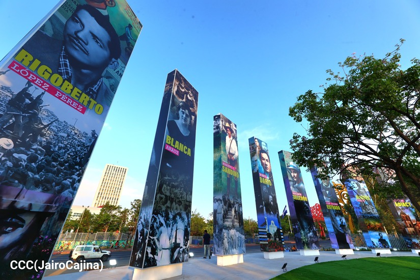 En saludo al 45 aniversario de la Revolución Popular Sandinista se inauguró el Parque de los Héroes de la Dignidad Nacional, espacio ubicado en la Avenida de Bolívar a Chávez donde se colocaron hermosas estelas en las que se reflejan las imágenes de nuestros Héroes de la Dignidad Nacional.