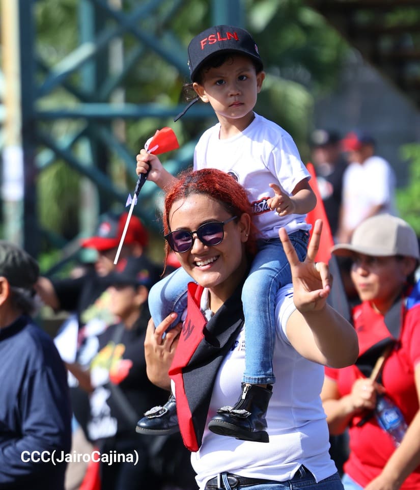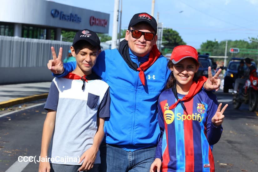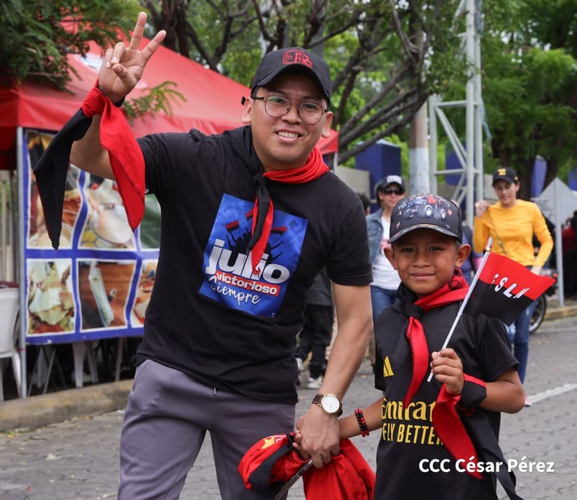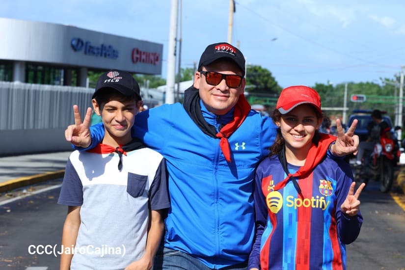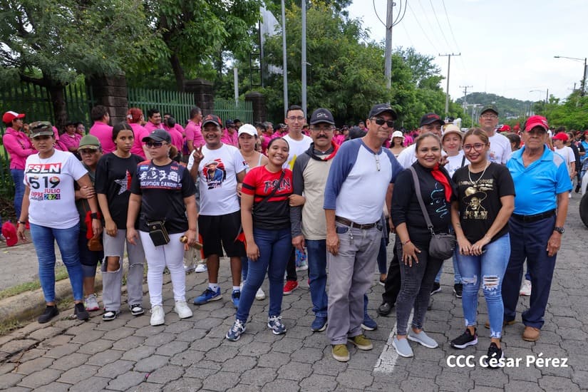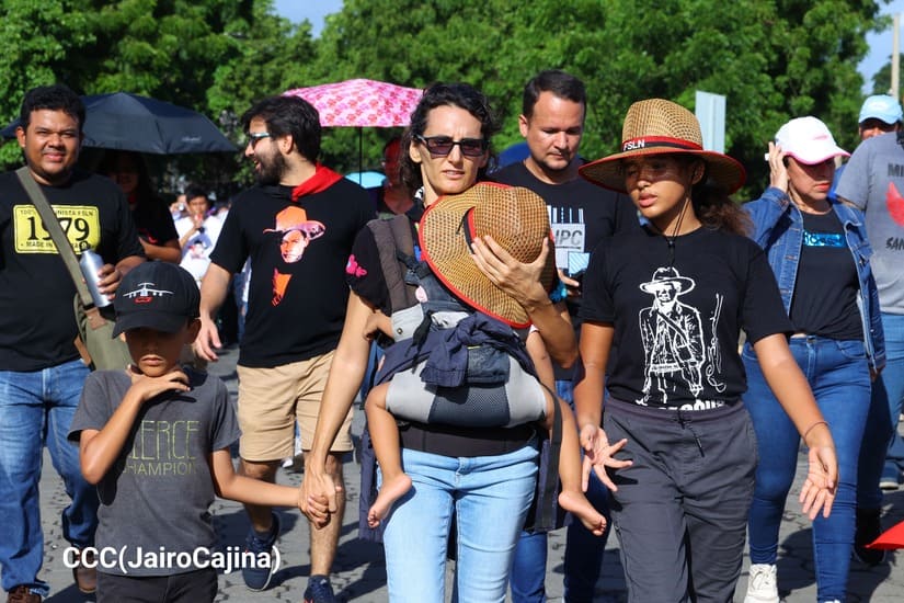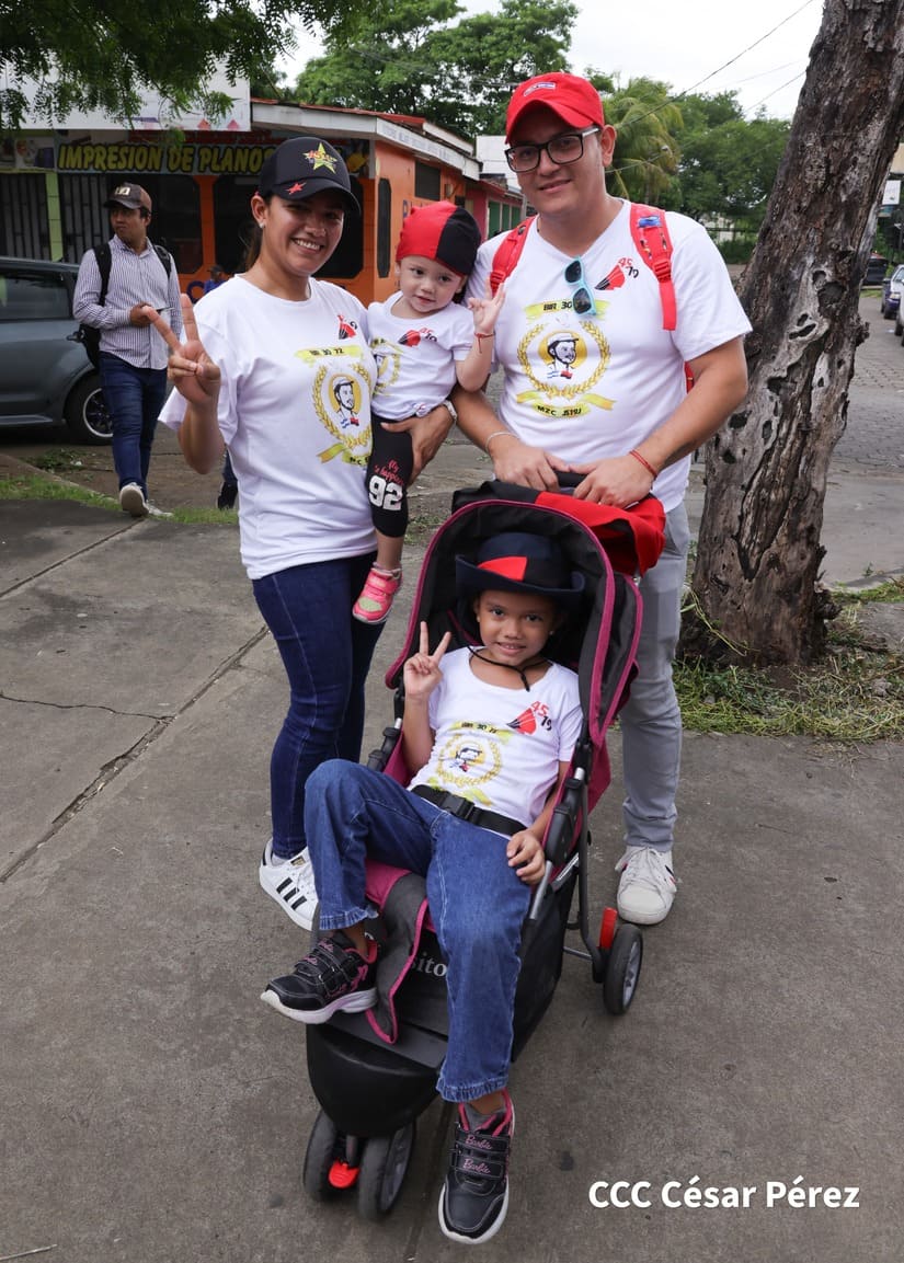 En Managua, las familias revolucionarias con su camiseta, pañoletas y banderas rojinegras, caminaron para celebrar y honrar a los Héroes y Mártires, quienes abonaron con su sangre la Nicaragua libre, que este próximo 19 de julio celebrará 45 años de Revolución.