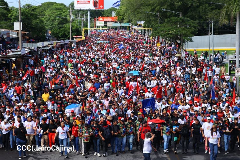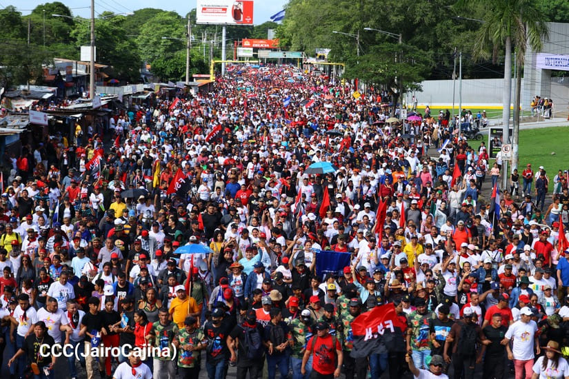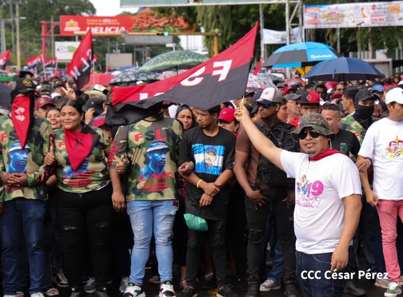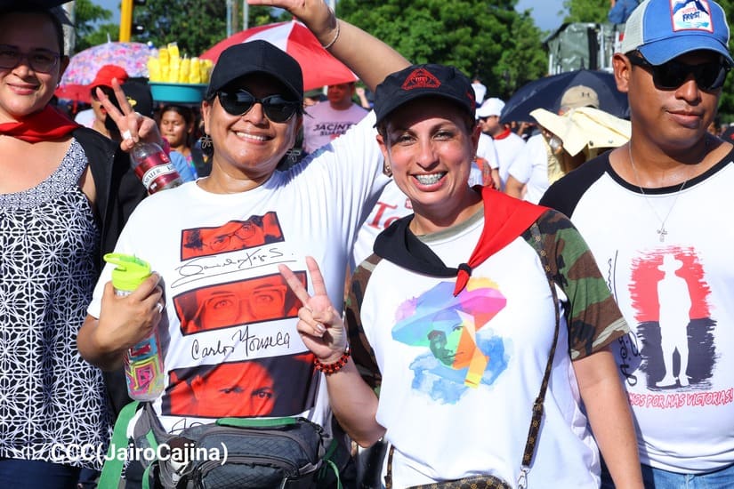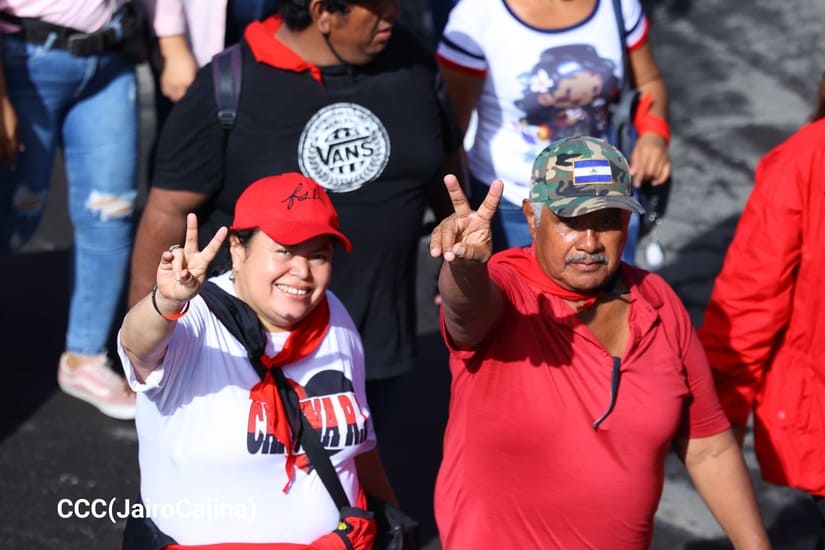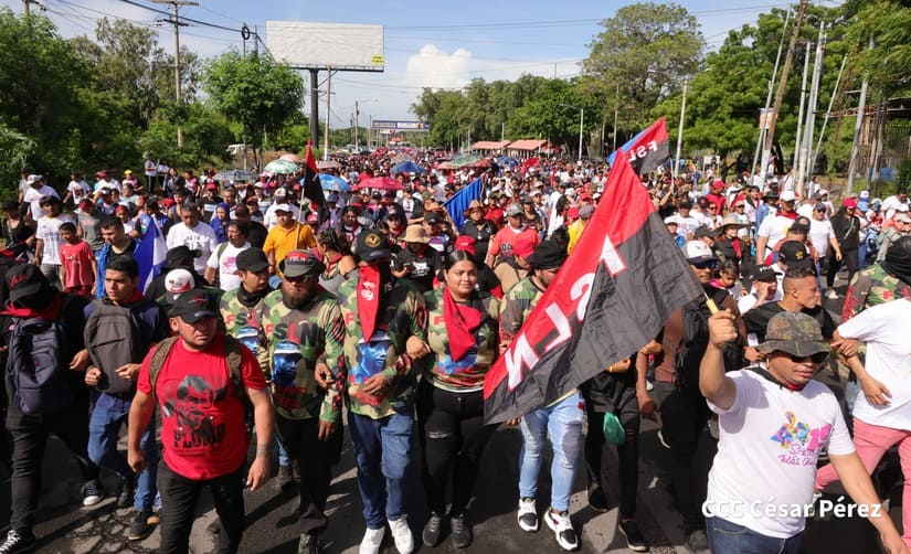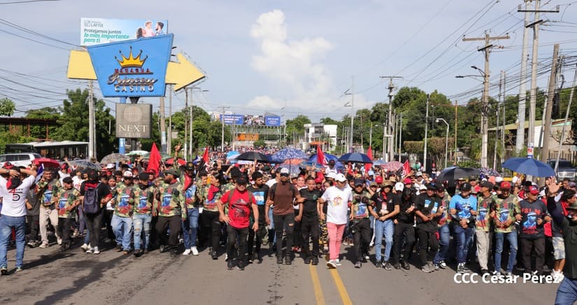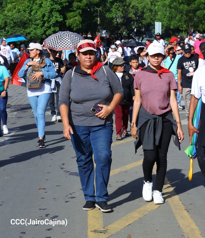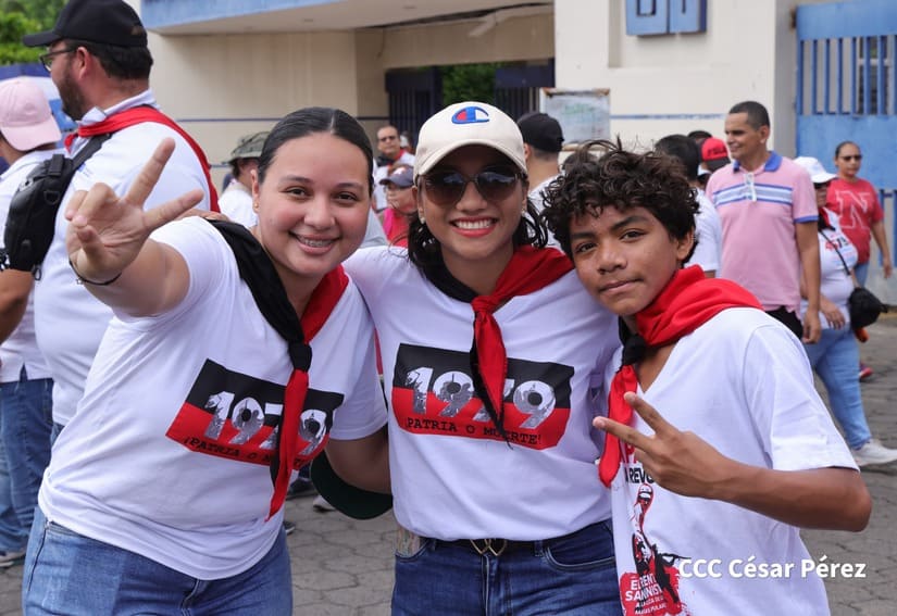 En Managua, las familias revolucionarias con su camiseta, pañoletas y banderas rojinegras, caminaron para celebrar y honrar a los Héroes y Mártires, quienes abonaron con su sangre la Nicaragua libre, que este próximo 19 de julio celebrará 45 años de Revolución.
