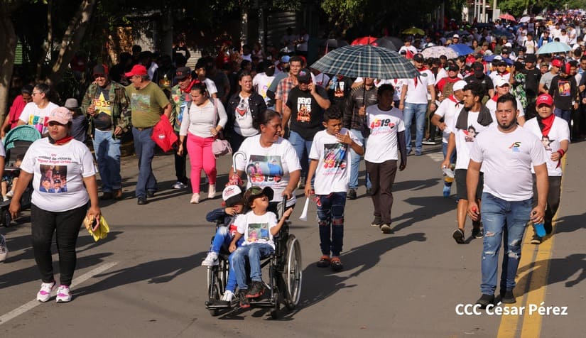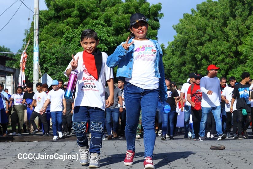 La caminata de la alegría, que también celebra la paz y los triunfos del pueblo, salió de la Pista de los Héroes de la Insurrección, recorriendo diferentes barrios de la capital hasta llegar a las afueras de la Casa Museo del Héroe Sandinista, donde se celebró un concierto revolucionario, ratificando que ¡Nicaragua ni se Vende, ni se Rinde, Jamás!