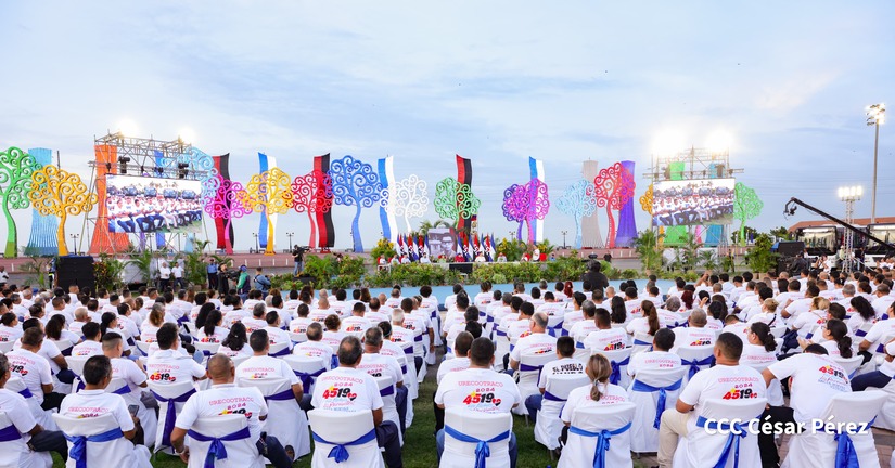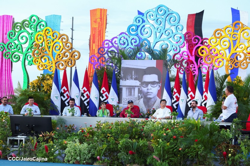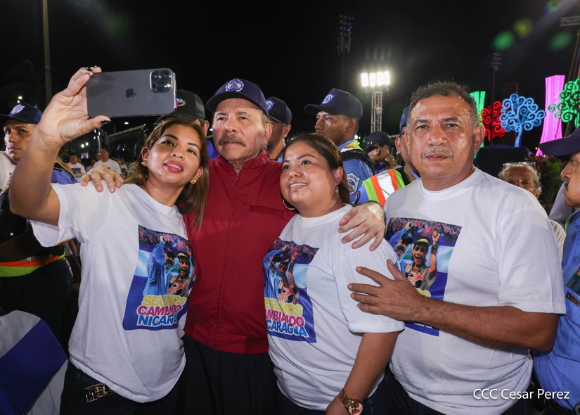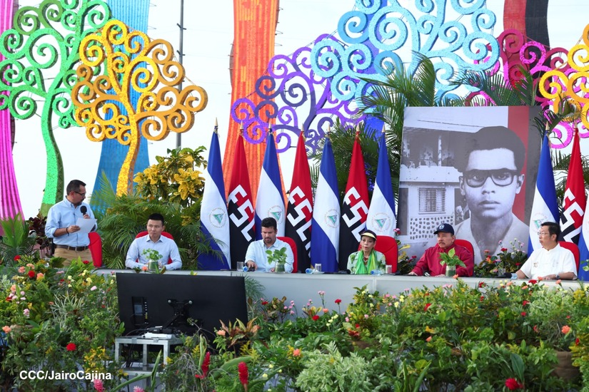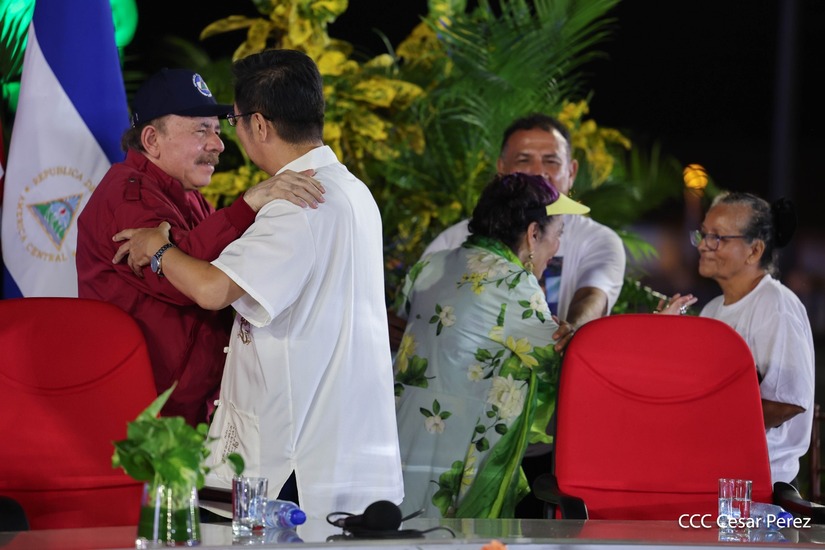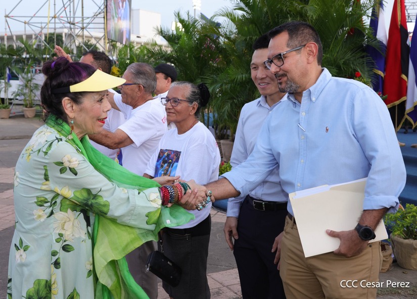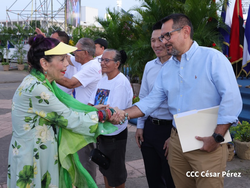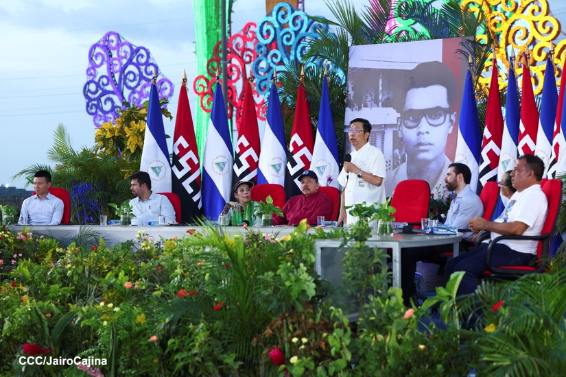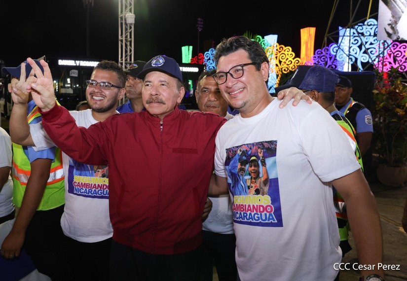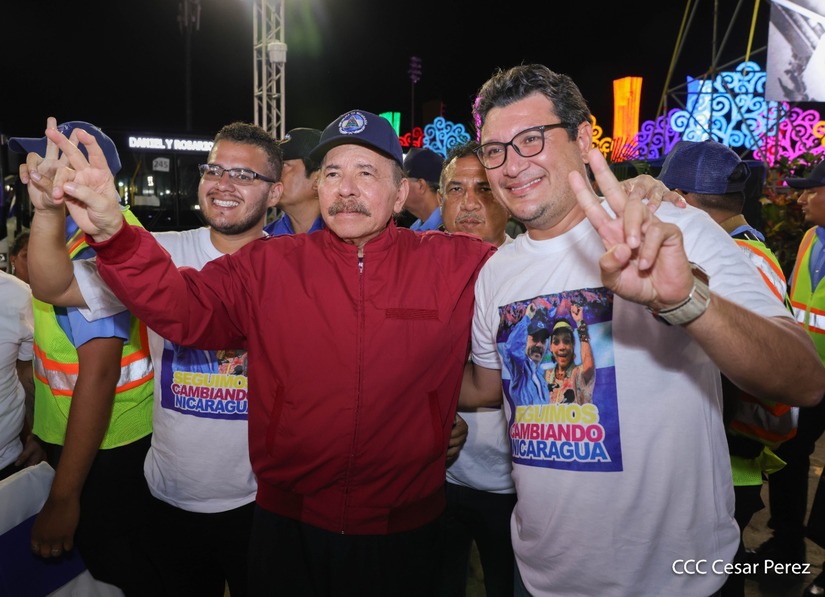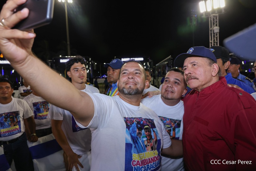 El Presidente de la República, Comandante Daniel Ortega y la Vicepresidenta Compañera Rosario Murillo, presiden el acto de la entrega de 250 autobuses provenientes de la República Popular China a 28 cooperativas de Managua, en saludo al 45 aniversario de la Revolución Popular Sandinista.