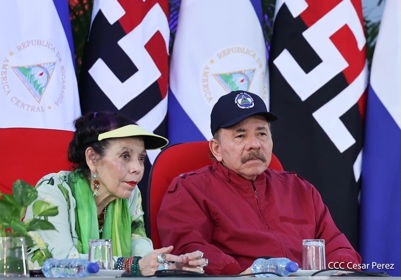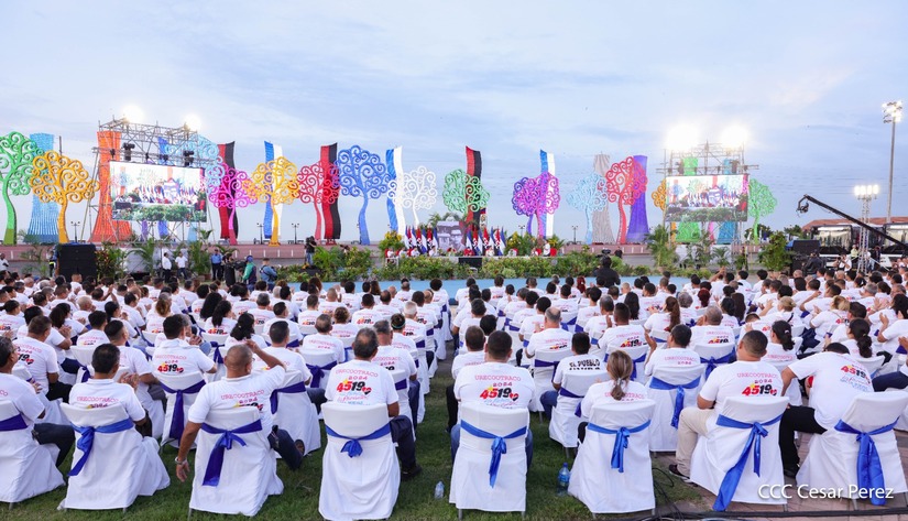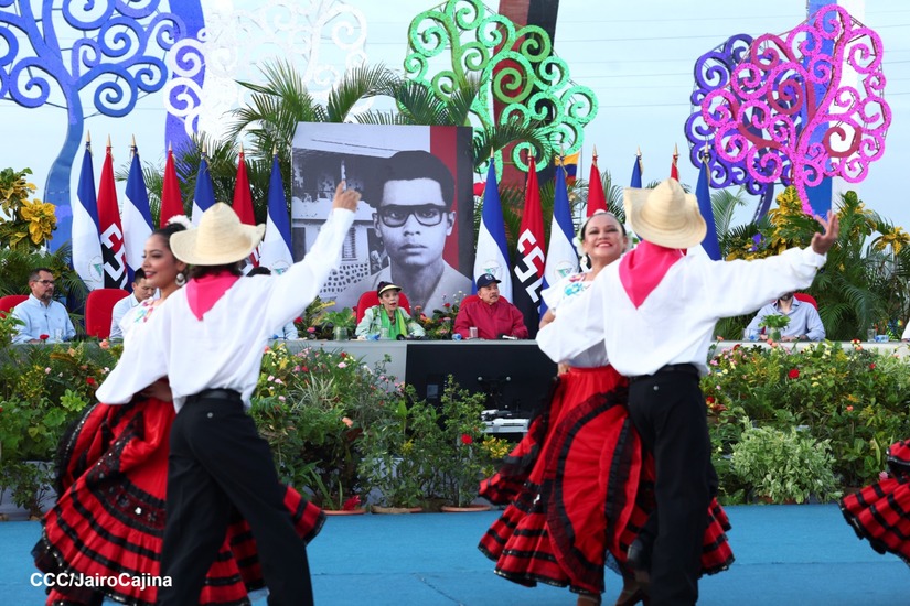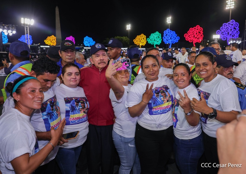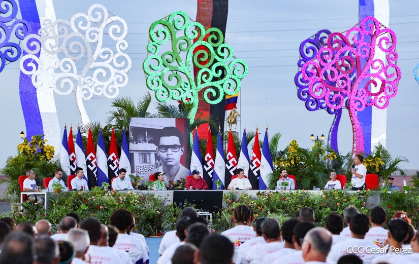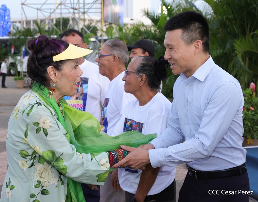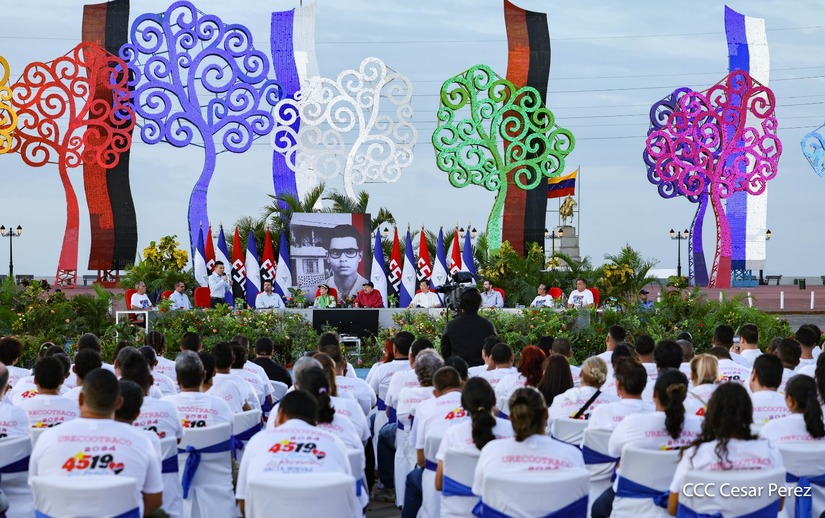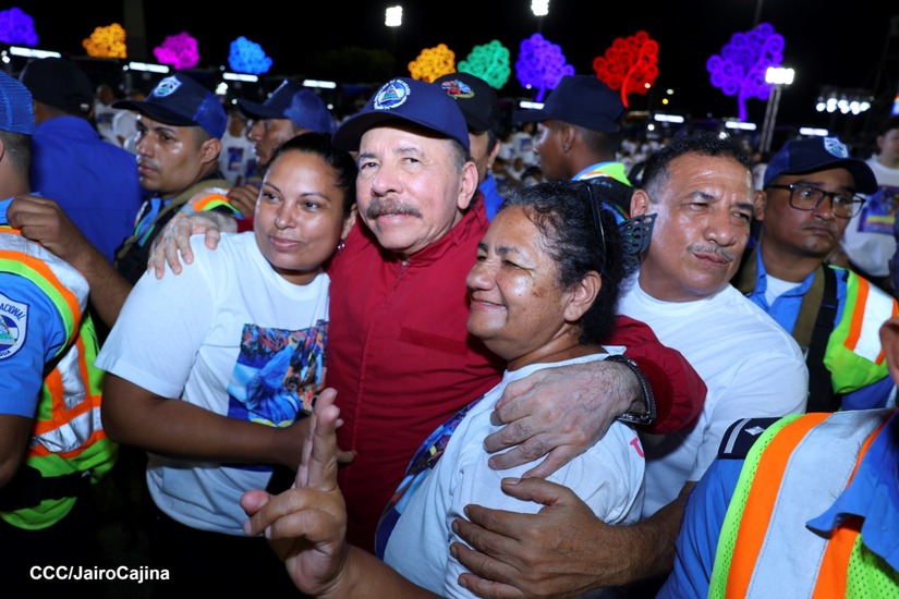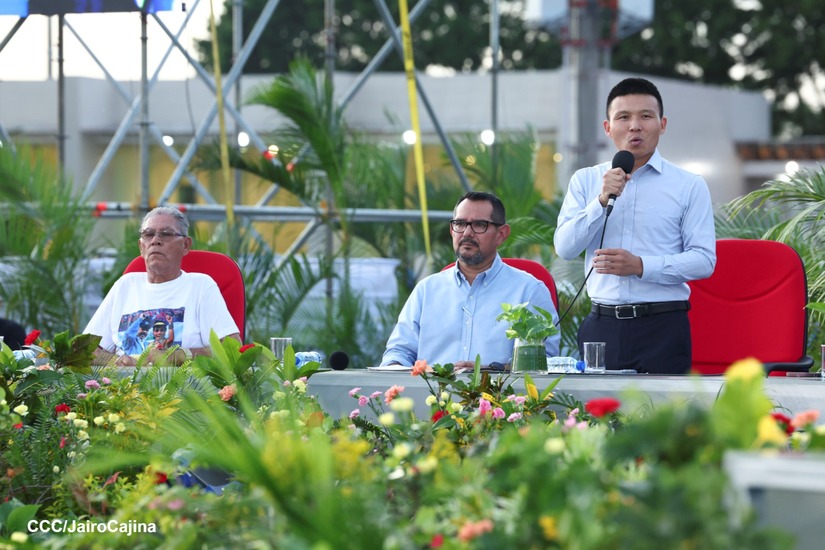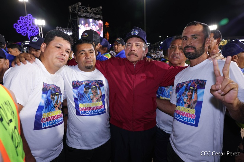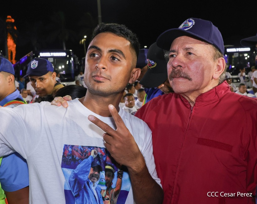 El Presidente de la República, Comandante Daniel Ortega y la Vicepresidenta Compañera Rosario Murillo, presiden el acto de la entrega de 250 autobuses provenientes de la República Popular China a 28 cooperativas de Managua, en saludo al 45 aniversario de la Revolución Popular Sandinista.