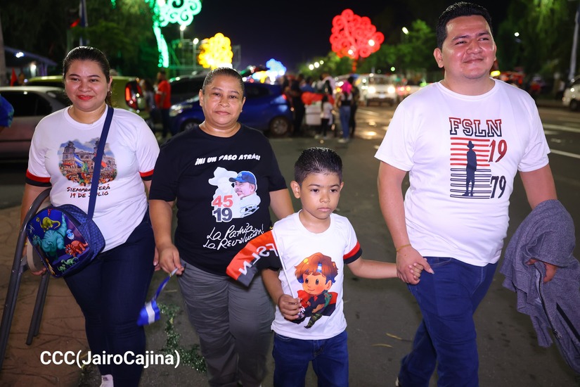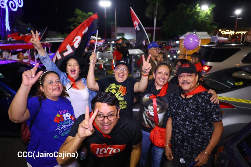 Fue una bienvenida muy emotiva, al 45/19, en la Avenida de Bolívar a Chávez, en Managua, donde la militancia sandinista, en Vigilia Comunitaria, celebró la Vida y los Milagros que Dios sigue derramando sobre esta Nicaragua Nuestra, Cristiana, Socialista y Solidaria.