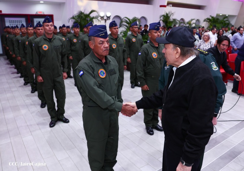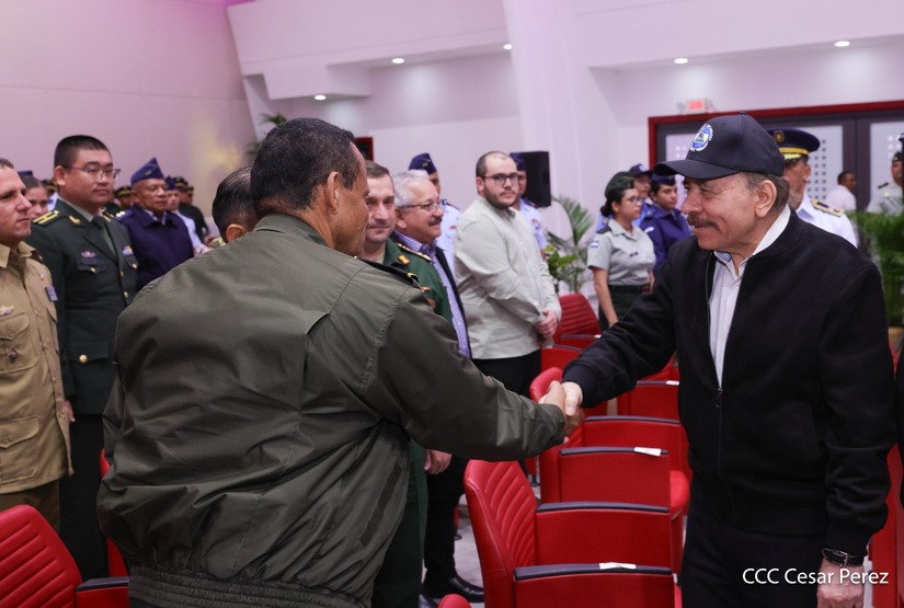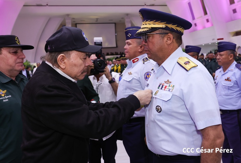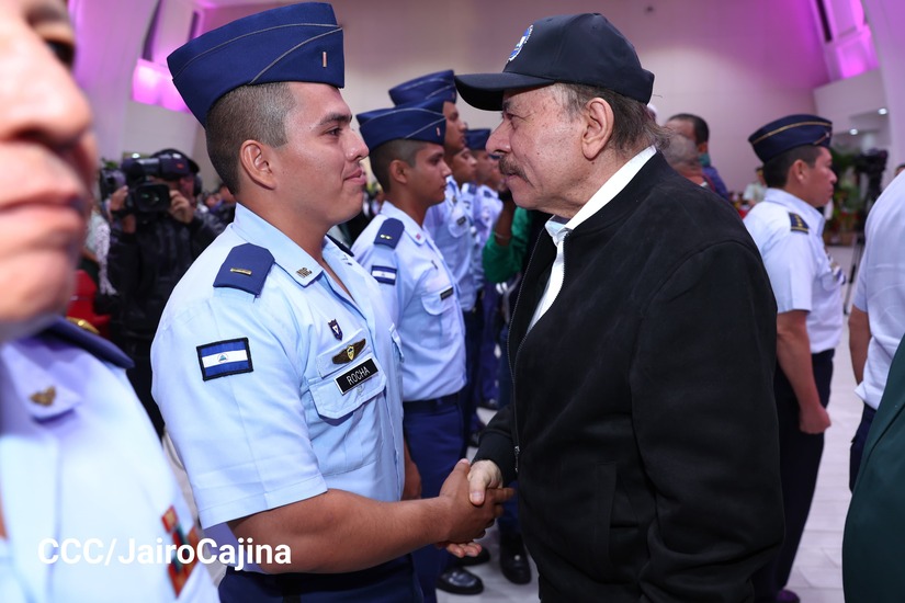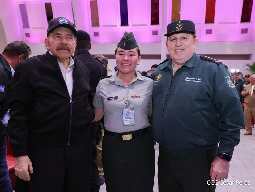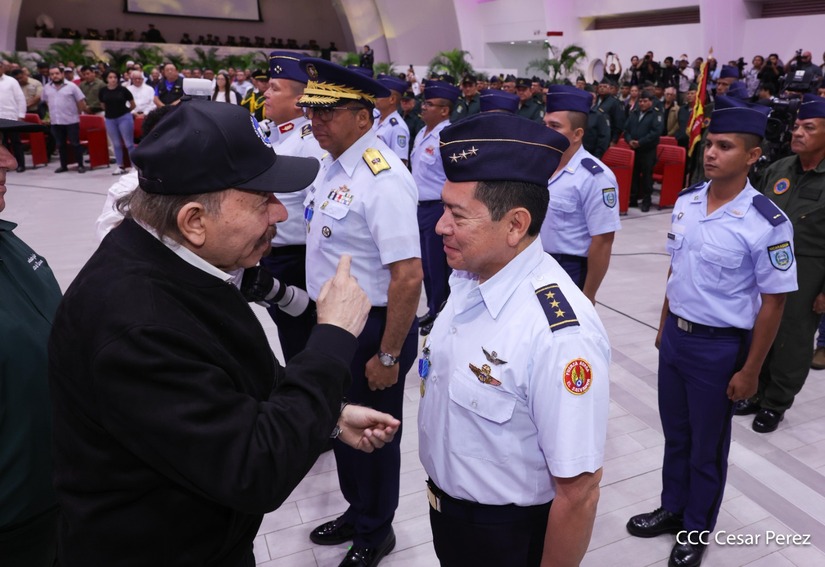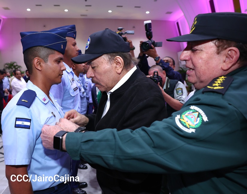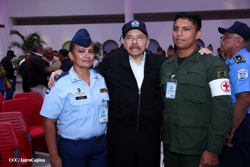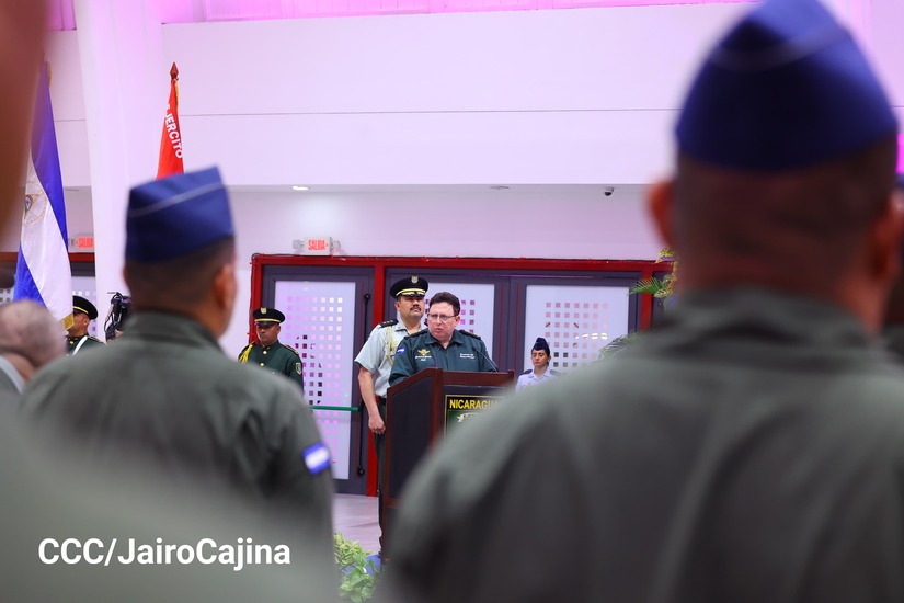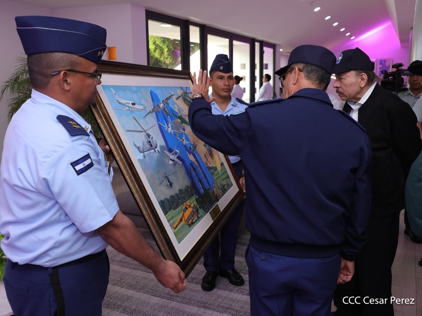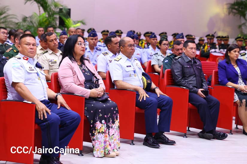 En el Centro de Convenciones “Olof Palme”, se realiza el acto de conmemoración del 45 Aniversario de Fundación de la Fuerza Aérea del Ejército de Nicaragua, presidido por el Presidente de la República y Jefe Supremo del Ejército de Nicaragua, Comandante Daniel Ortega Saavedra; la Vicepresidenta de la República, Compañera Rosario Murillo Zambrana; el Comandante en Jefe del Ejército de Nicaragua, General de Ejército Julio César Avilés Castillo.