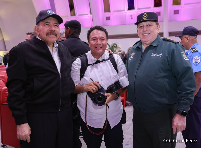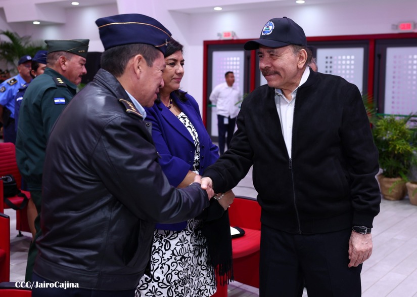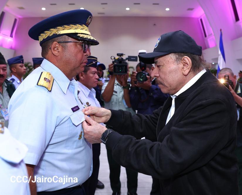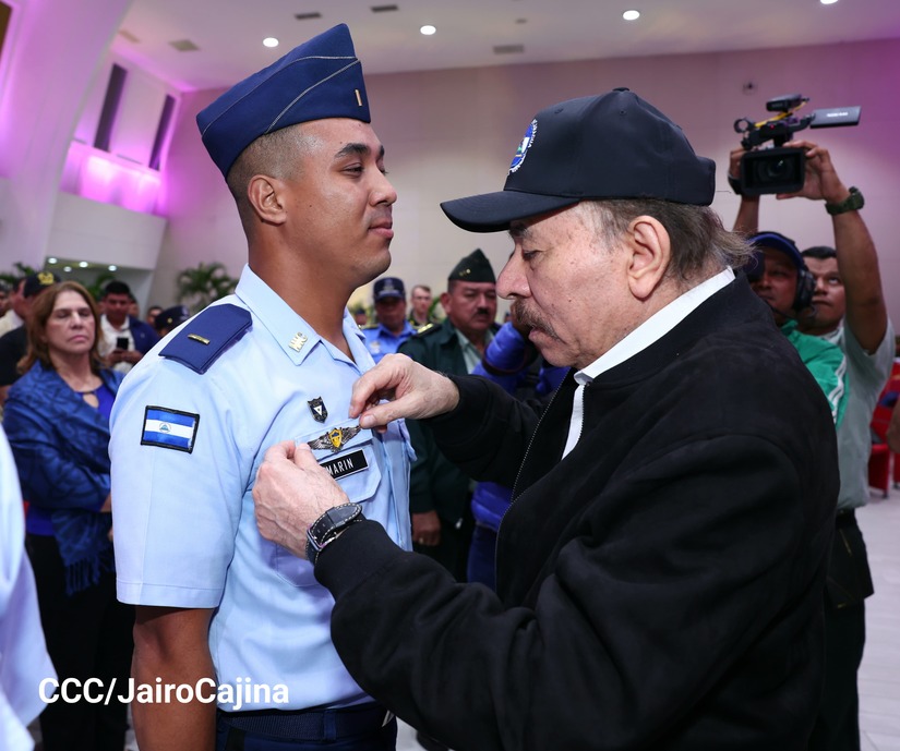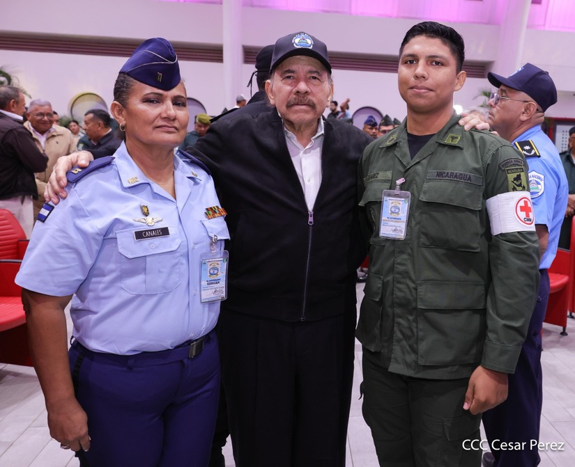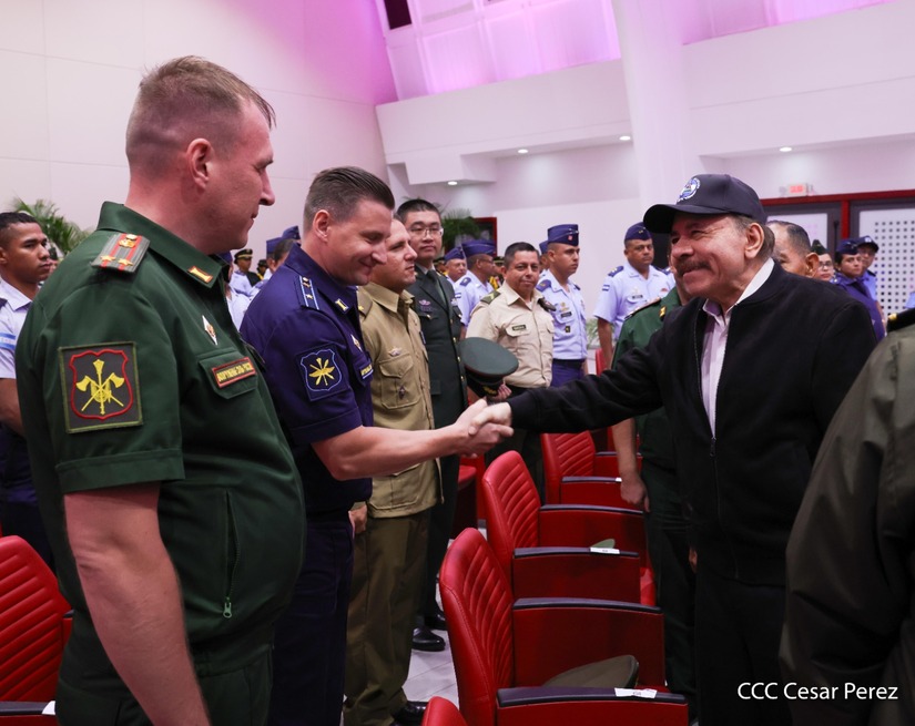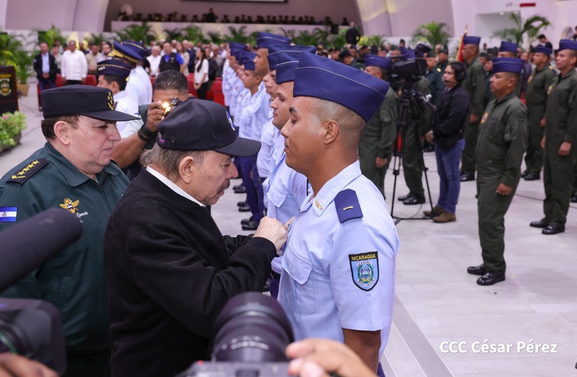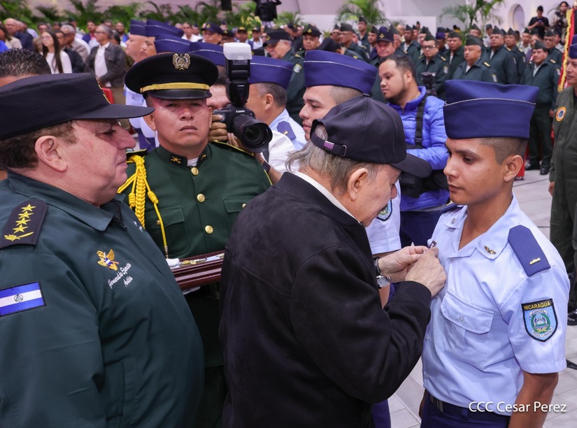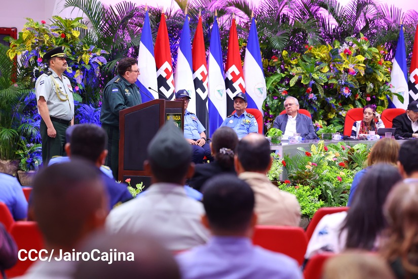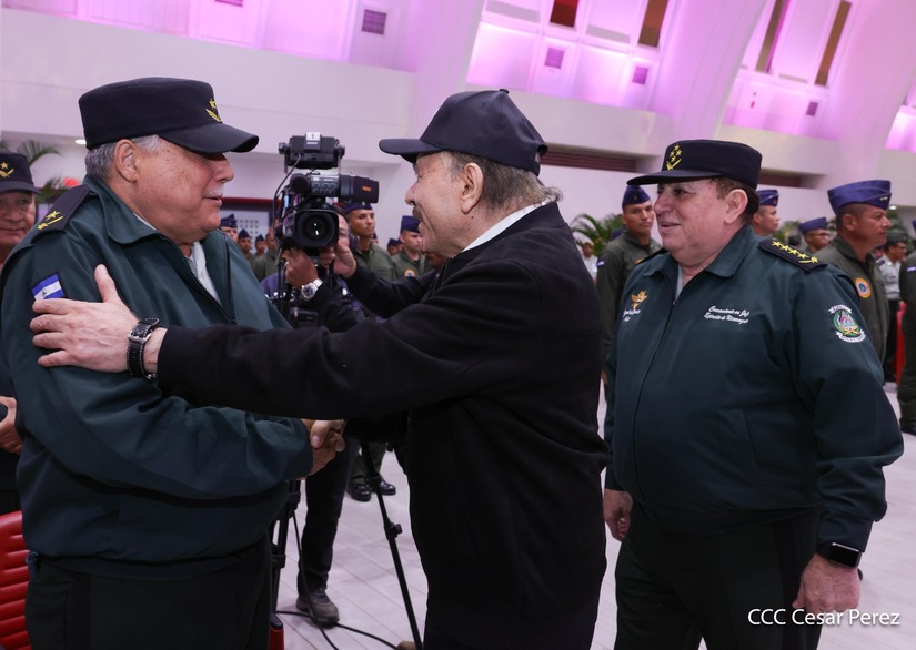 En el Centro de Convenciones “Olof Palme”, se realiza el acto de conmemoración del 45 Aniversario de Fundación de la Fuerza Aérea del Ejército de Nicaragua, presidido por el Presidente de la República y Jefe Supremo del Ejército de Nicaragua, Comandante Daniel Ortega Saavedra; la Vicepresidenta de la República, Compañera Rosario Murillo Zambrana; el Comandante en Jefe del Ejército de Nicaragua, General de Ejército Julio César Avilés Castillo.