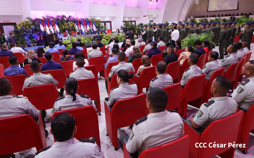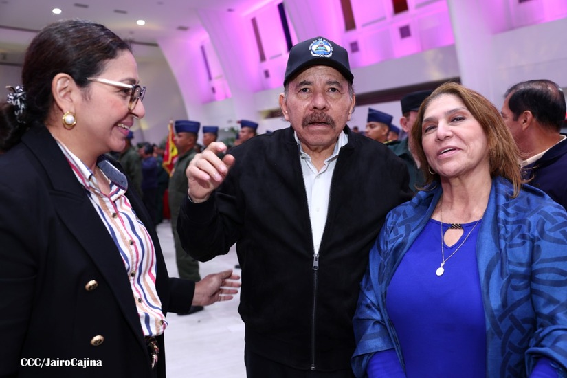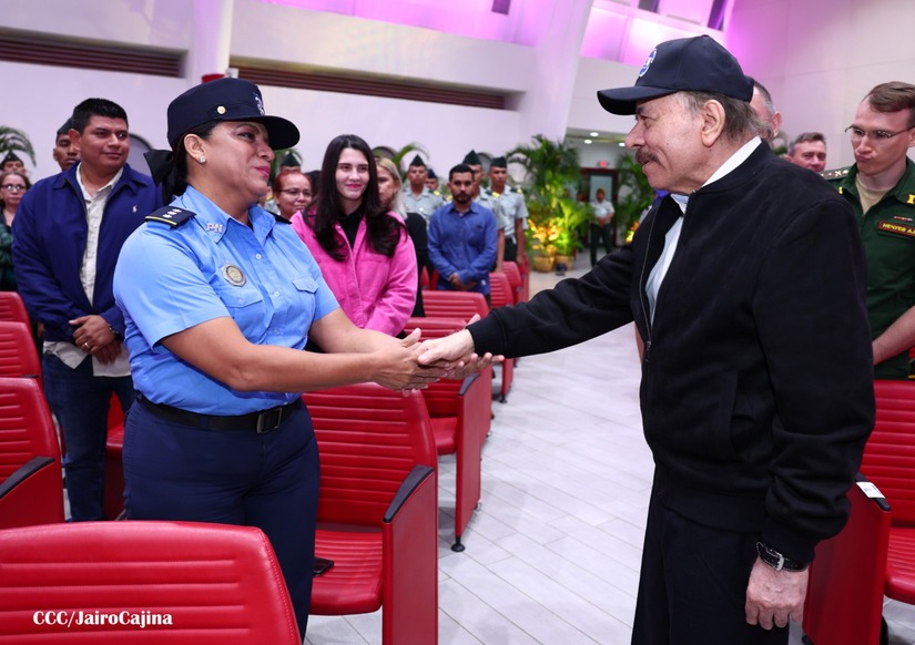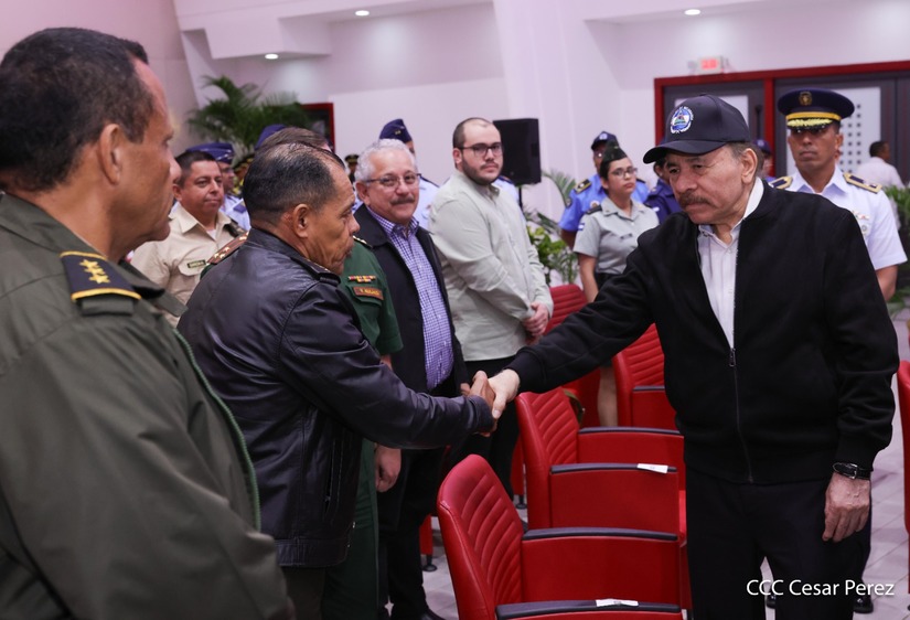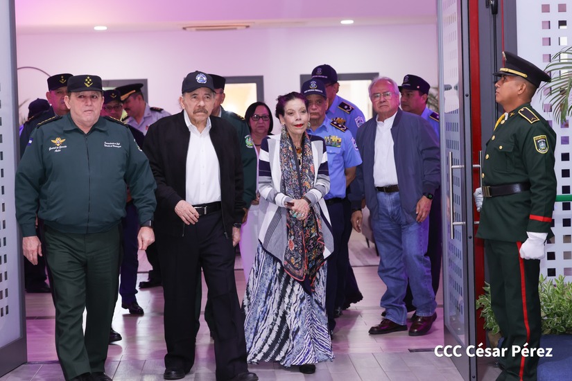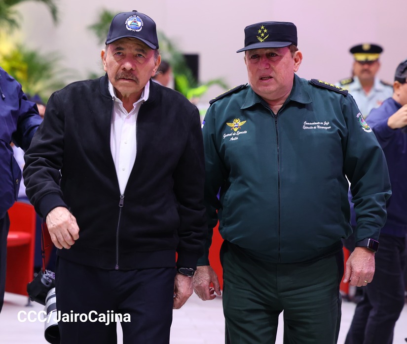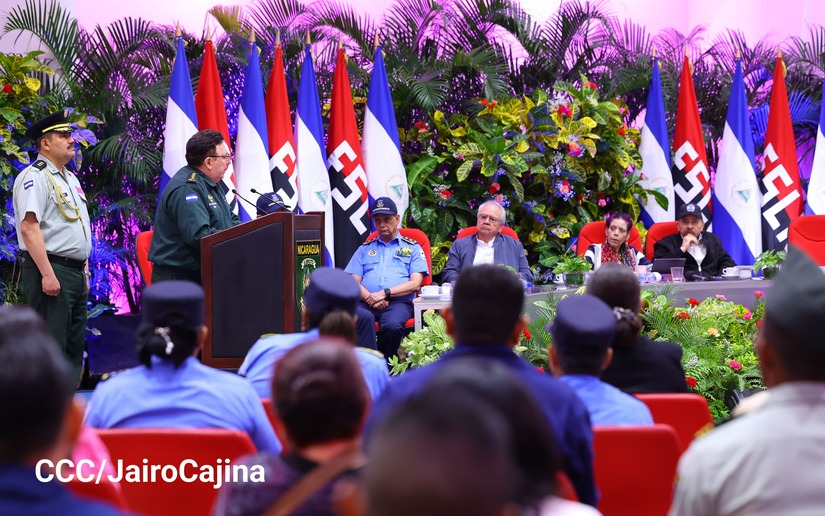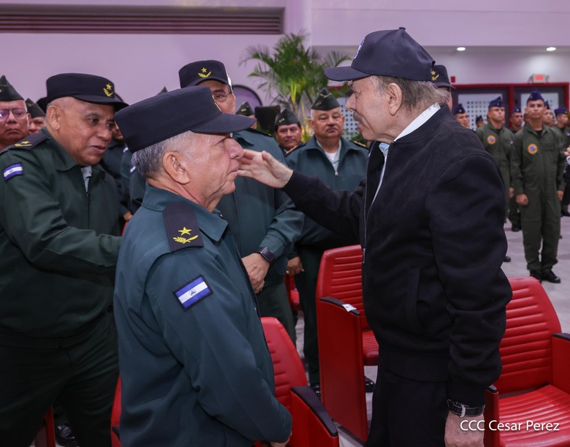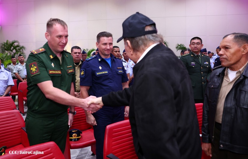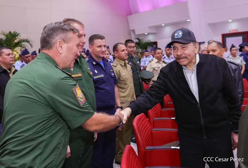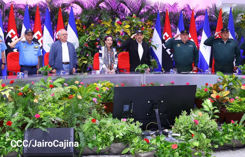 En el Centro de Convenciones “Olof Palme”, se realiza el acto de conmemoración del 45 Aniversario de Fundación de la Fuerza Aérea del Ejército de Nicaragua, presidido por el Presidente de la República y Jefe Supremo del Ejército de Nicaragua, Comandante Daniel Ortega Saavedra; la Vicepresidenta de la República, Compañera Rosario Murillo Zambrana; el Comandante en Jefe del Ejército de Nicaragua, General de Ejército Julio César Avilés Castillo.