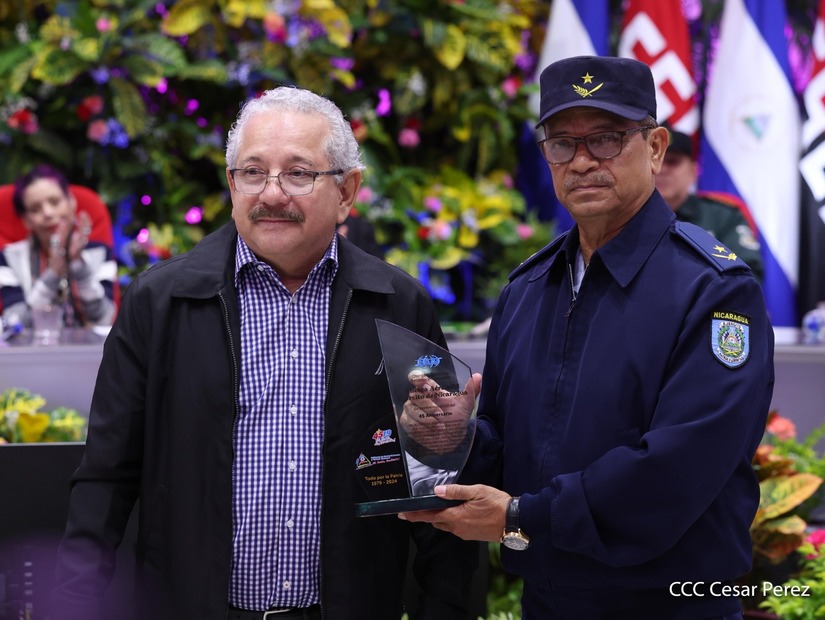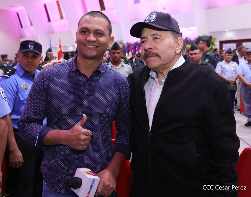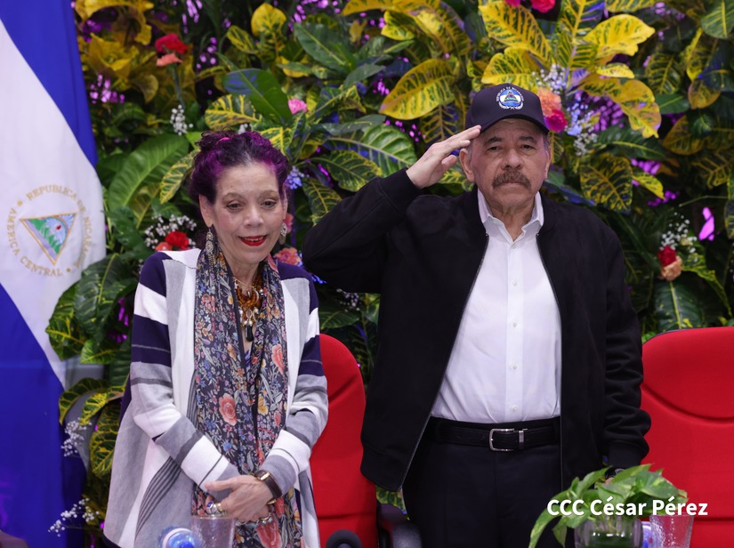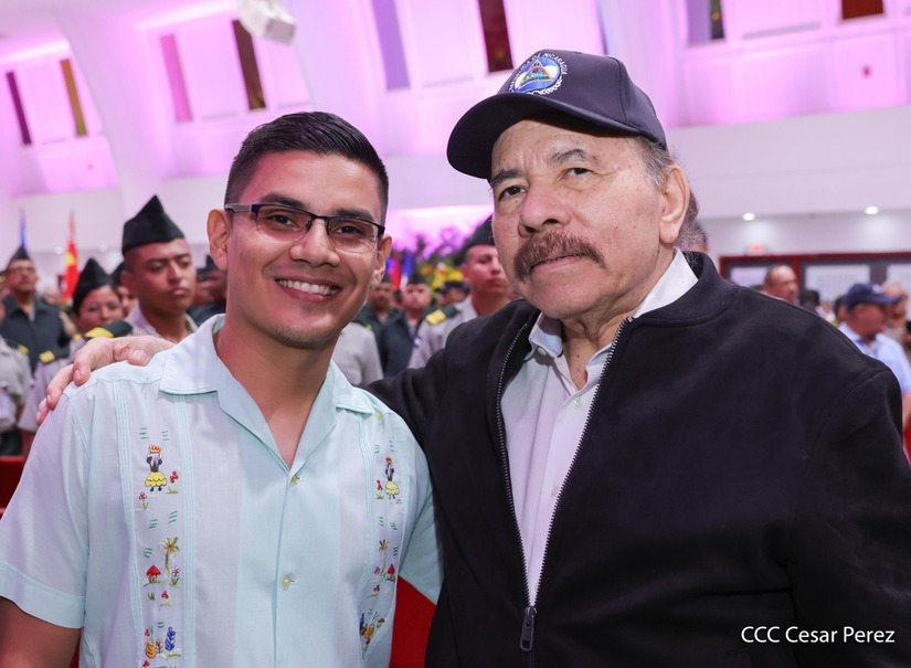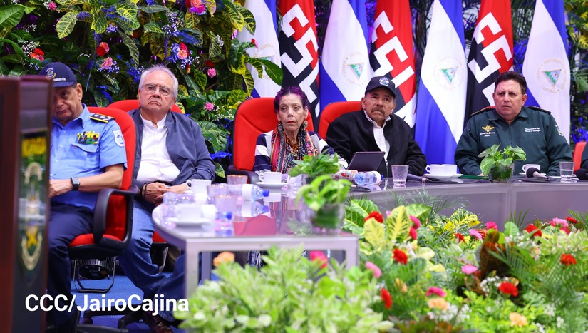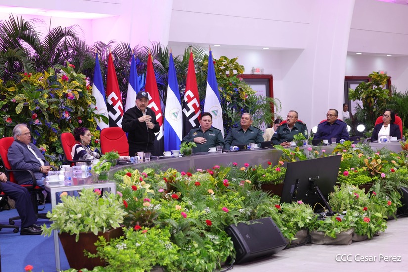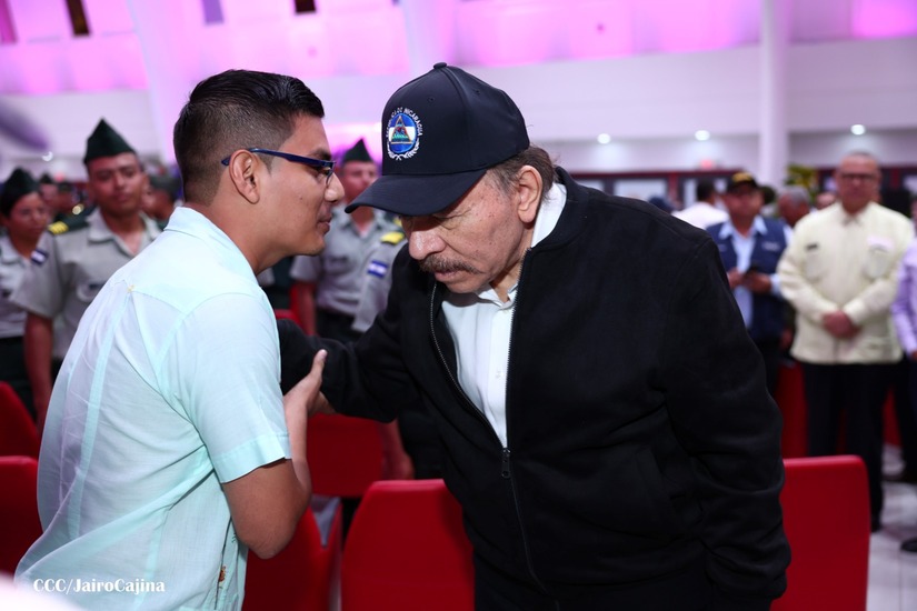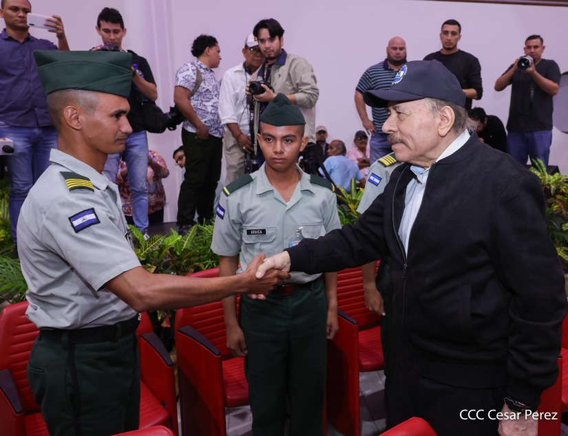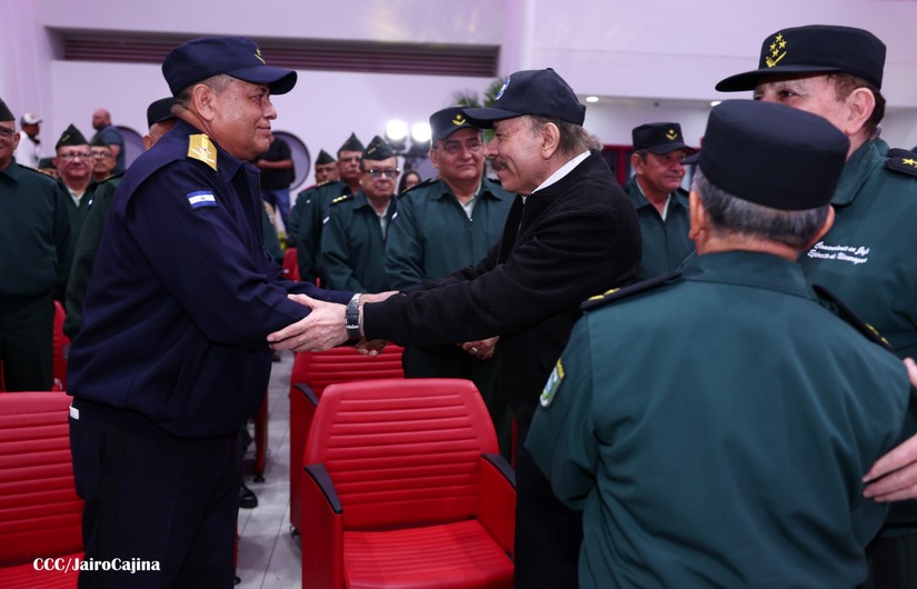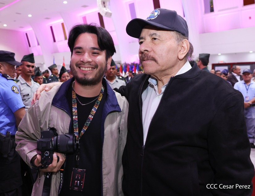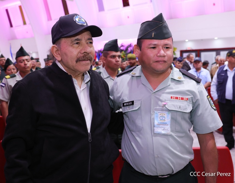 En el Centro de Convenciones “Olof Palme”, se realiza el acto de conmemoración del 45 Aniversario de Fundación de la Fuerza Aérea del Ejército de Nicaragua, presidido por el Presidente de la República y Jefe Supremo del Ejército de Nicaragua, Comandante Daniel Ortega Saavedra; la Vicepresidenta de la República, Compañera Rosario Murillo Zambrana; el Comandante en Jefe del Ejército de Nicaragua, General de Ejército Julio César Avilés Castillo.