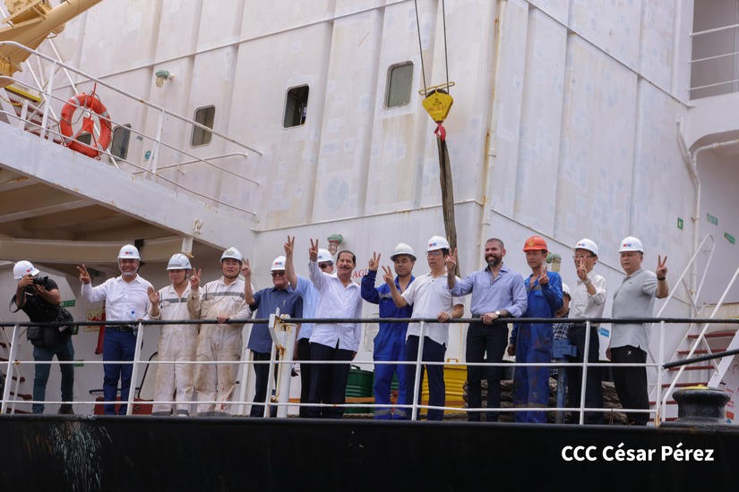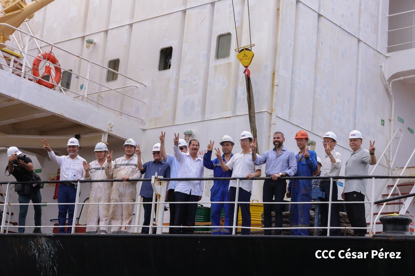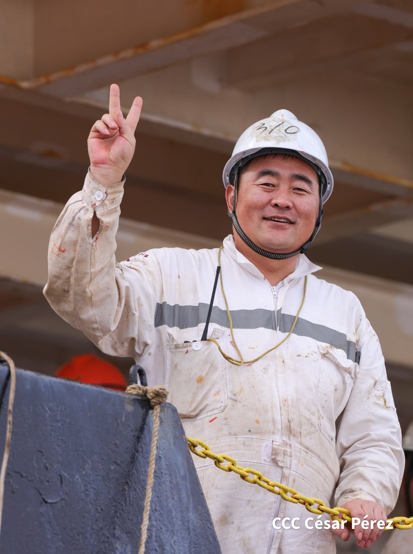 El buque, que llegó del Puerto de Tianjin, China, inaugura esta ruta marítima y comercial, que refuerza la asociación estratégica que impulsa el Buen Gobierno presidido por el Presidente Comandante Daniel Ortega y la Compañera Vicepresidenta Rosario Murillo.