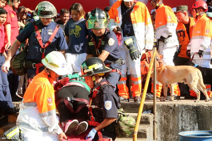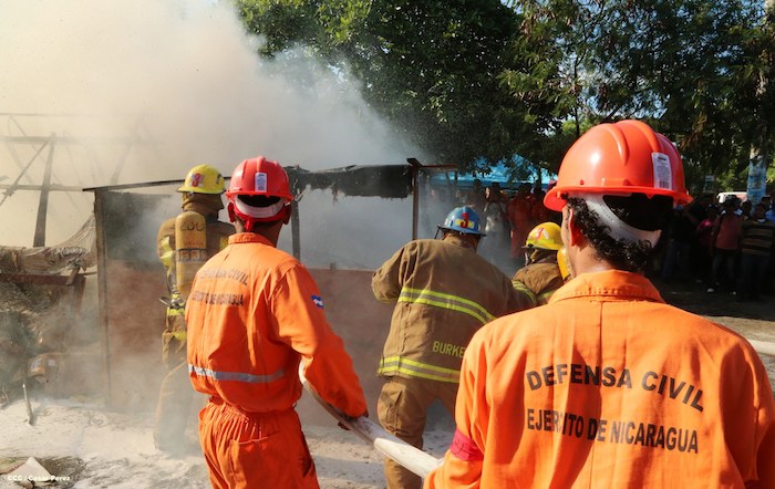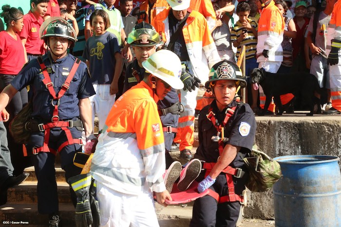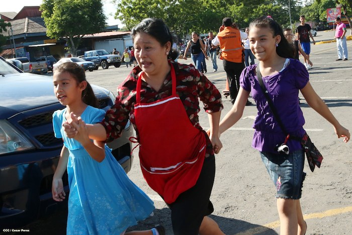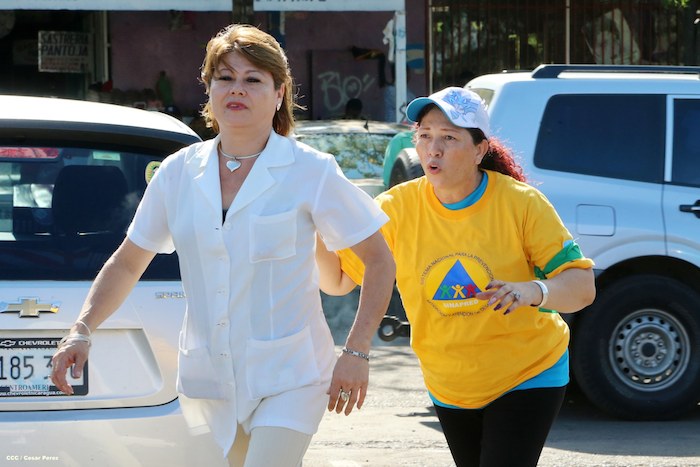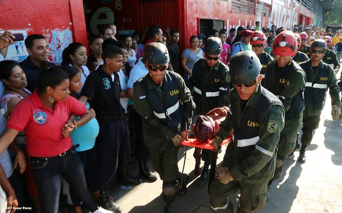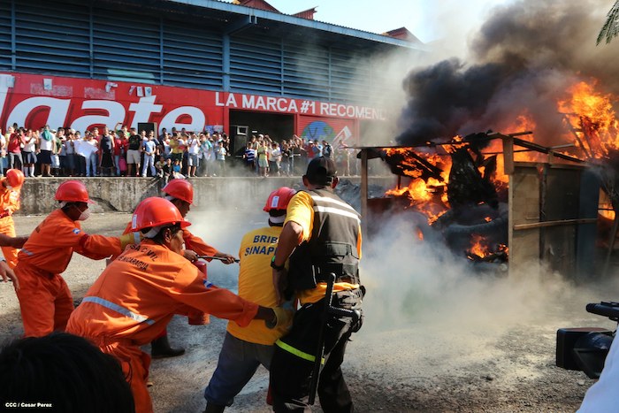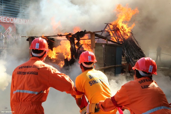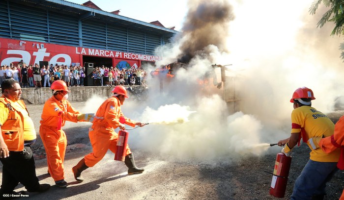 Comerciantes del mercado Roberto Huembes junto a autoridades pusieron en práctica un simulacro de terremoto e incendio en este centro de comercio popular.