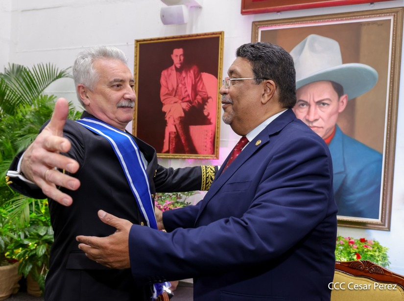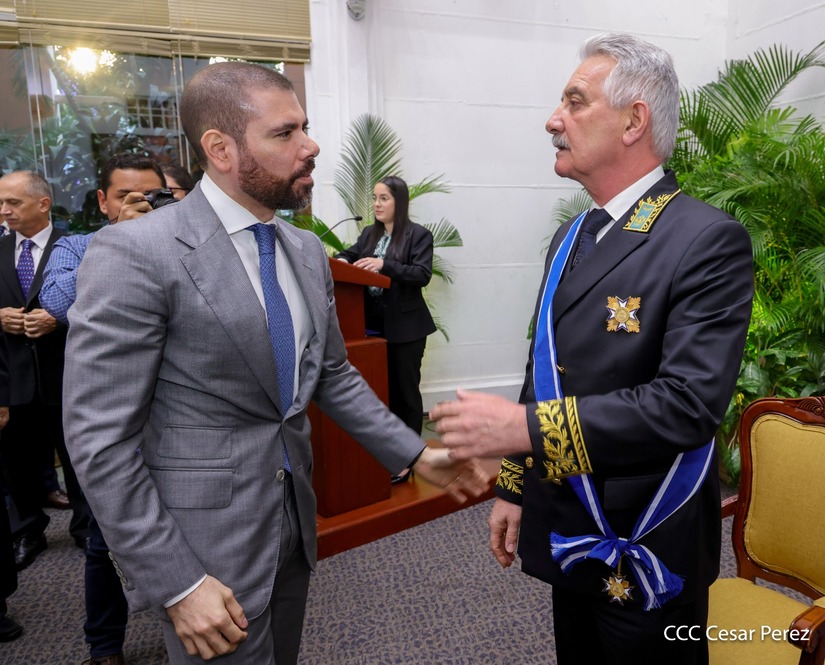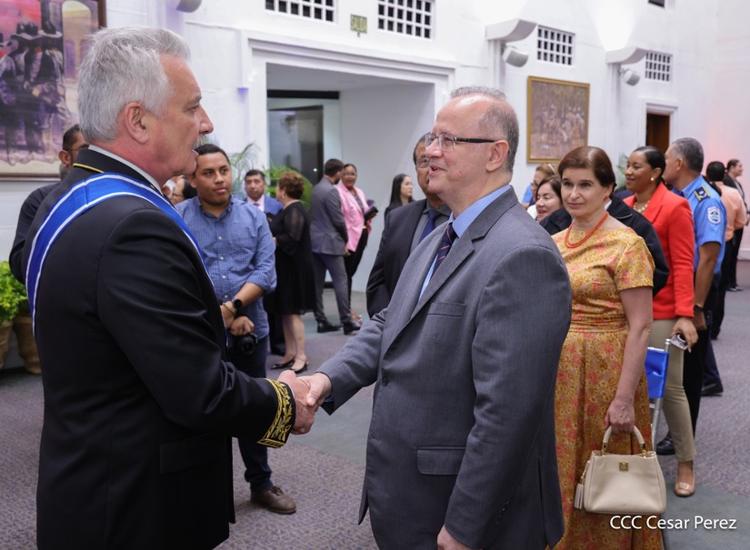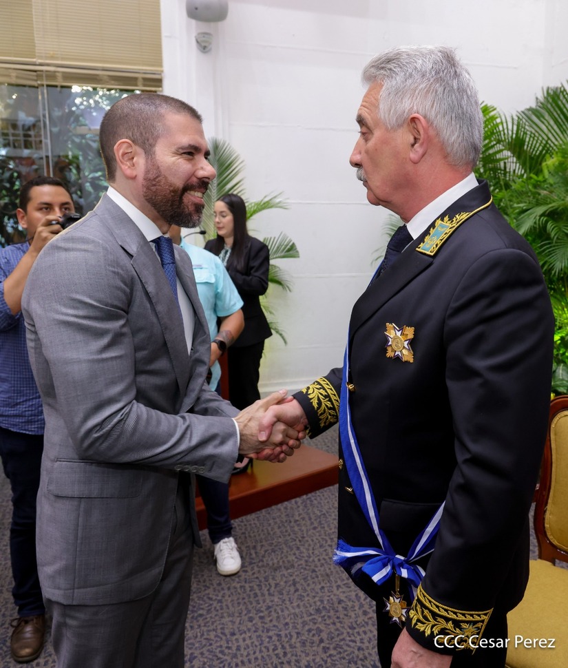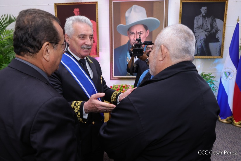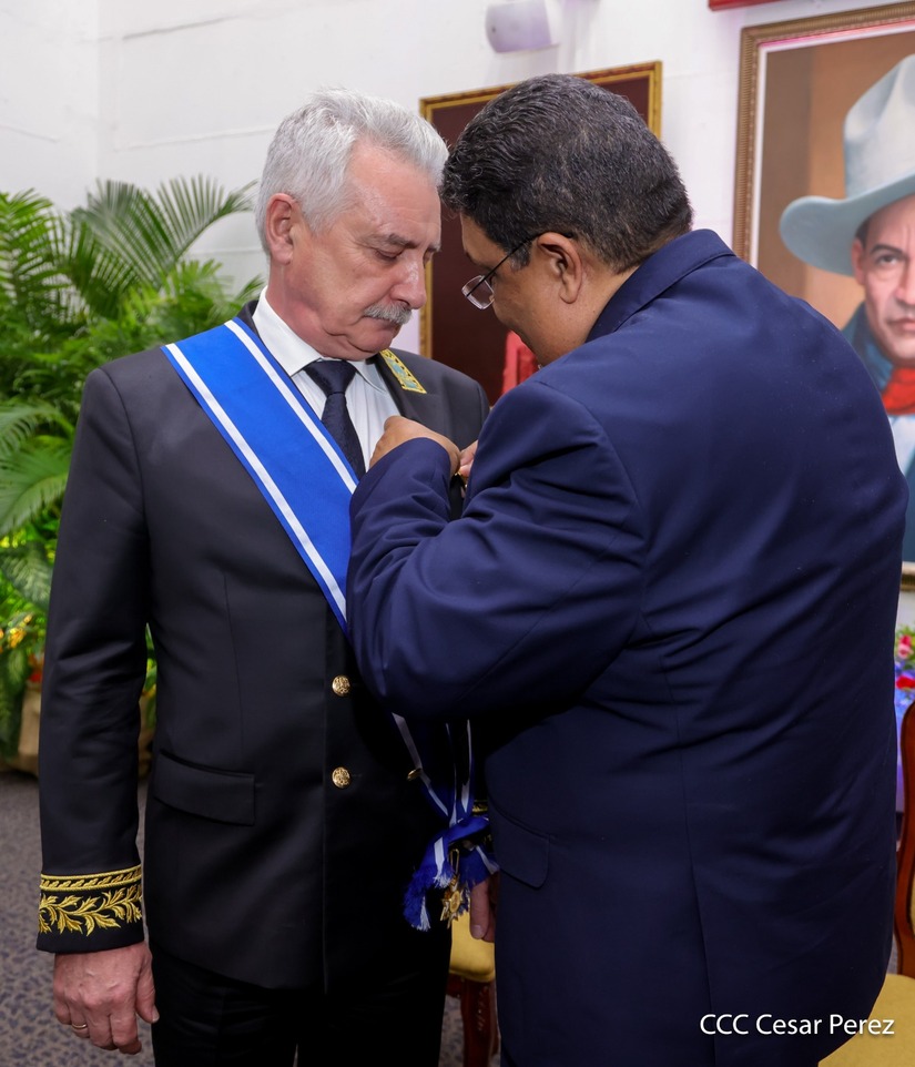 En nombre del pueblo de Nicaragua y del Gobierno de Reconciliación y Unidad Nacional, le fue otorgada la Orden José de Marcoleta en el Grado de Gran Cruz, al Excelentísimo Embajador Extraordinario y Plenipotenciario de la Federación de Rusia en Nicaragua, compañero Alexander Khokhólikov.