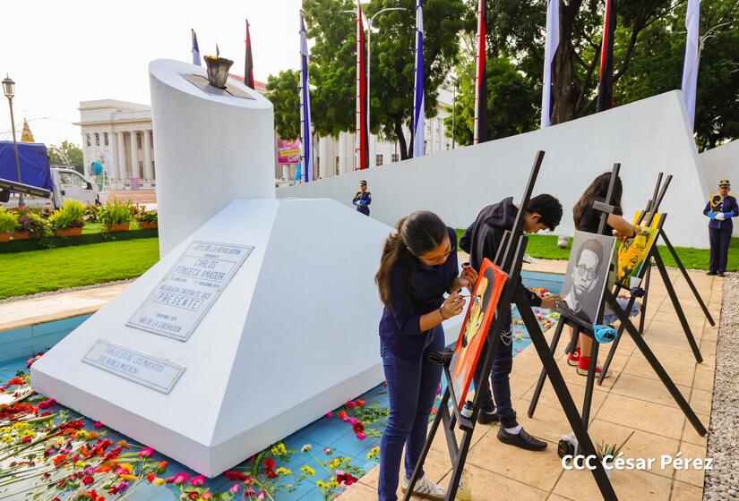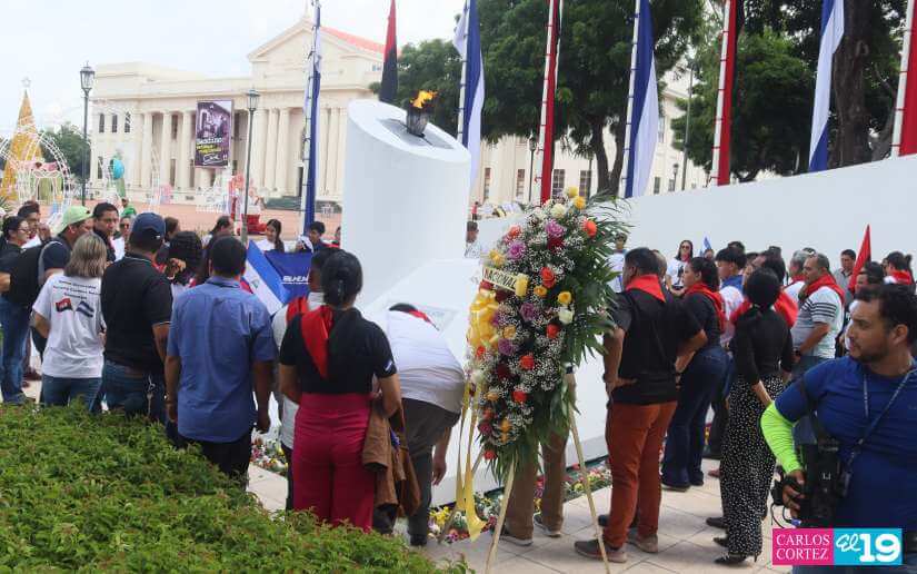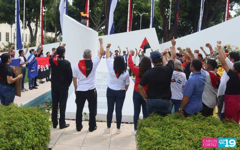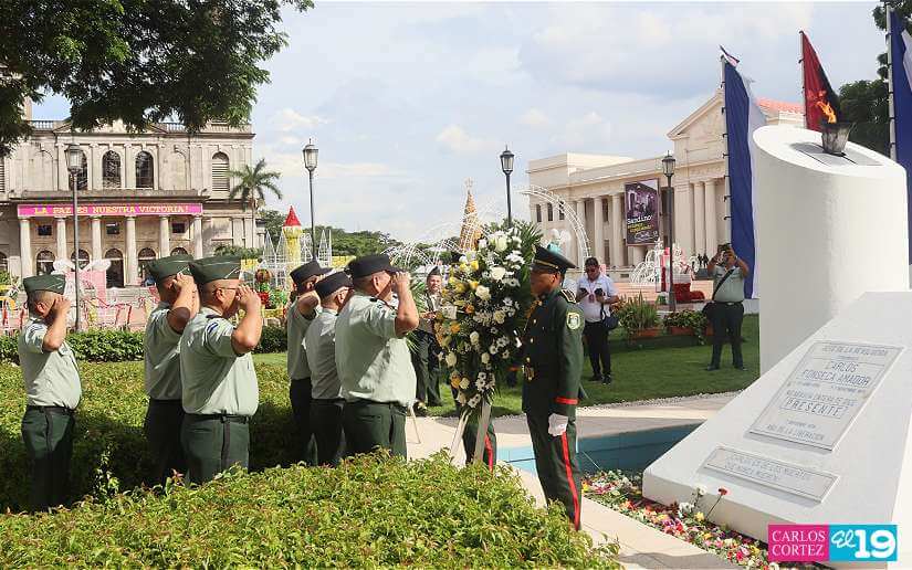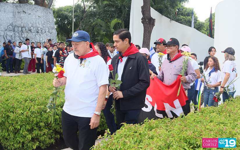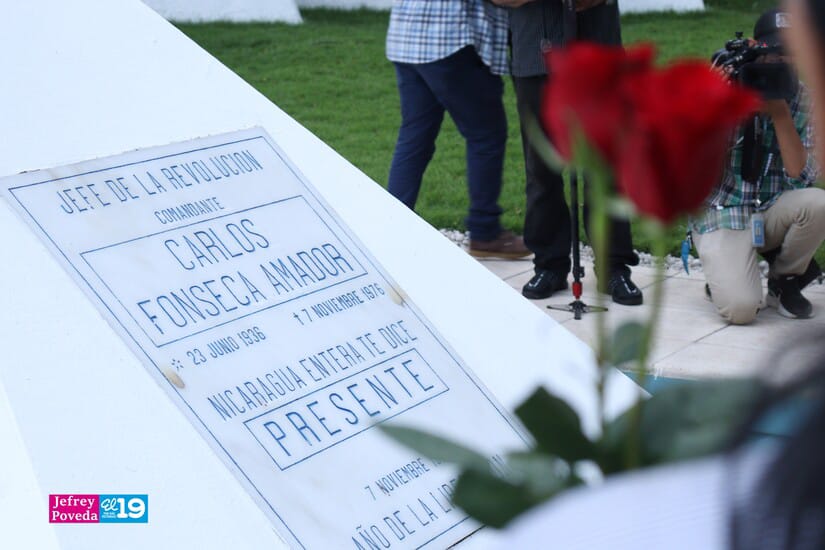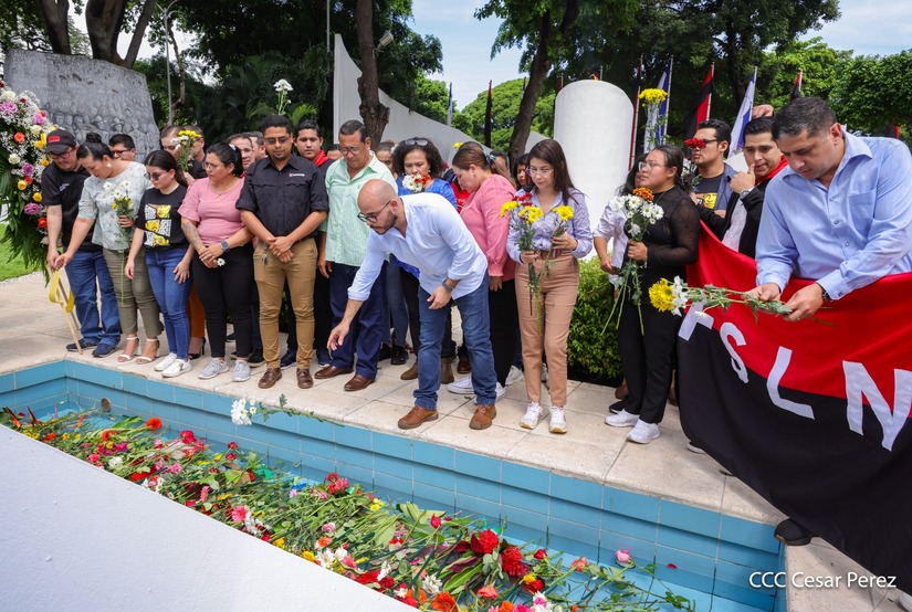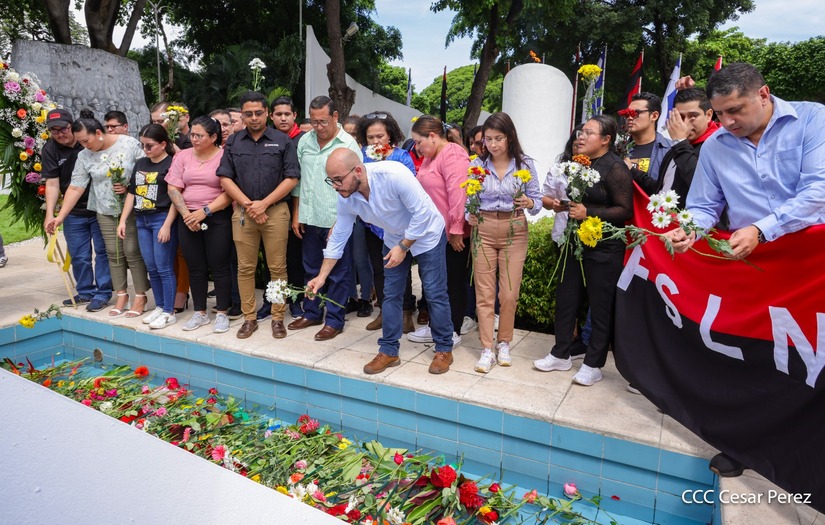 En un acto de conmemoración, se realizó una entrega floral en honor a Carlos Fonseca Amador, fundador y padre del Frente Sandinista de Liberación Nacional, al cumplirse 48 años de su paso a la inmortalidad.