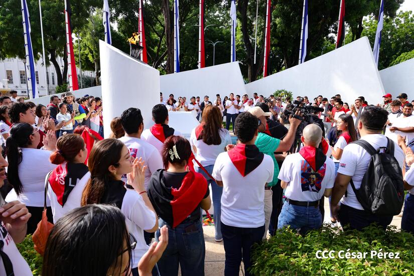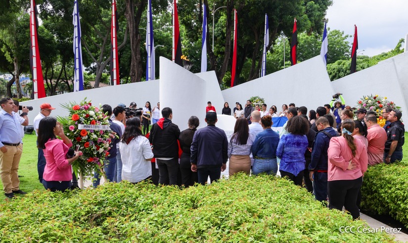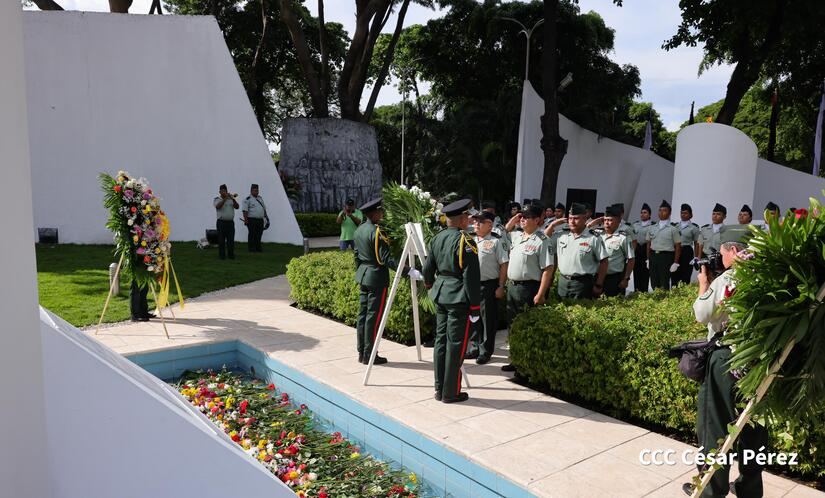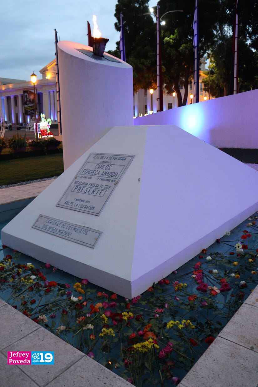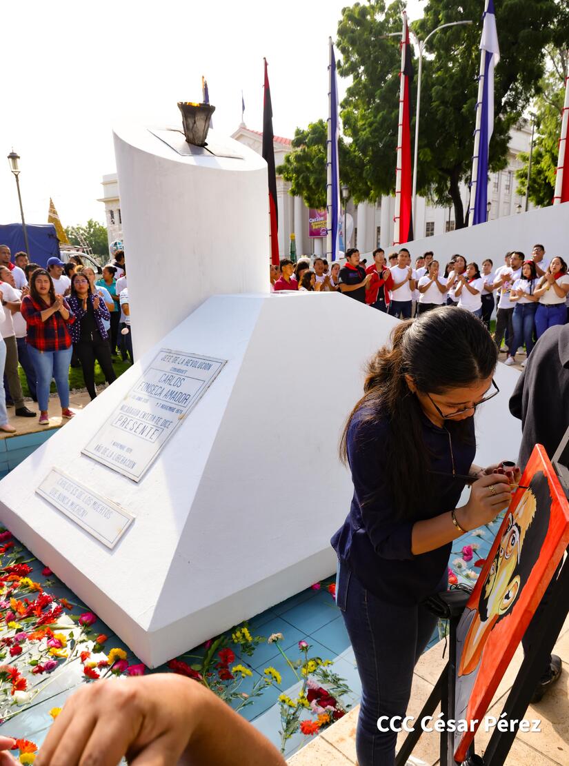 En un acto de conmemoración, se realizó una entrega floral en honor a Carlos Fonseca Amador, fundador y padre del Frente Sandinista de Liberación Nacional, al cumplirse 48 años de su paso a la inmortalidad.