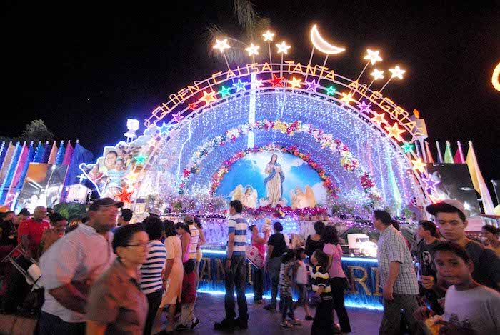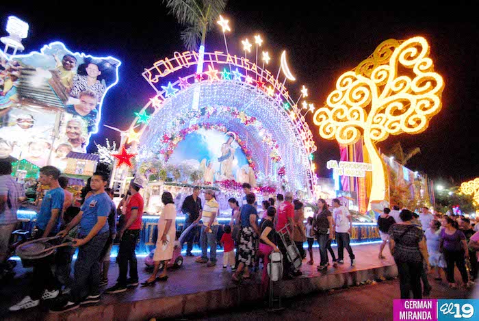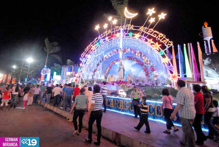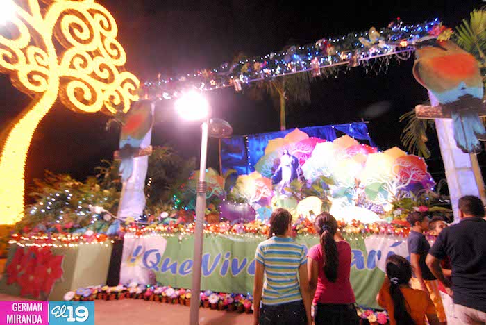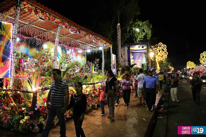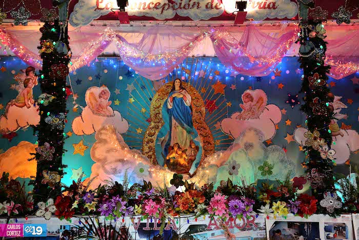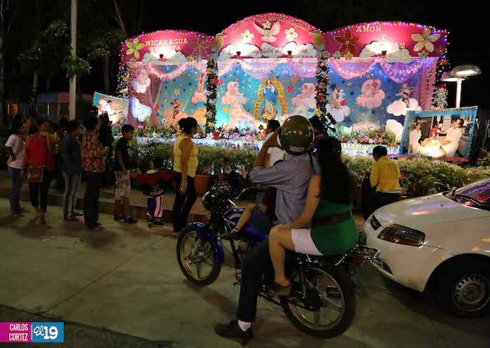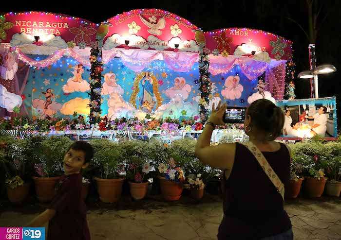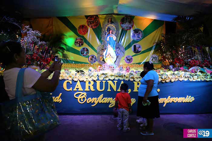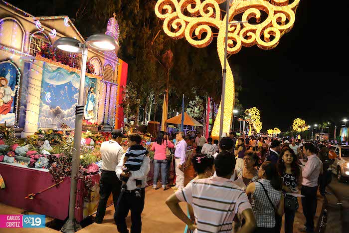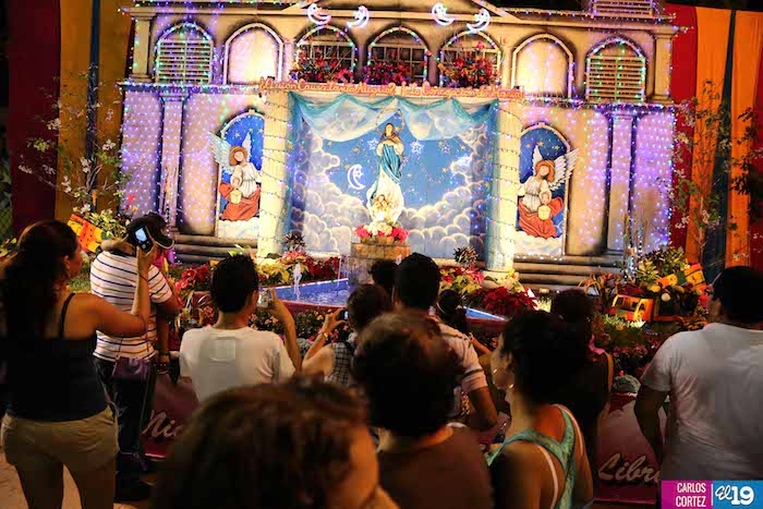 Las familias de Managua visitan los Altares a la Virgen María en la Avenida de Bolívar a Chávez.
