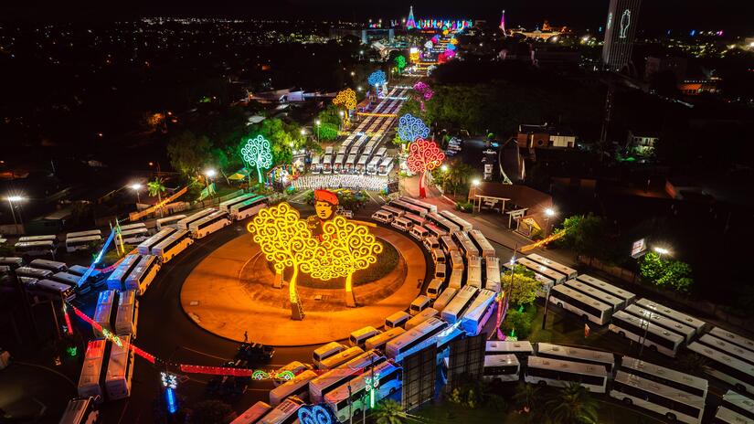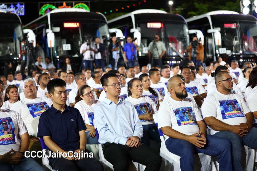 Este 13 de diciembre, el Presidente Comandante Daniel Ortega junto a la Vicepresidenta Compañera Rosario Murillo, entregan 400 nuevos buses procedentes de la República Popular China que servirán a las familias nicaragüenses en las rutas intermunicipales e interlocales.