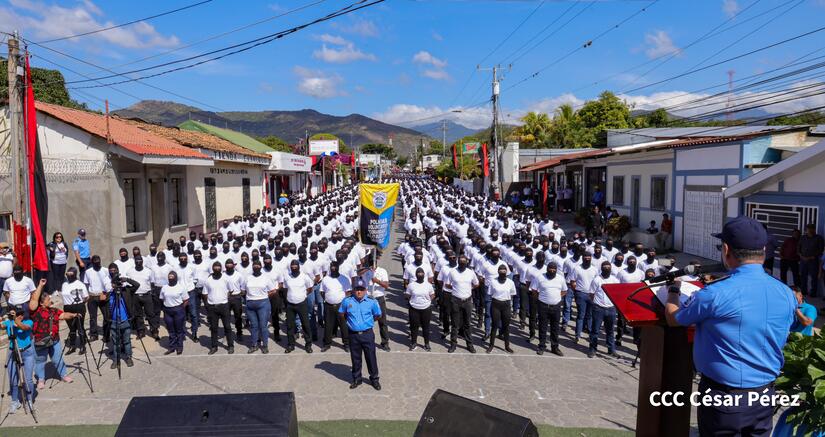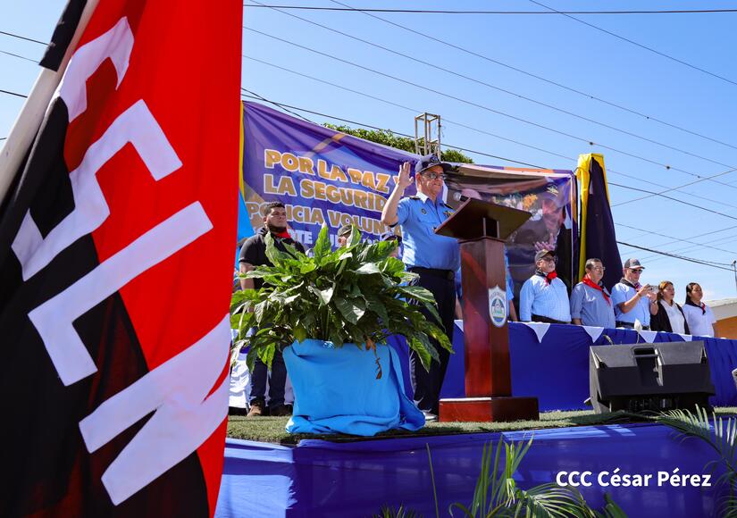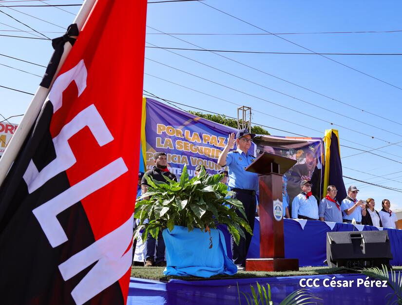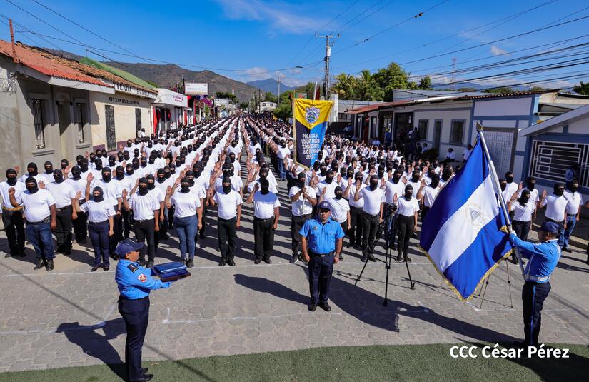 La jefatura de la Policía Nacional presentó y juramentó a la Policía Voluntaria de Ocotal, departamento de Nueva Segovia "Comandante Julio Buitrago Urroz" quienes tendrán el compromiso de apoyar en la defensa de la paz, la soberanía y la tranquilidad de las familias en Nicaragua.