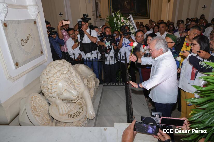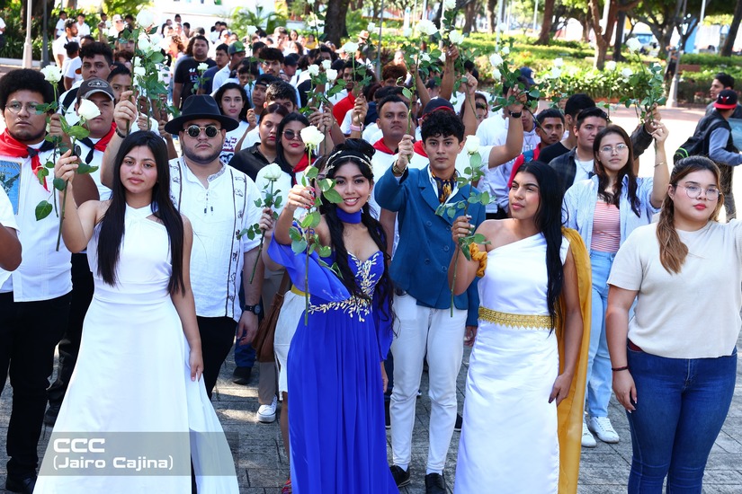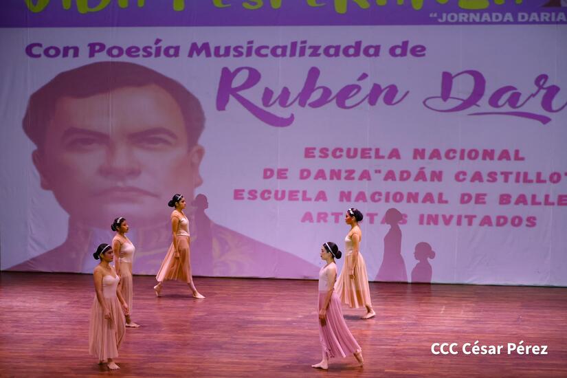 Con actividades llenas de poesía, presentación de mosaicos gigantes, bandas rítmicas, entrega de ofrendas, entre otras expresiones artísticas, fue realizado el homenaje para rendir honor a los 109 años del tránsito a la inmortalidad del Príncipe de las Letras Castellanas, Rubén Darío.