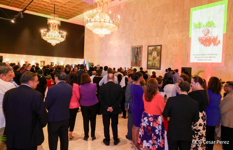 En ocasión de conmemorarse el 46 Aniversario de la Revolución Islámica Iraní, en Nicaragua se llevó a cabo una recepción en el Salón de los Cristales del Teatro Nacional Rubén Darío, donde fueron evidentes los lazos de hermandad, solidaridad y de ideales en común.
