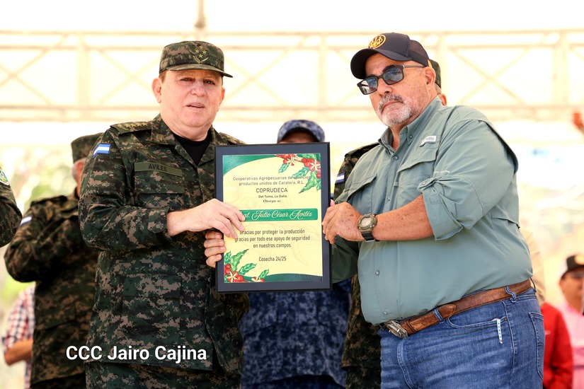 El Ejército de Nicaragua encabezó el Acto Nacional de Cierre del Plan de Protección y Seguridad de la Cosecha Cafetalera Ciclo Productivo 2024–2025, desde las instalaciones del Batallón de Infantería Permanente "General Patricio Centeno" en Apanás, Jinotega.
