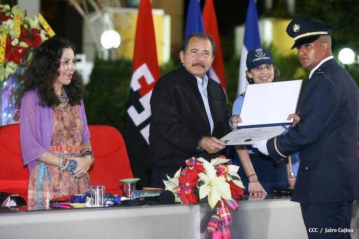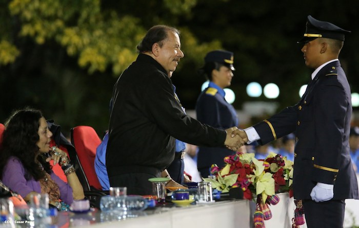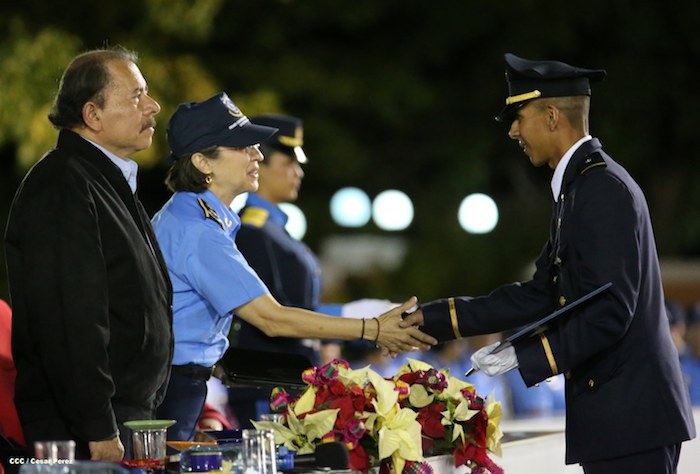 El Presidente de la República, comandante Daniel Ortega Saavedra, y la Coordinadora del Consejo de Comunicación y Ciudadanía, compañera Rosario Murillo presidieron este viernes la XVI Graduación de Cadetes de la Policía Nacional.