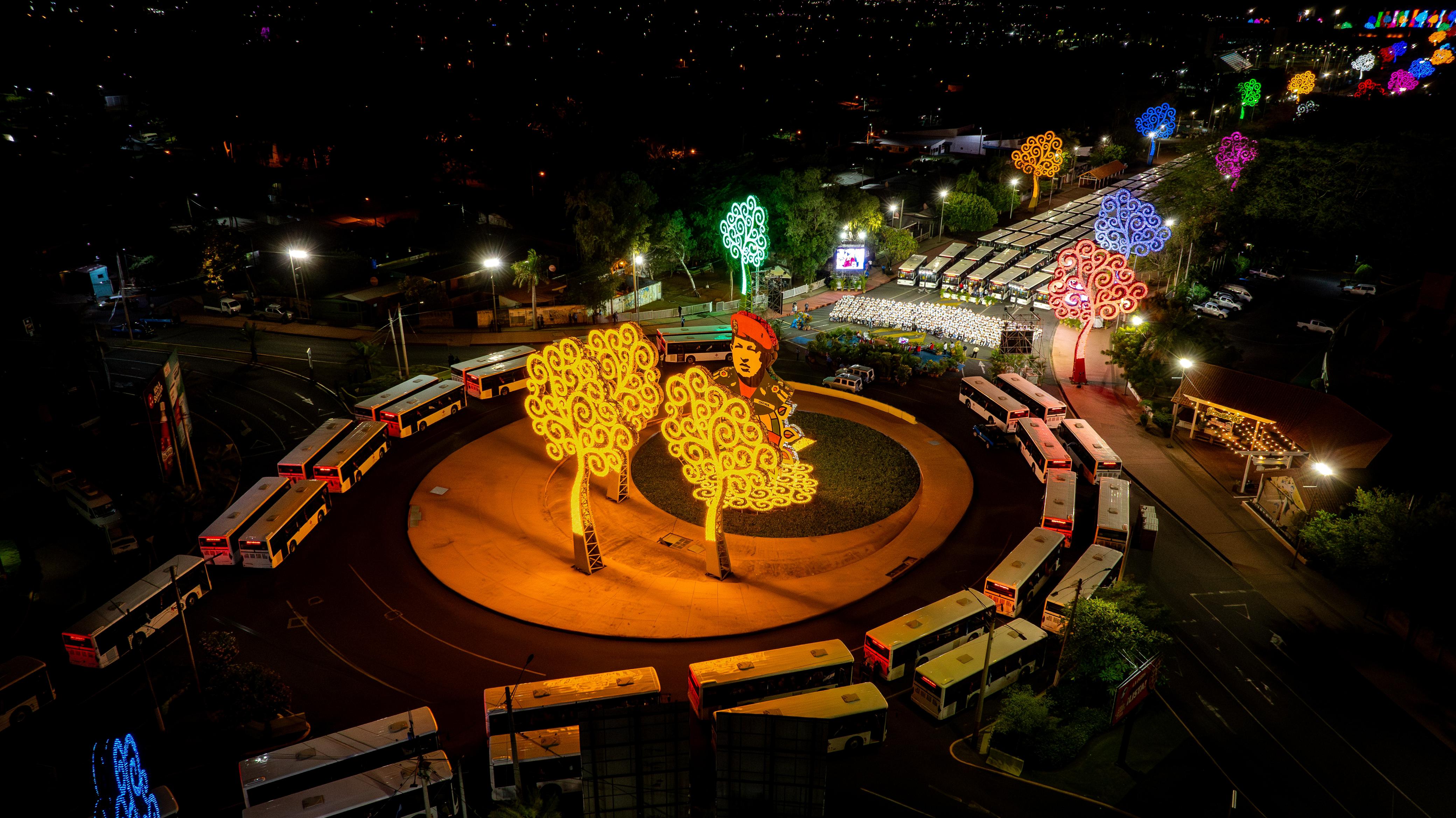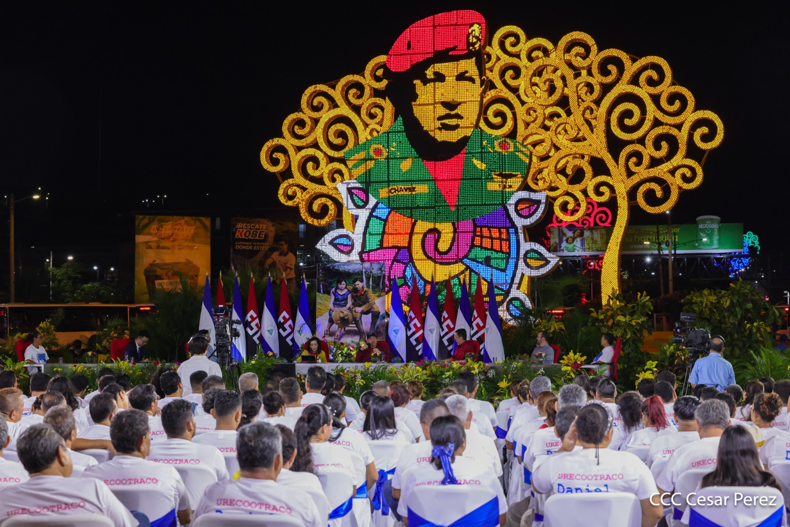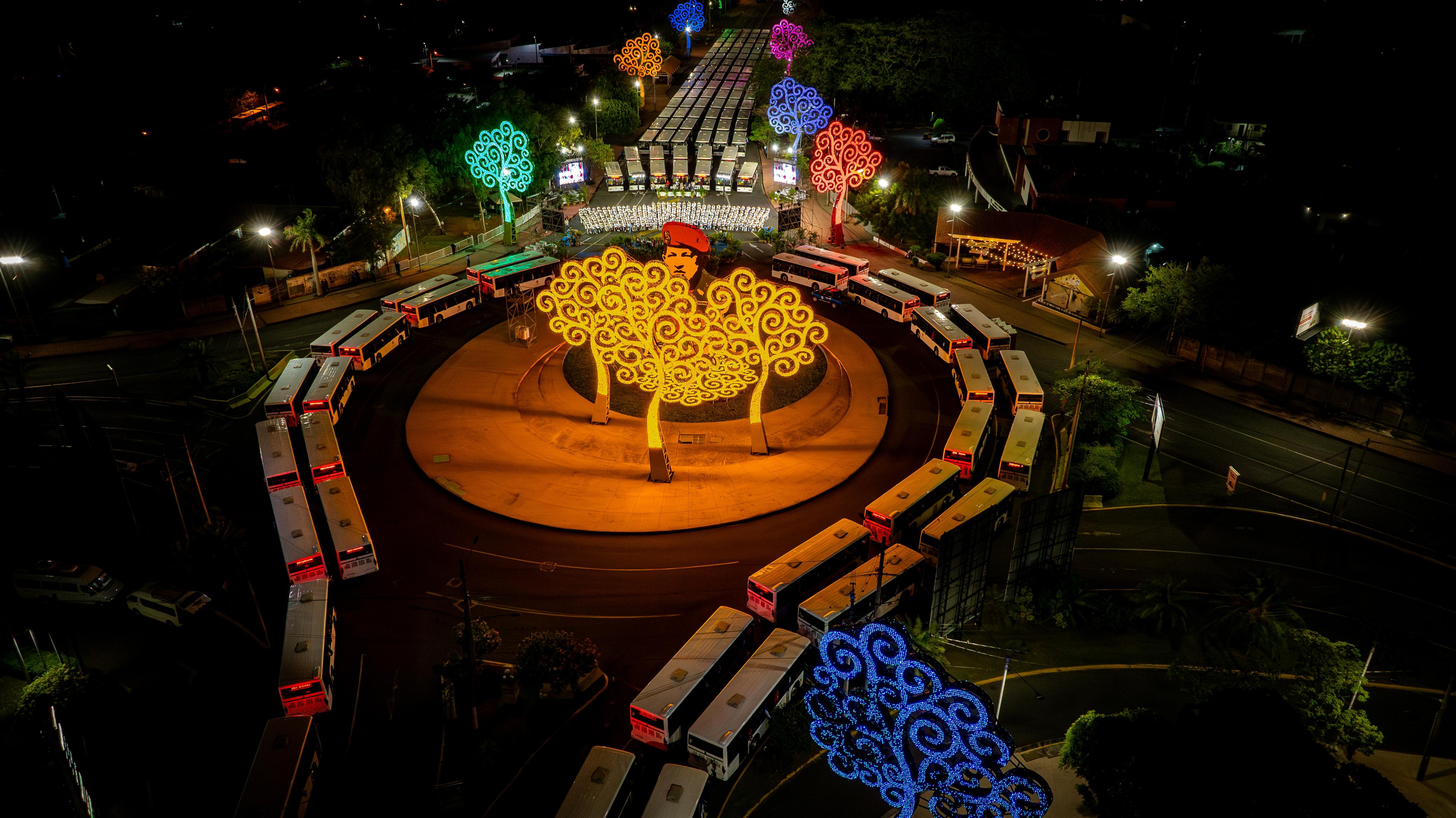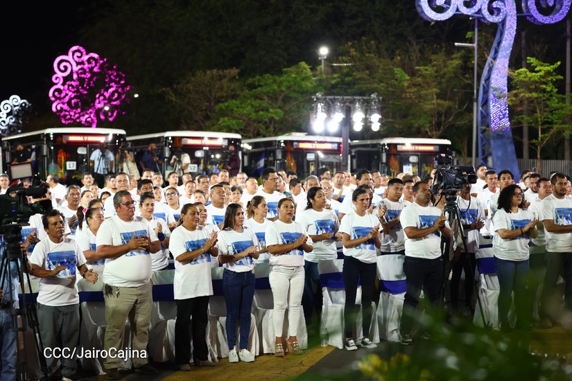 El acto de entrega es encabezado por el Copresidente Comandante Daniel Ortega Saavedra y la Copresidenta Compañera Rosario Murillo Zambrana desde la avenida de Bolívar a Chávez, en Managua.