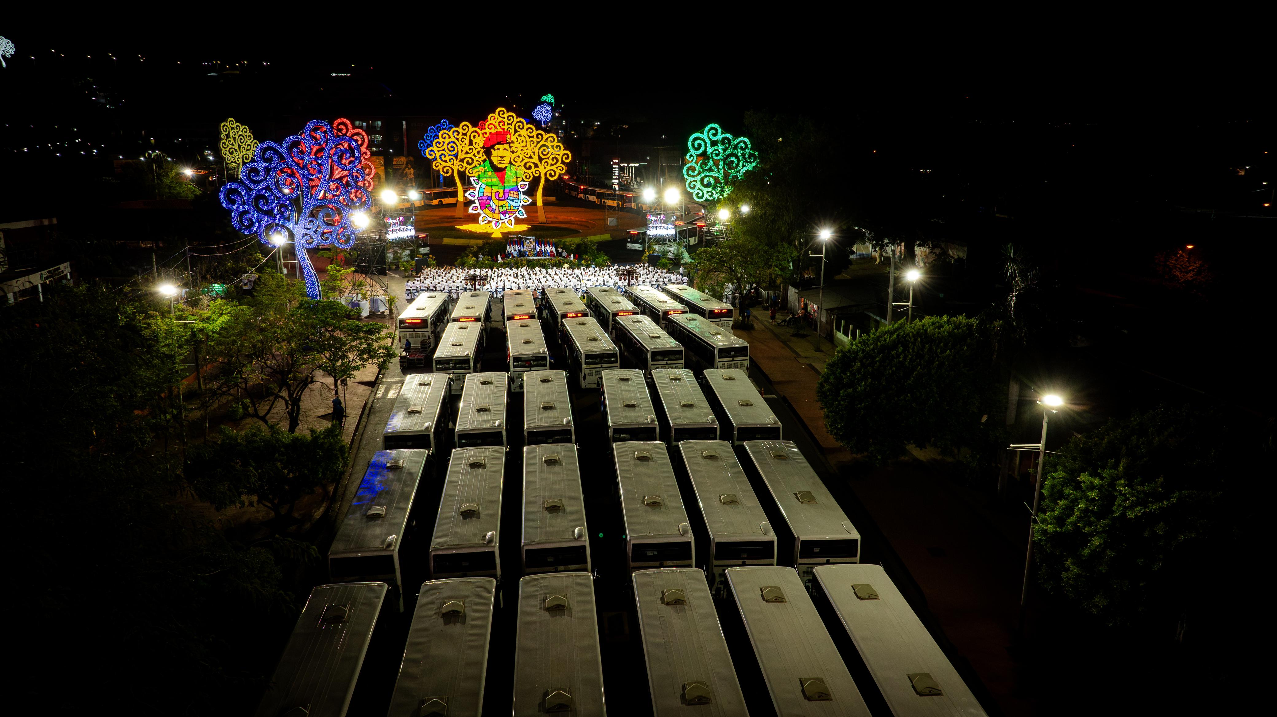 En honor al Comandante Germán Pomares Ordóñez, “El Danto”, el Gobierno de Reconciliación y Unidad Nacional realiza la entrega de 100 buses donados por la Agencia China de Cooperación Internacional para el Desarrollo (CIDCA) a transportistas, con lo cual se avanza en la modernización, crecimiento y desarrollo del transporte público en Nicaragua.