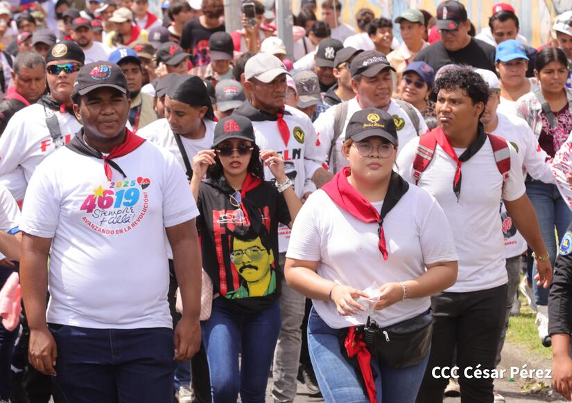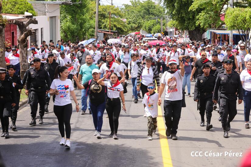 En homenaje al Comandante Carlos Fonseca, Padre de la Revolución, miles de nicaragüenses caminaron una vez más rememorando el repliegue hacia la Hacienda El Vapor, una operación táctica del FSLN hace 46 años que se sumó a la lucha para alcanzar la victoria del 19 de julio de 1979 contra la dictadura somocista.