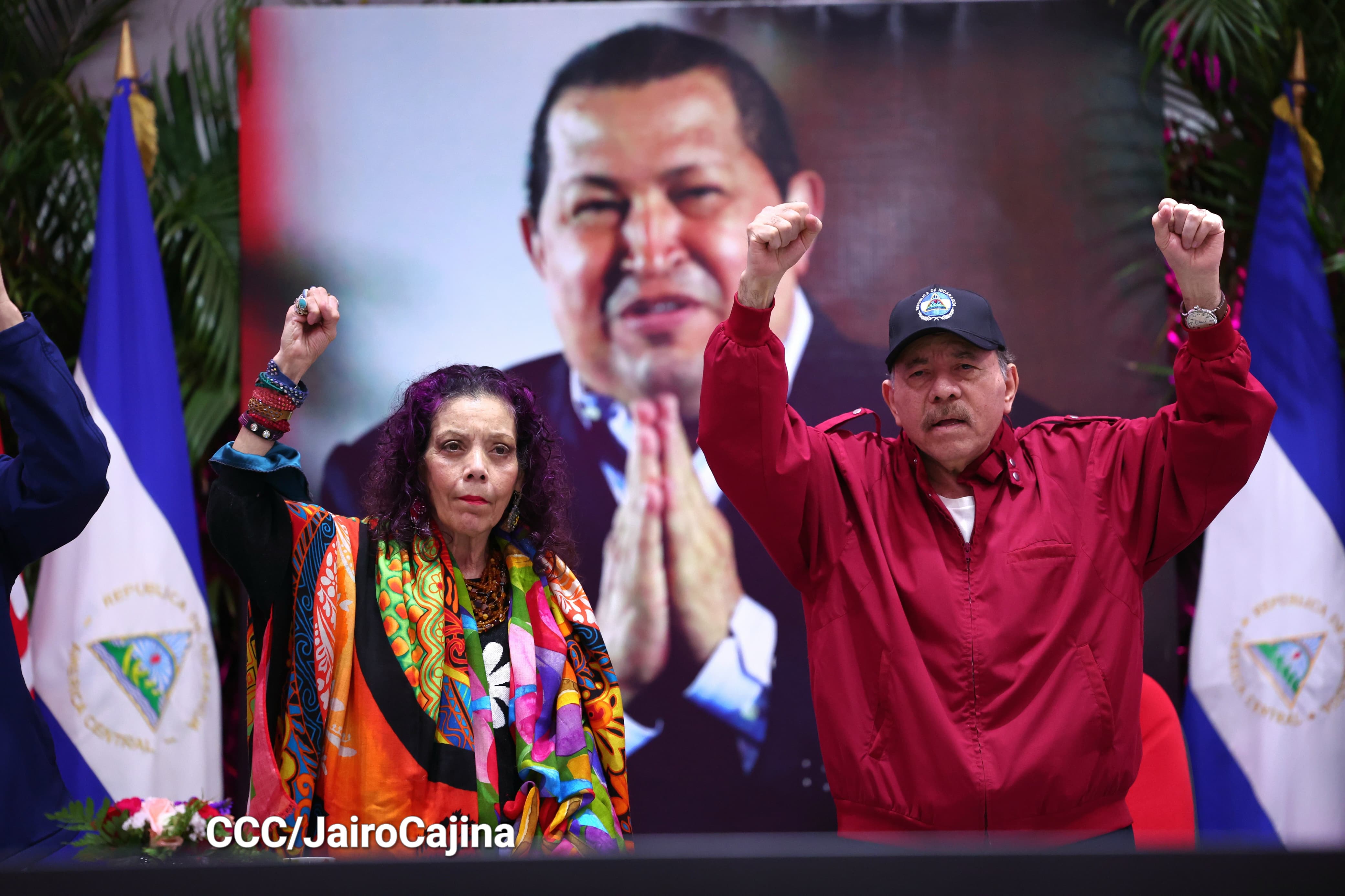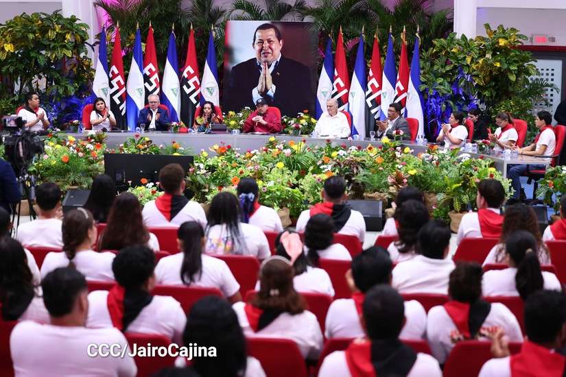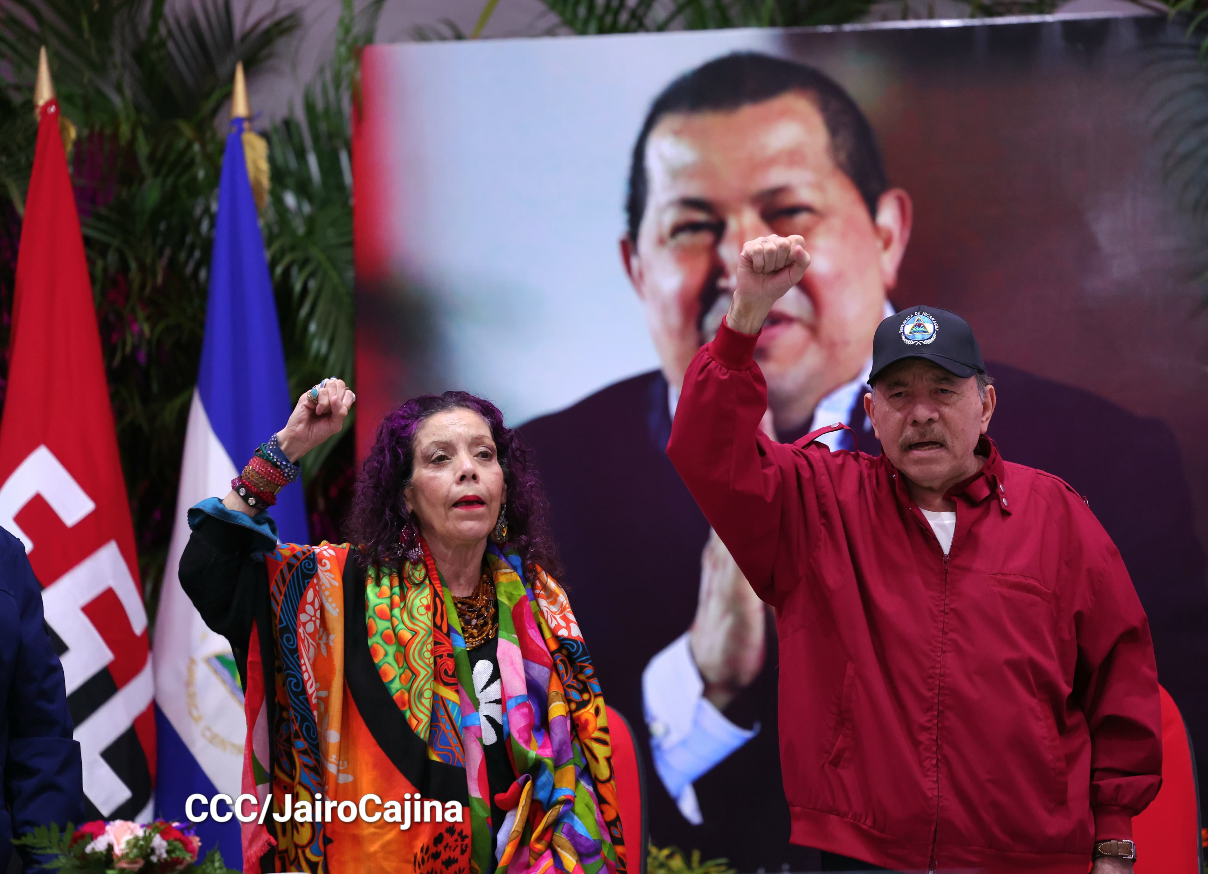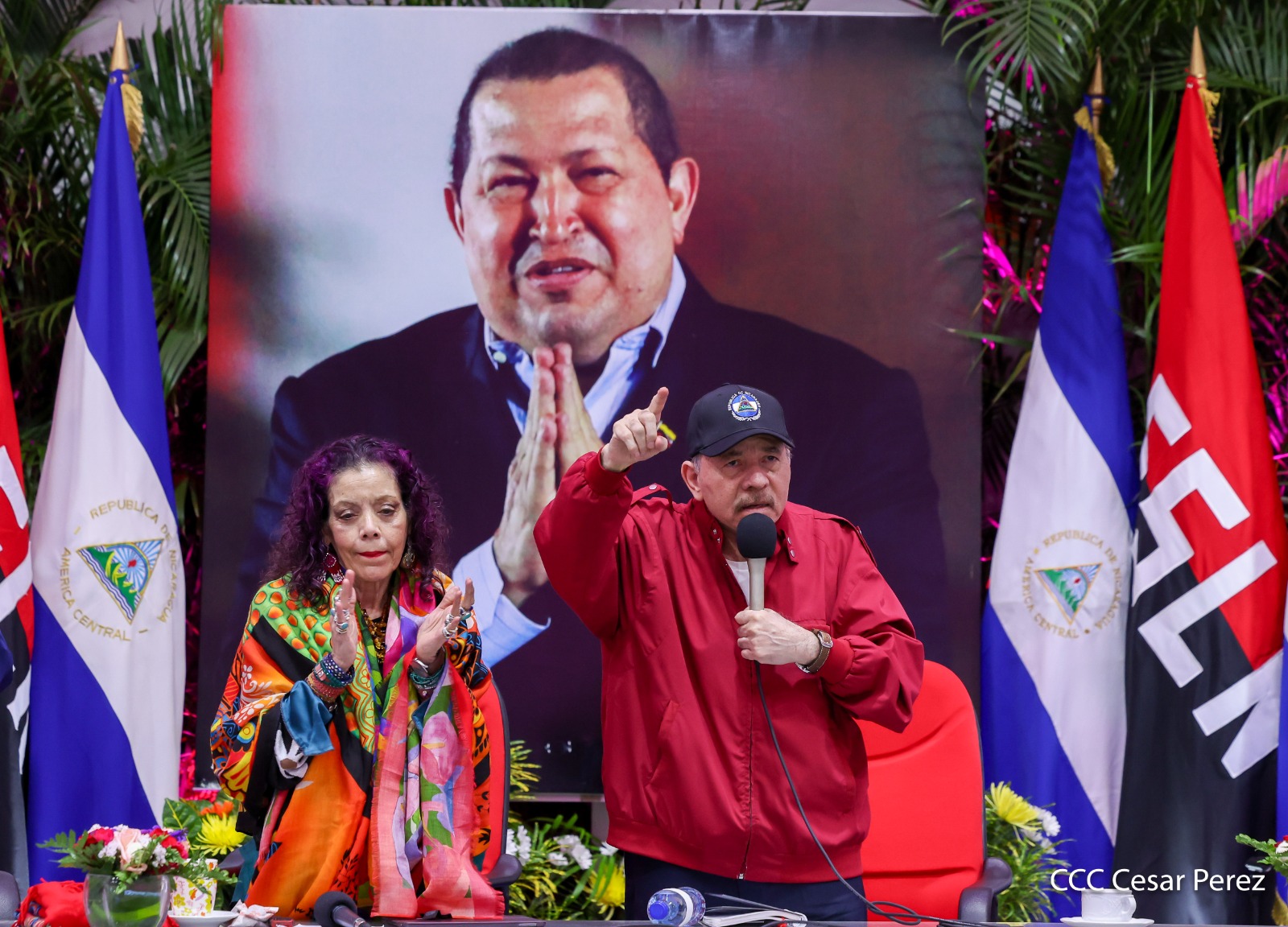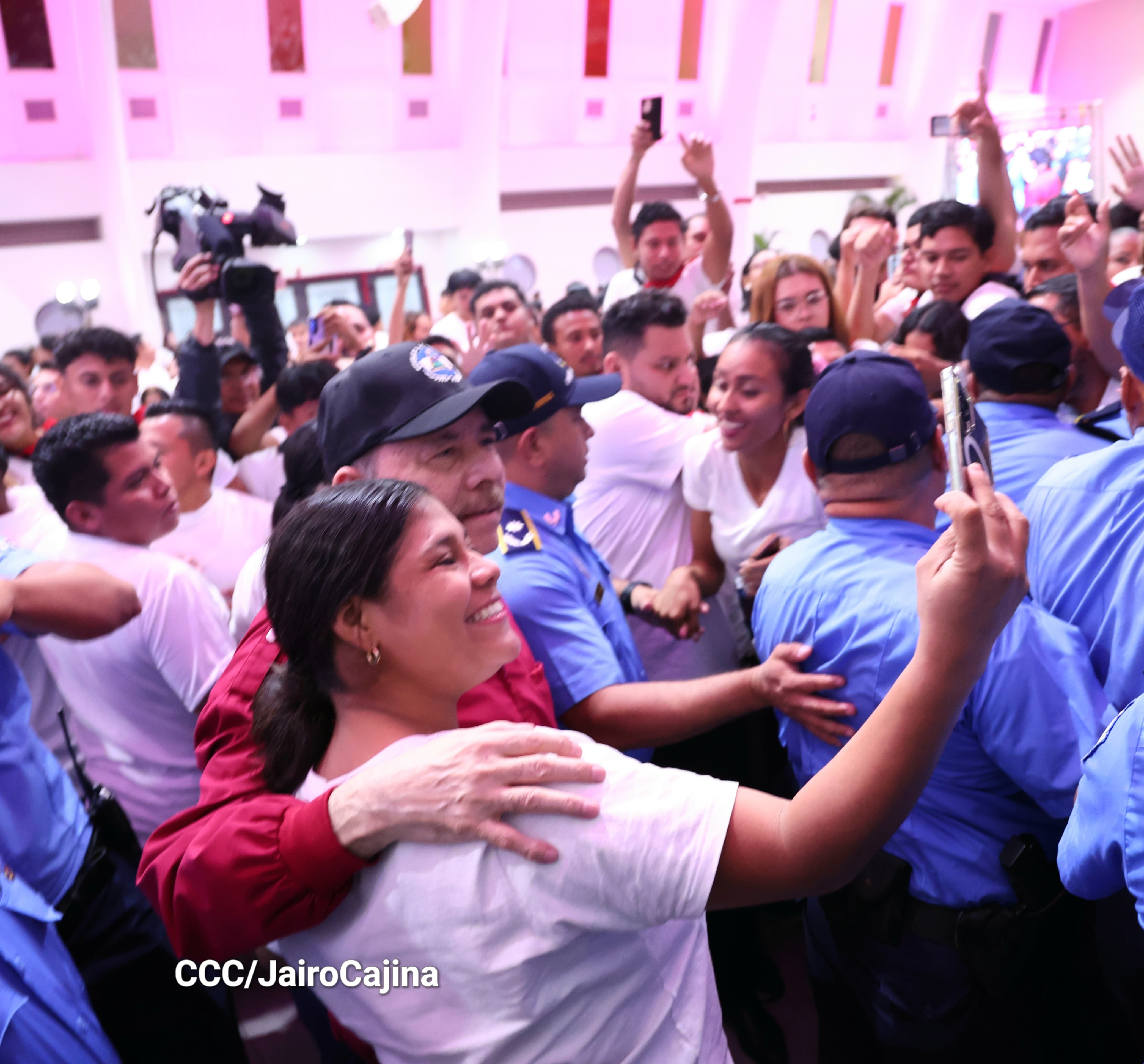 En el Centro de Convenciones Olof Palme, los Copresidentes de Nicaragua, Comandante Daniel Ortega y Compañera Rosario Murillo, encabezan esta tarde-noche el acto de celebración del 71 aniversario natal del Comandante Eterno Hugo Chávez Frías.