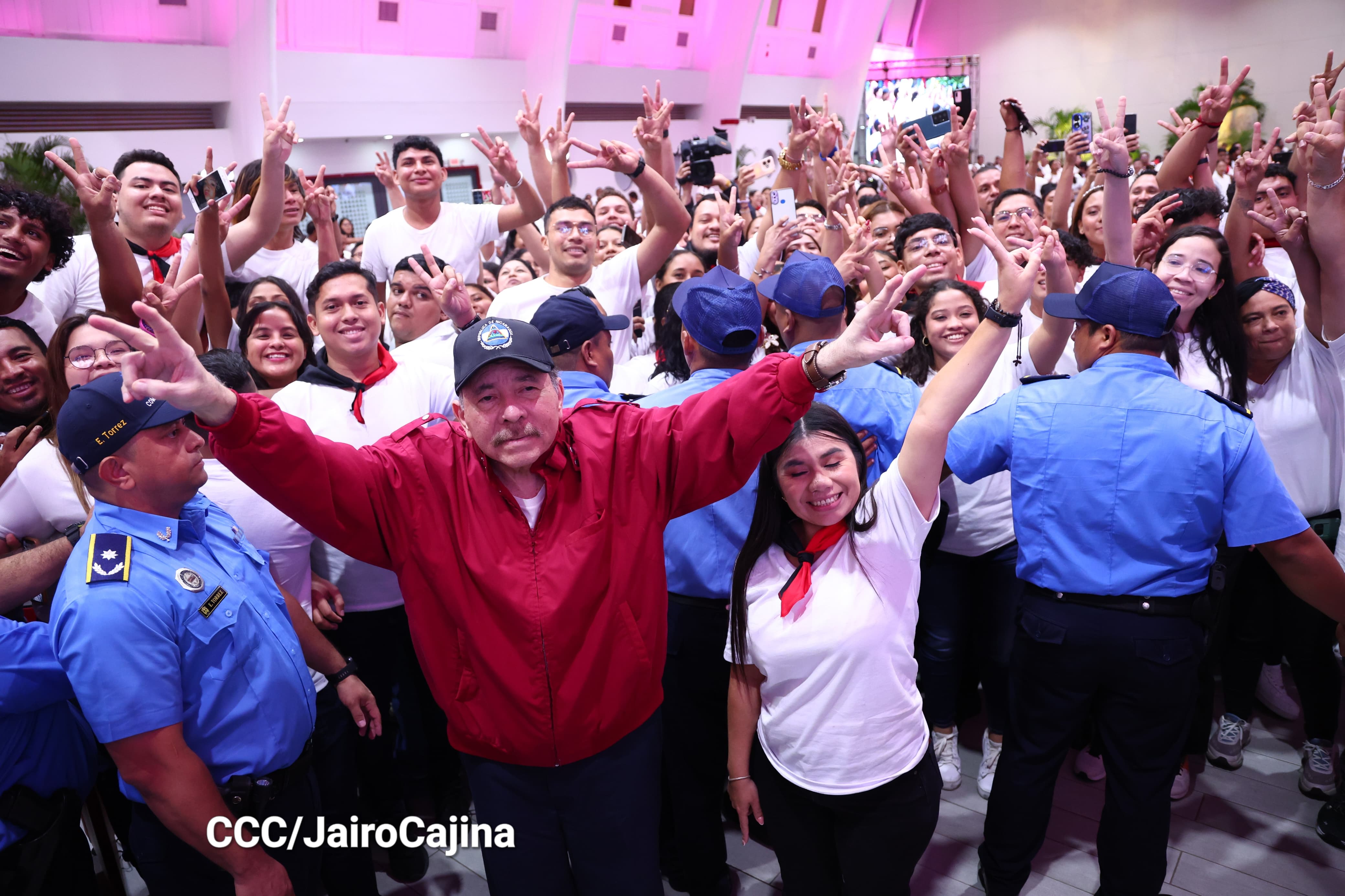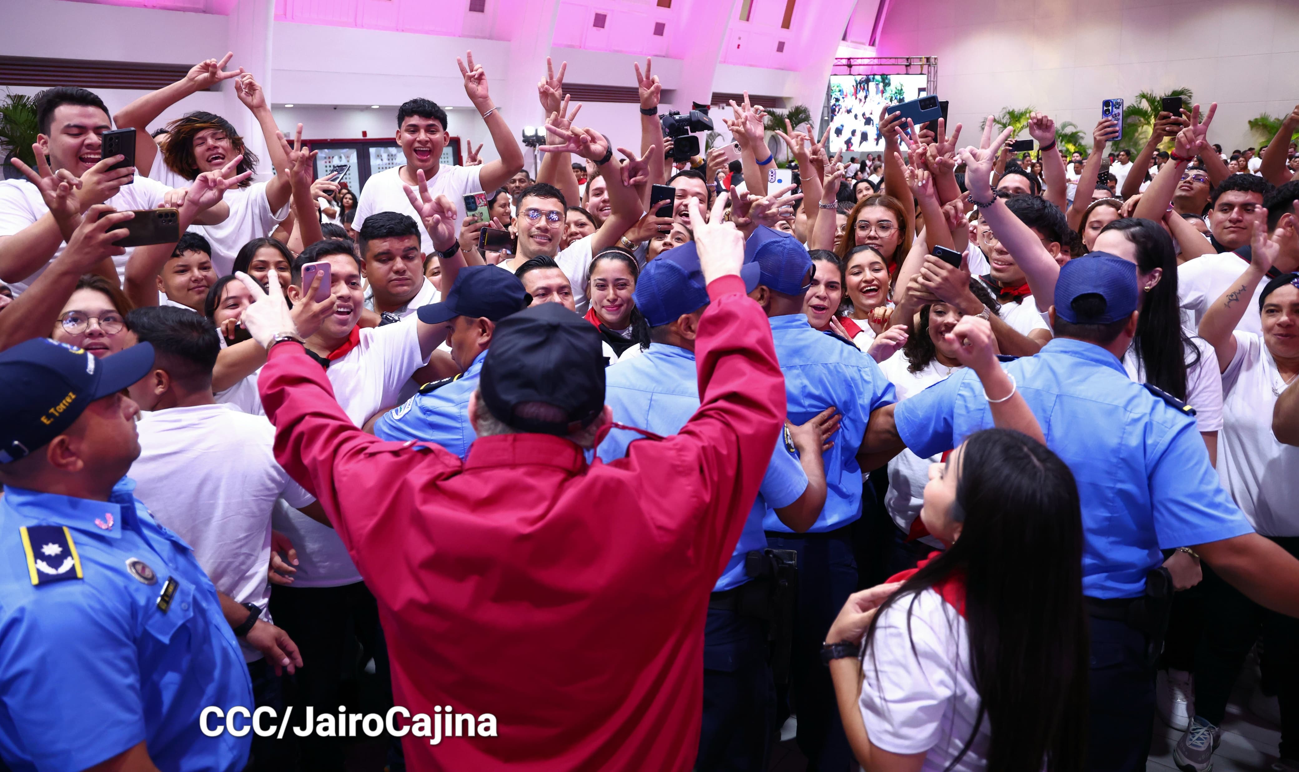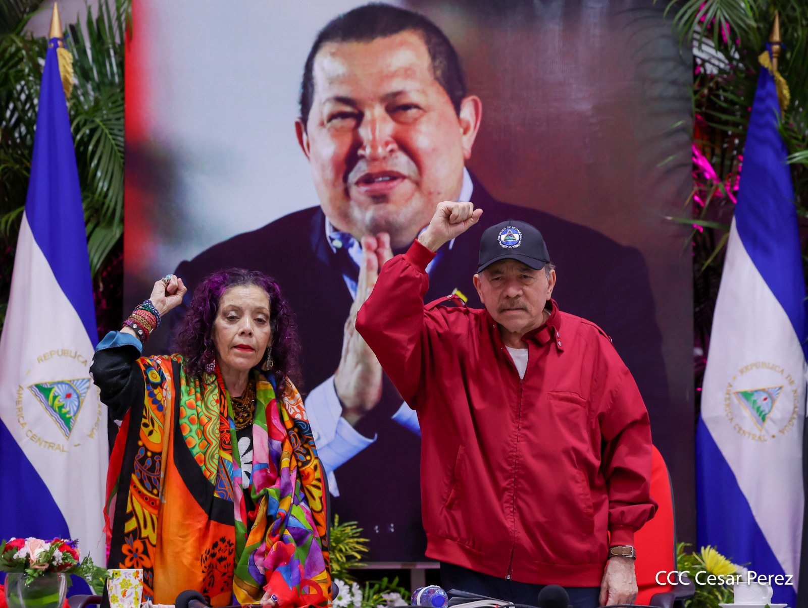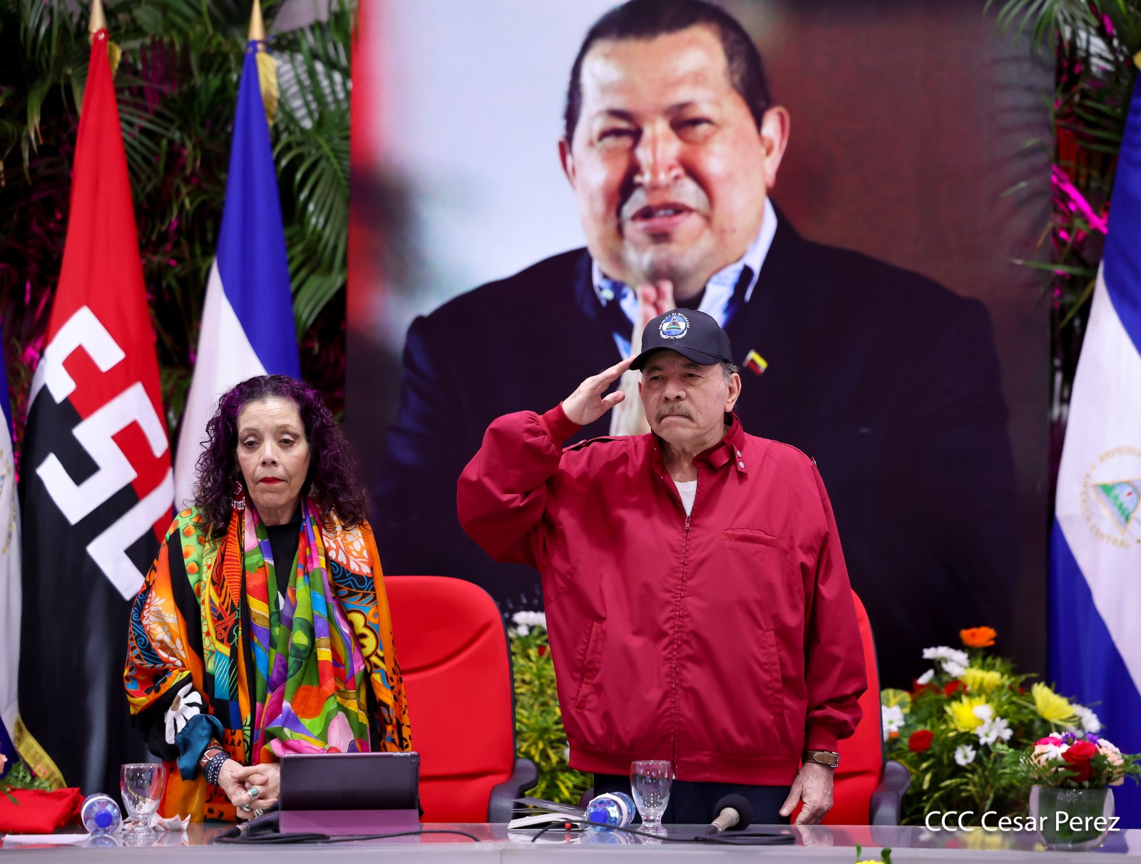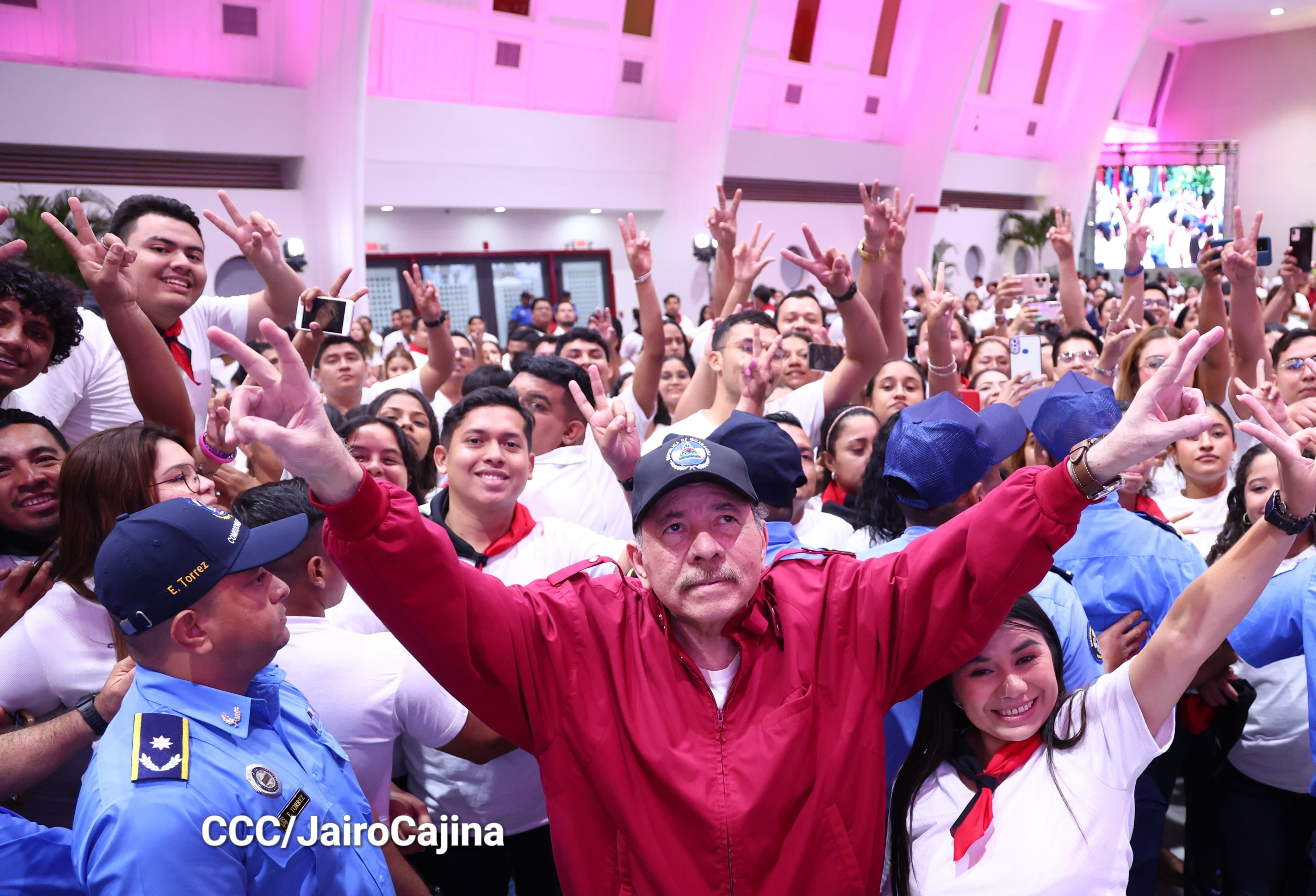 En el Centro de Convenciones Olof Palme, los Copresidentes de Nicaragua, Comandante Daniel Ortega y Compañera Rosario Murillo, encabezan esta tarde-noche el acto de celebración del 71 aniversario natal del Comandante Eterno Hugo Chávez Frías.