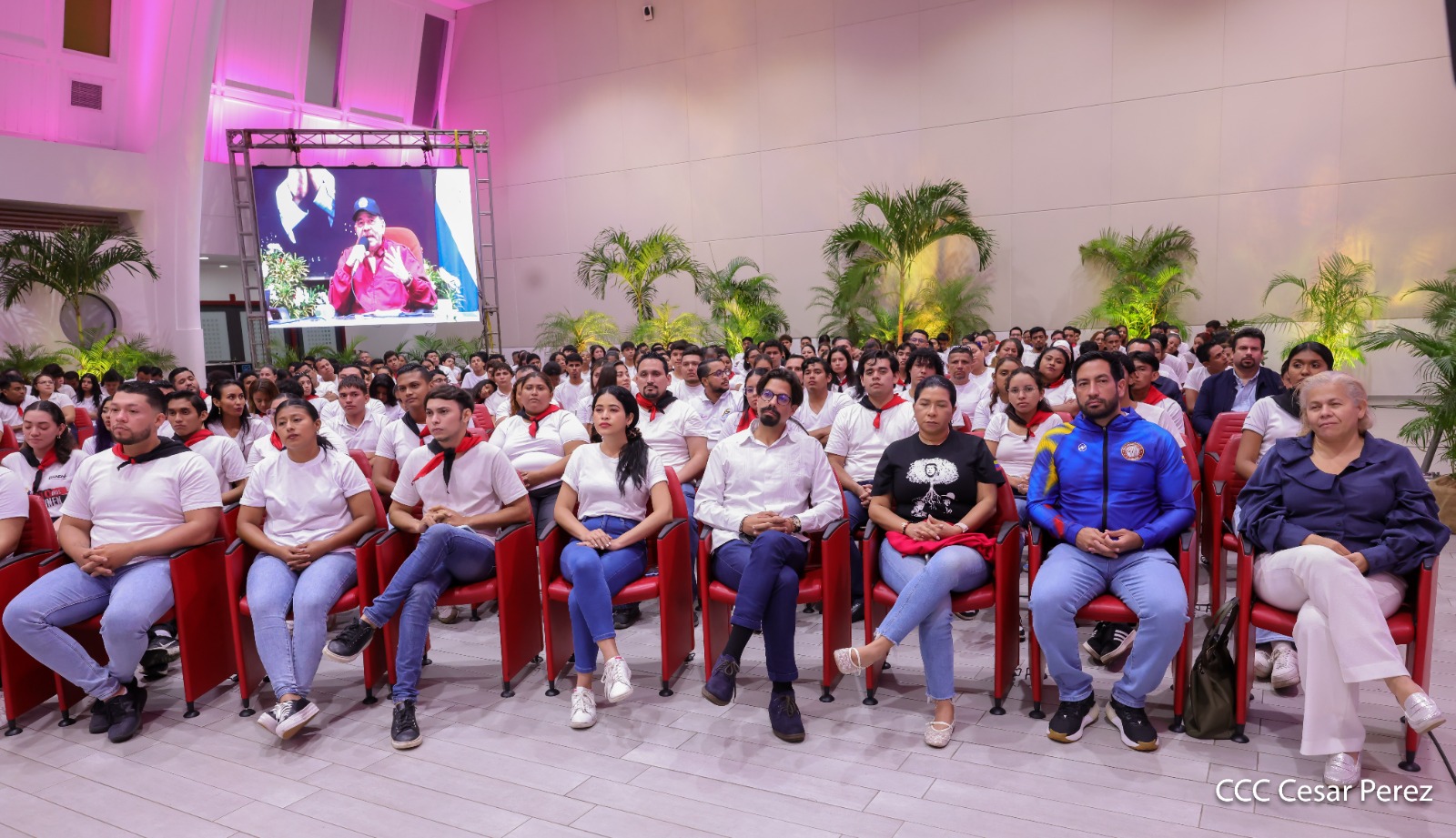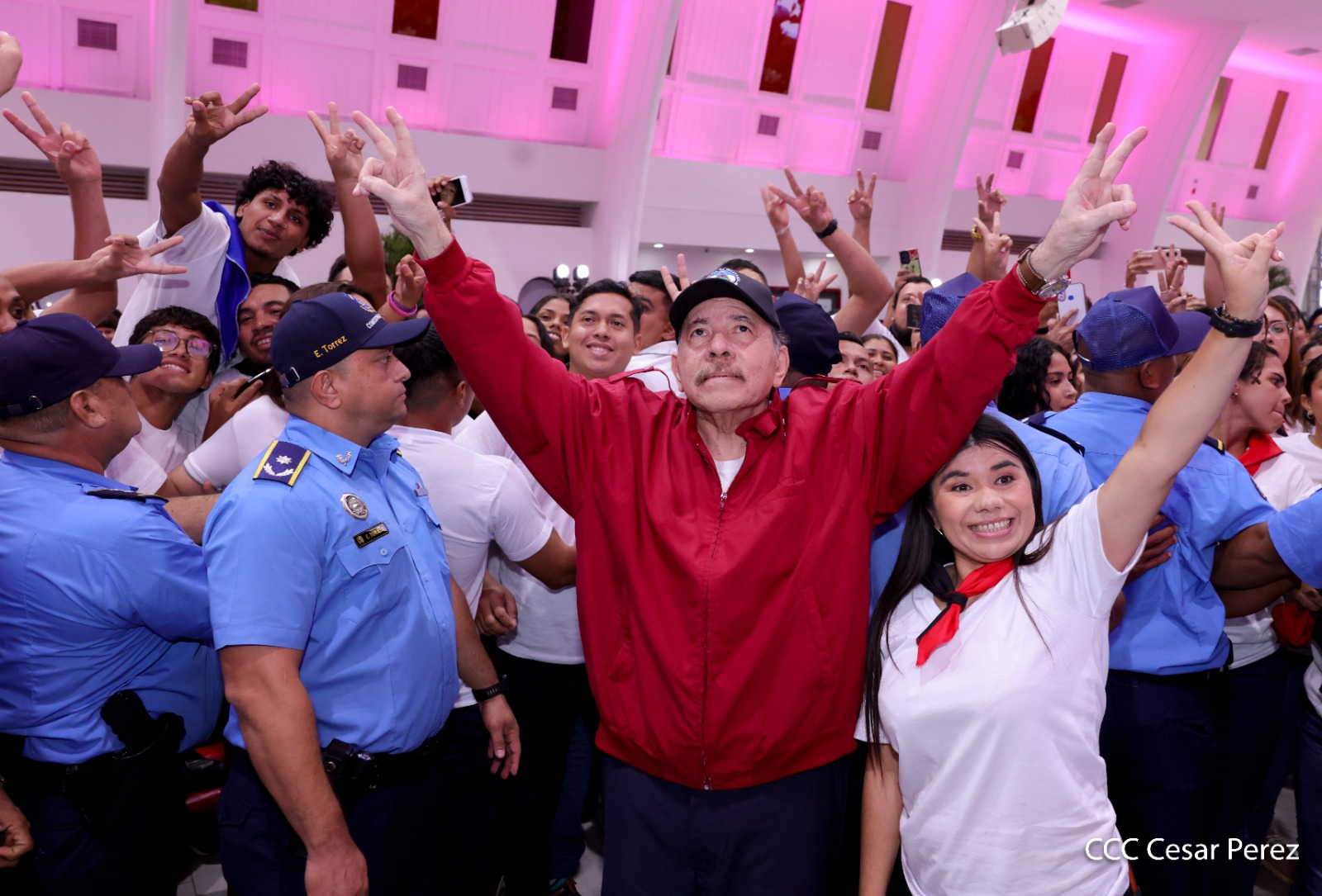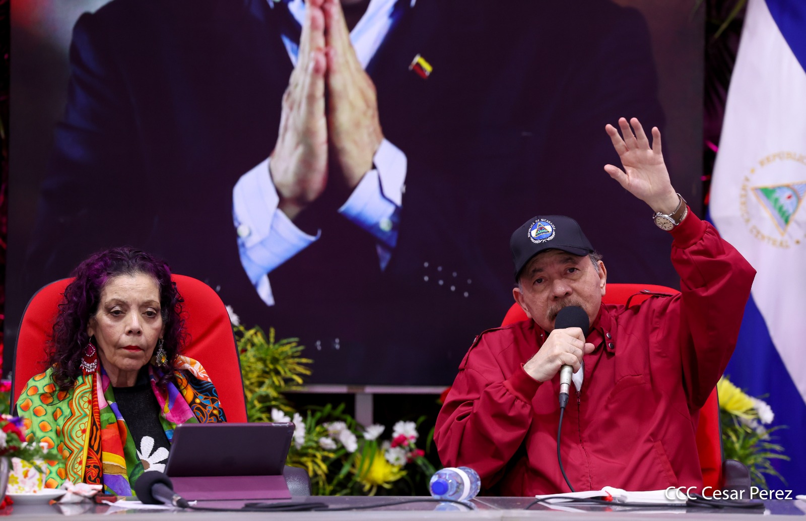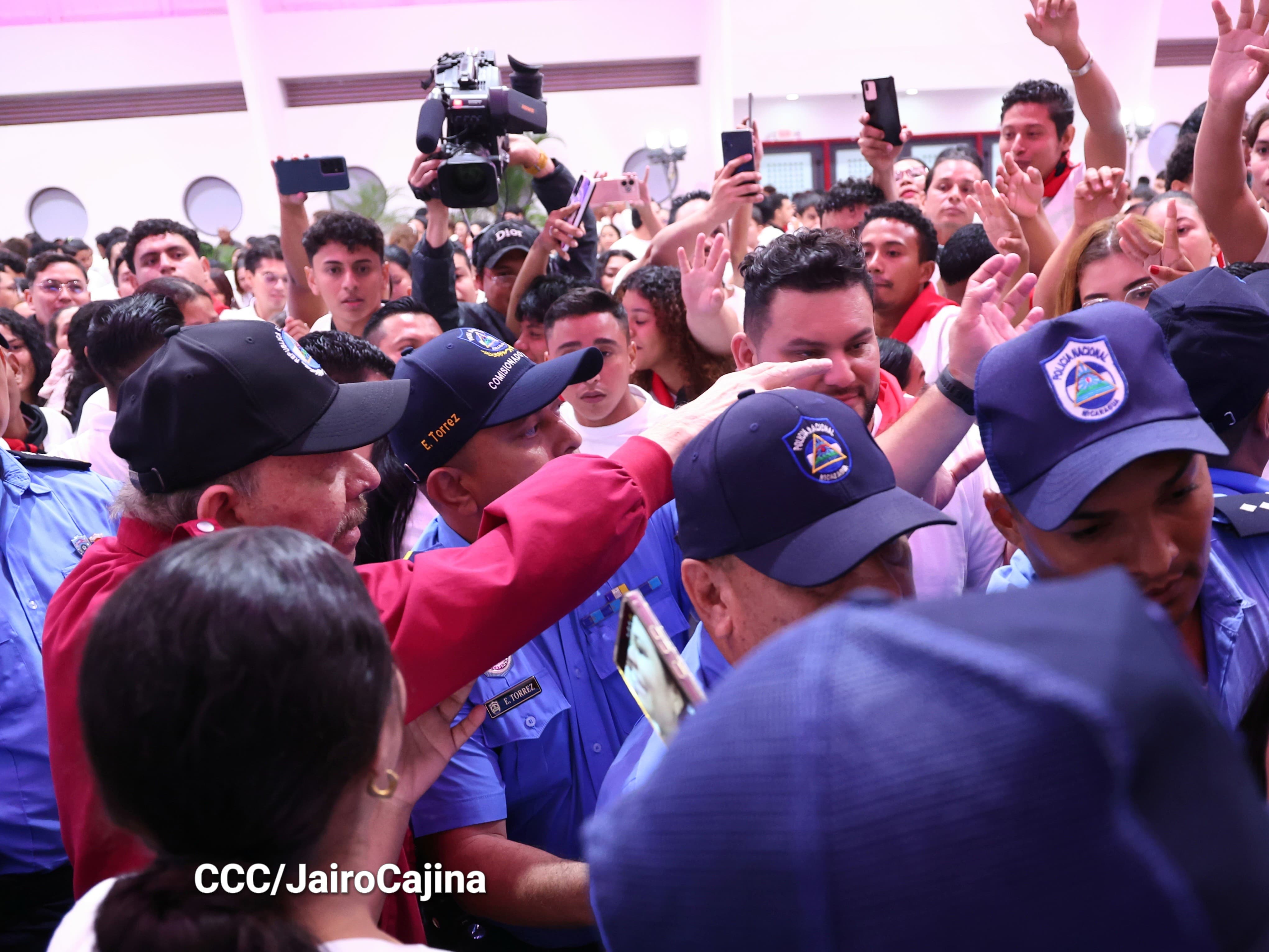 En el Centro de Convenciones Olof Palme, los Copresidentes de Nicaragua, Comandante Daniel Ortega y Compañera Rosario Murillo, encabezan esta tarde-noche el acto de celebración del 71 aniversario natal del Comandante Eterno Hugo Chávez Frías.