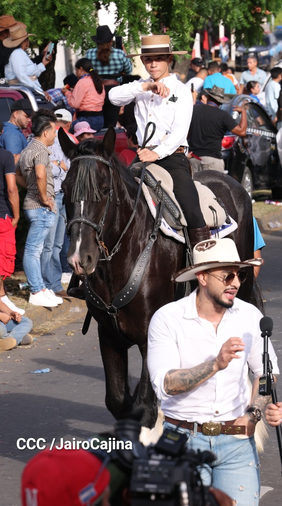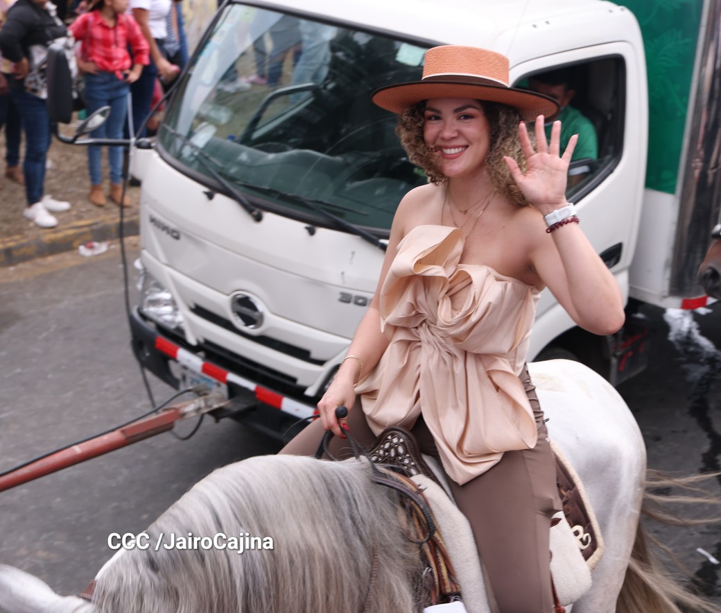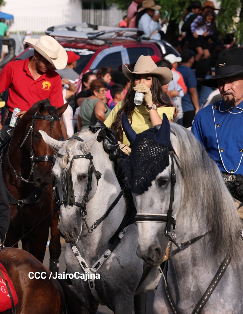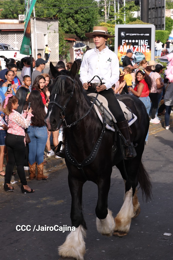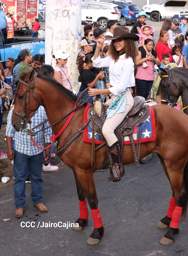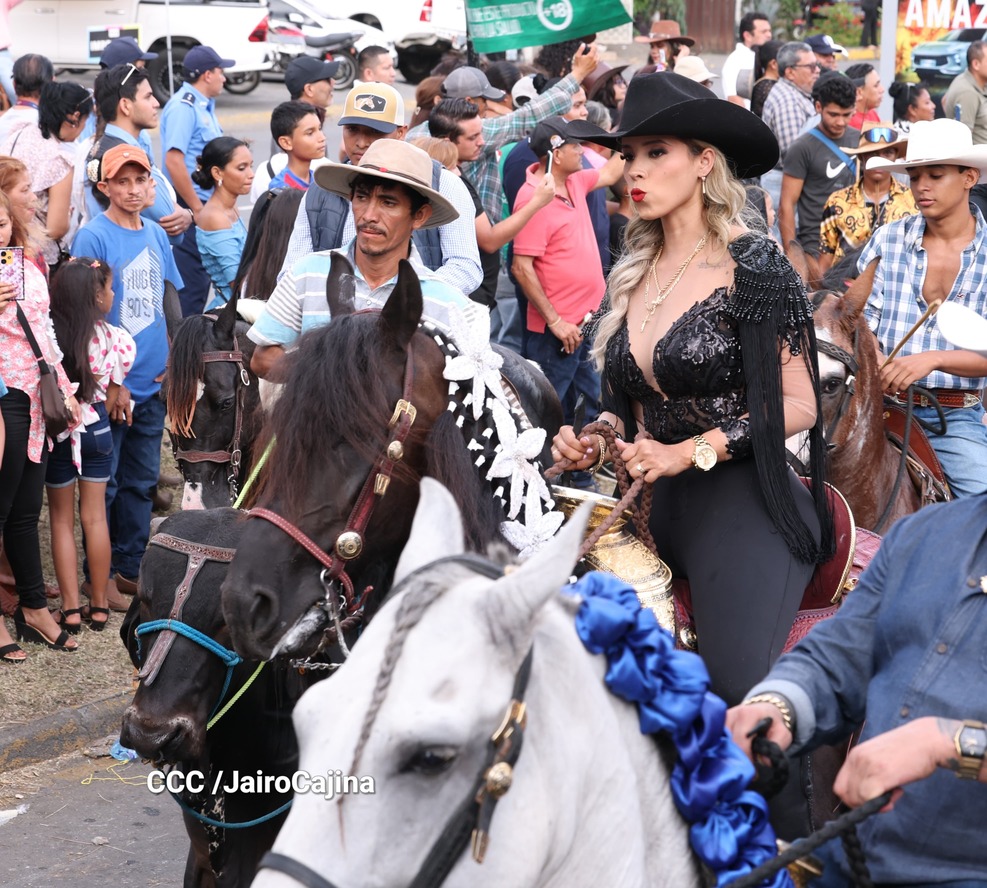 Este desfile inició desde las instalaciones de la Feria Ganadera Agostina Internacional 2025, que está en el kilómetro 7.2 de la carretera a Masaya, sitio en el que se vivió un ambiente espectacular con una fiesta previa y recibimiento de representaciones de todos los departamentos.