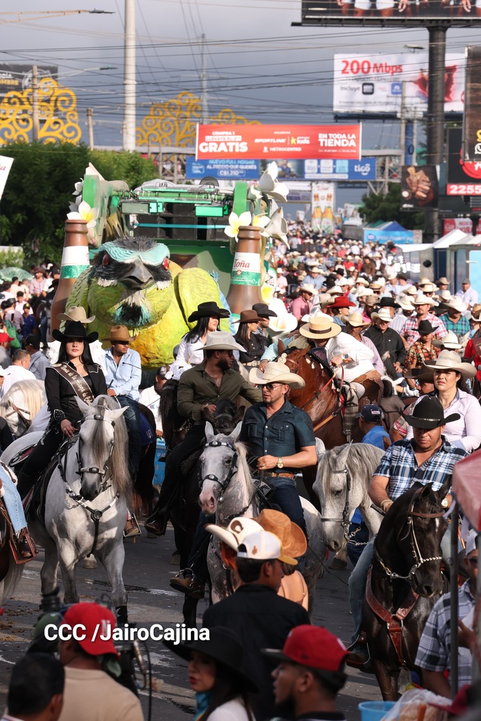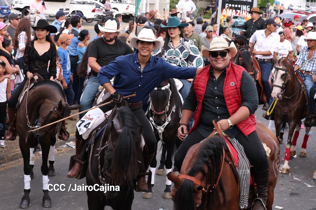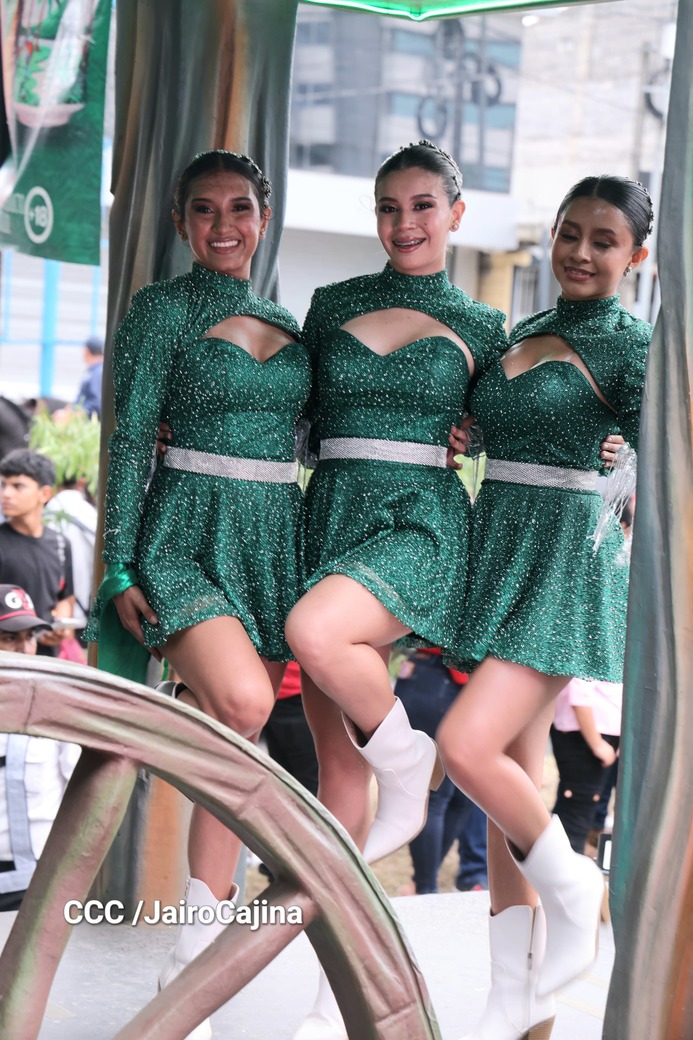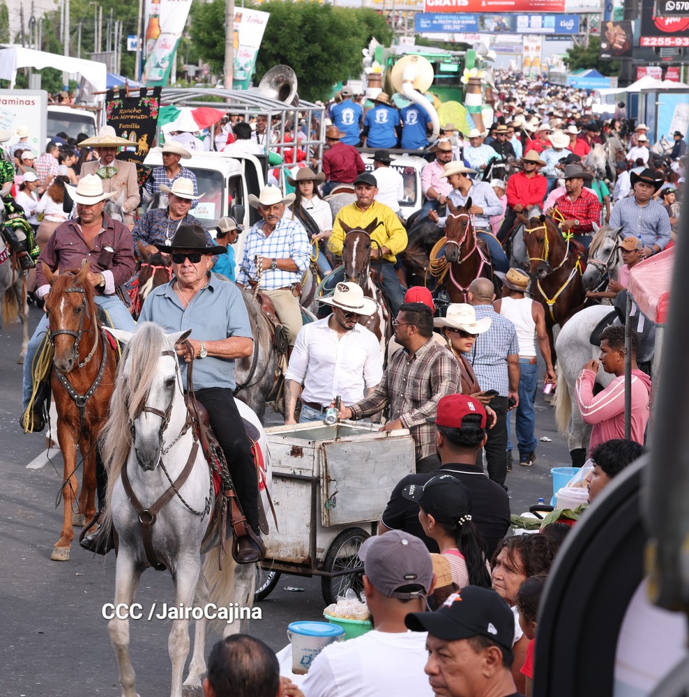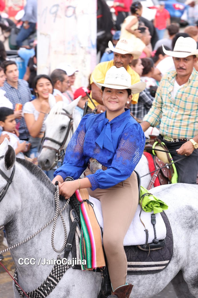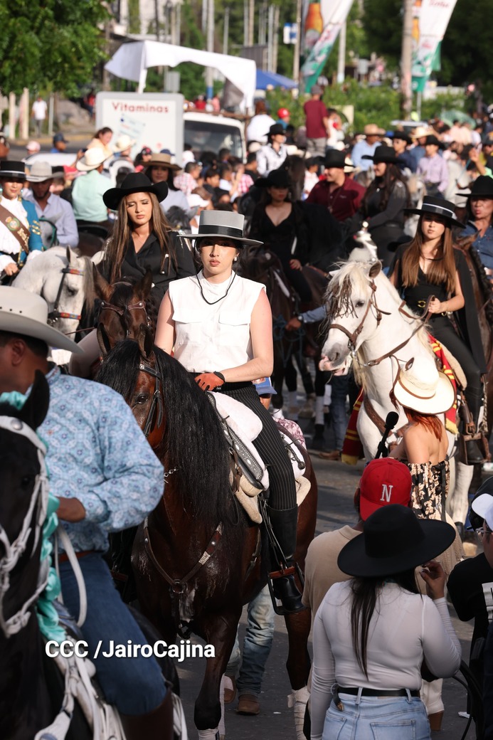 Este desfile inició desde las instalaciones de la Feria Ganadera Agostina Internacional 2025, que está en el kilómetro 7.2 de la carretera a Masaya, sitio en el que se vivió un ambiente espectacular con una fiesta previa y recibimiento de representaciones de todos los departamentos.