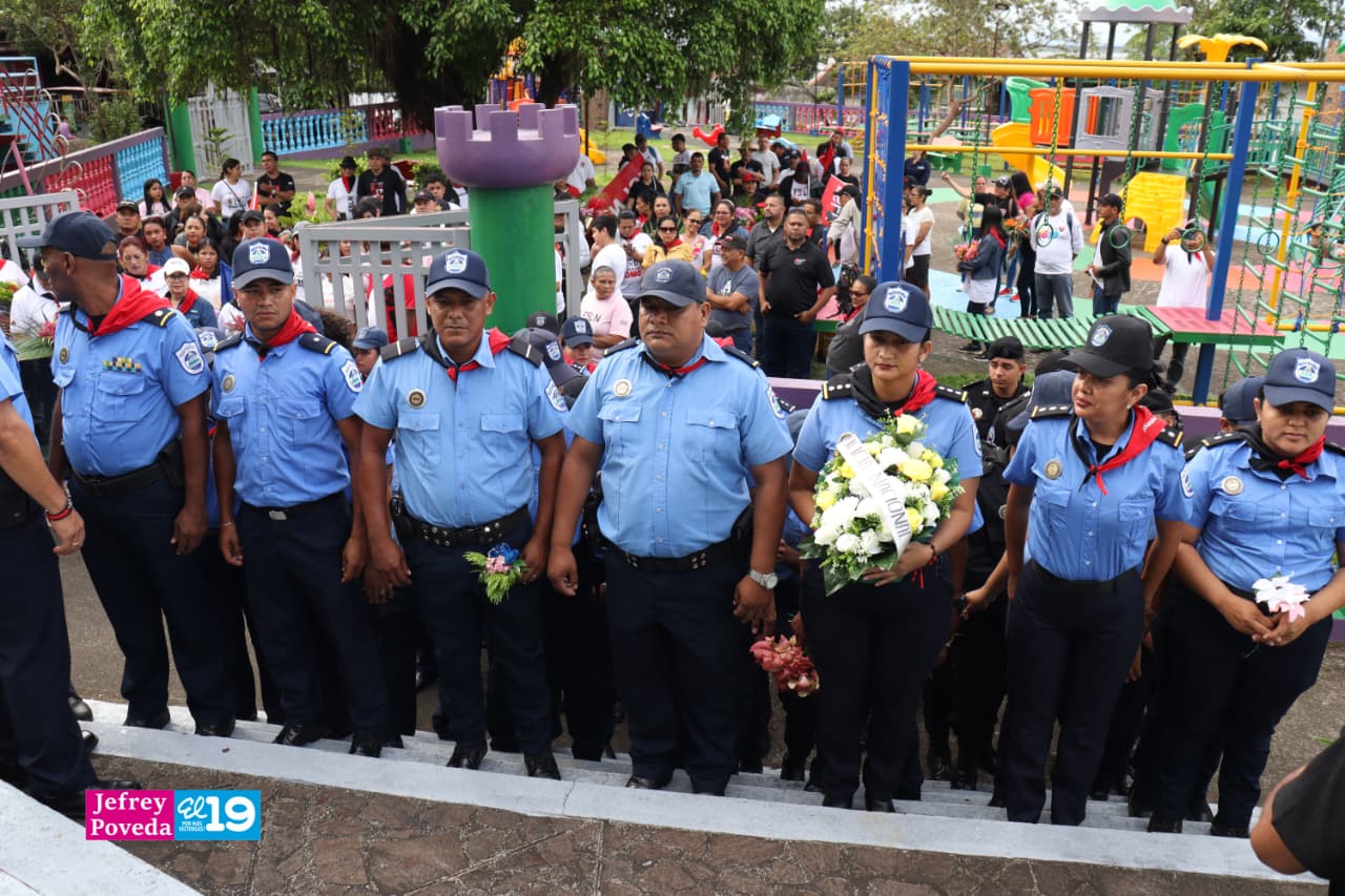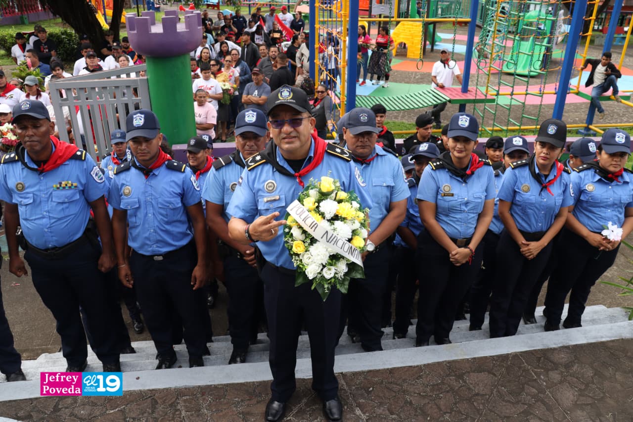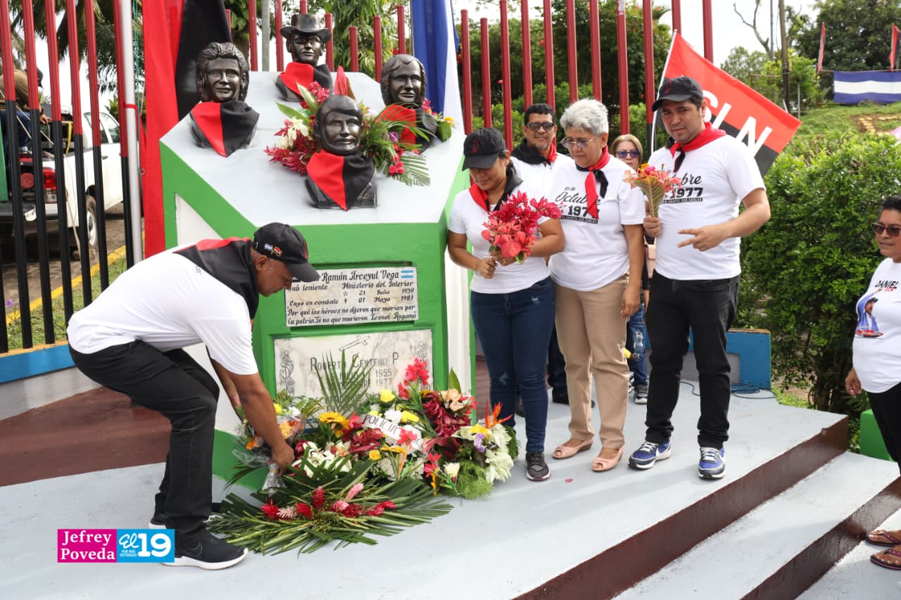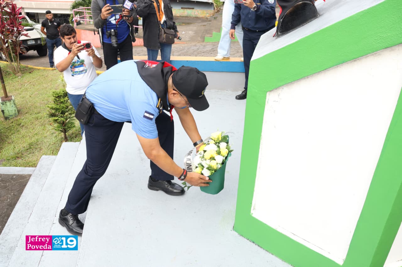 Las actividades de conmemoración y celebración, iniciaron con una diana y la entrega de ofrendas florales, por parte de la Policía Nacional, jefatura departamental y municipal, Unidad de Victoria, honrando la memoria de los Héroes y Mártires de Octubre.