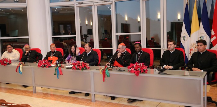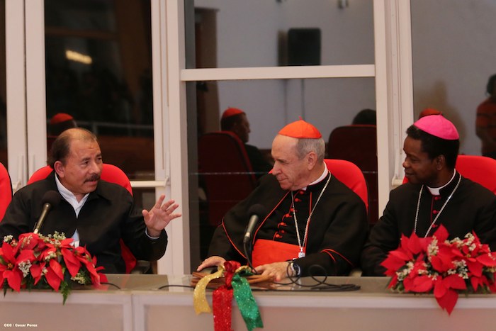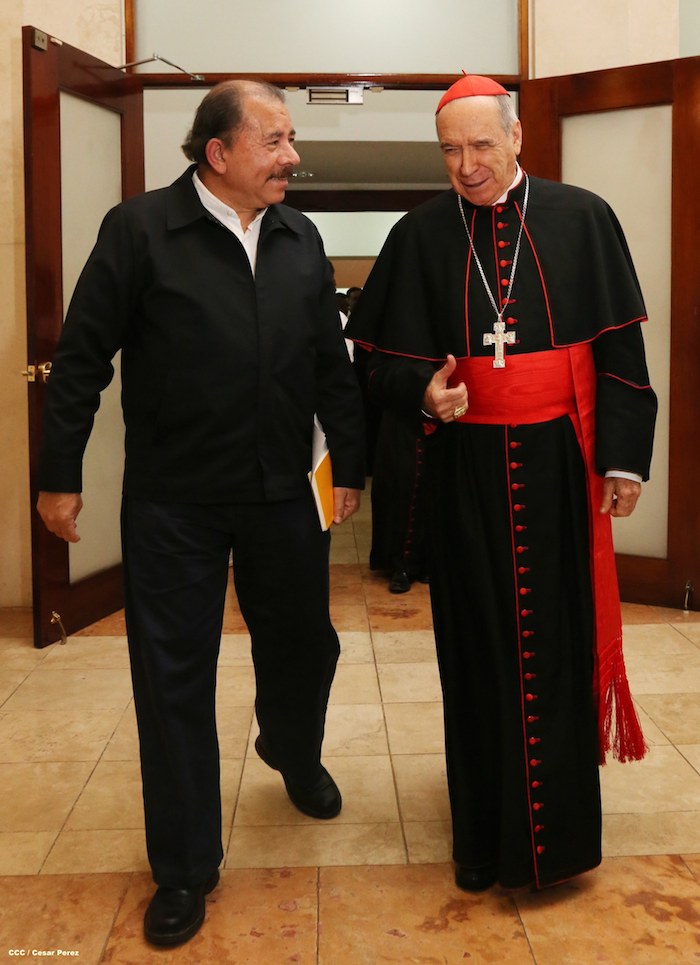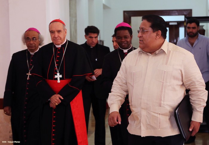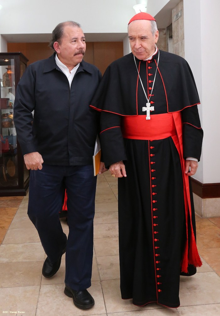 El Presidente de la República, comandante Daniel Ortega Saavedra, y la Coordinadora del Consejo de Comunicación y Ciudadanía, compañera Rosario Murillo, se reunieron con el enviado especial del Papa Francisco, el Cardenal dominicano Nicolás de Jesús López, quien se encuentra en el país para celebrar junto al pueblo nicaragüense el centenario de la Provincia Eclesiástica de Nicaragua.