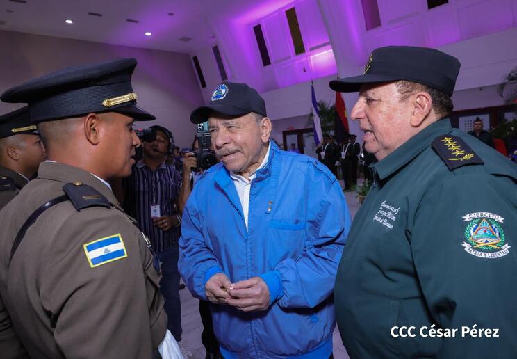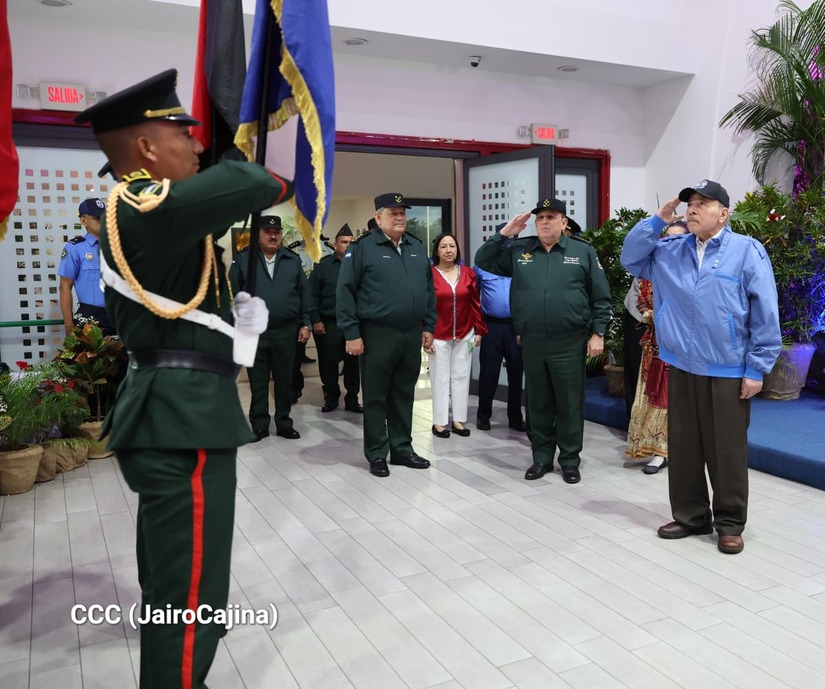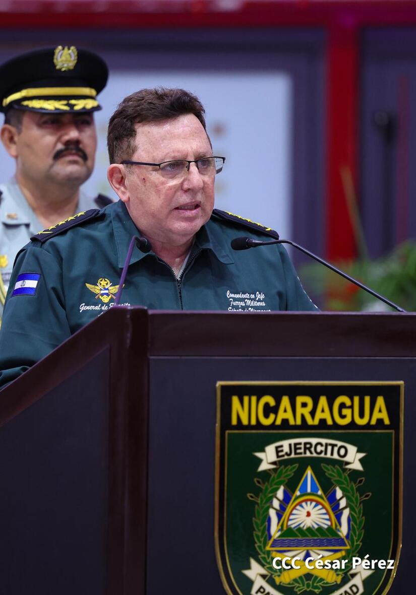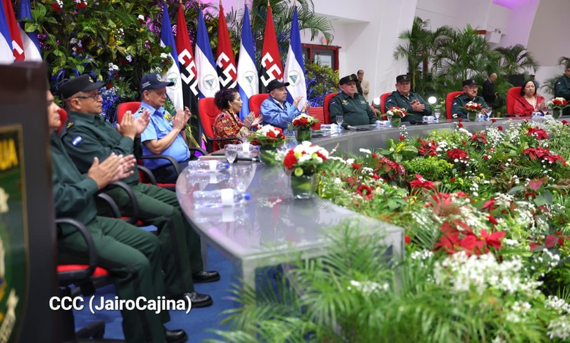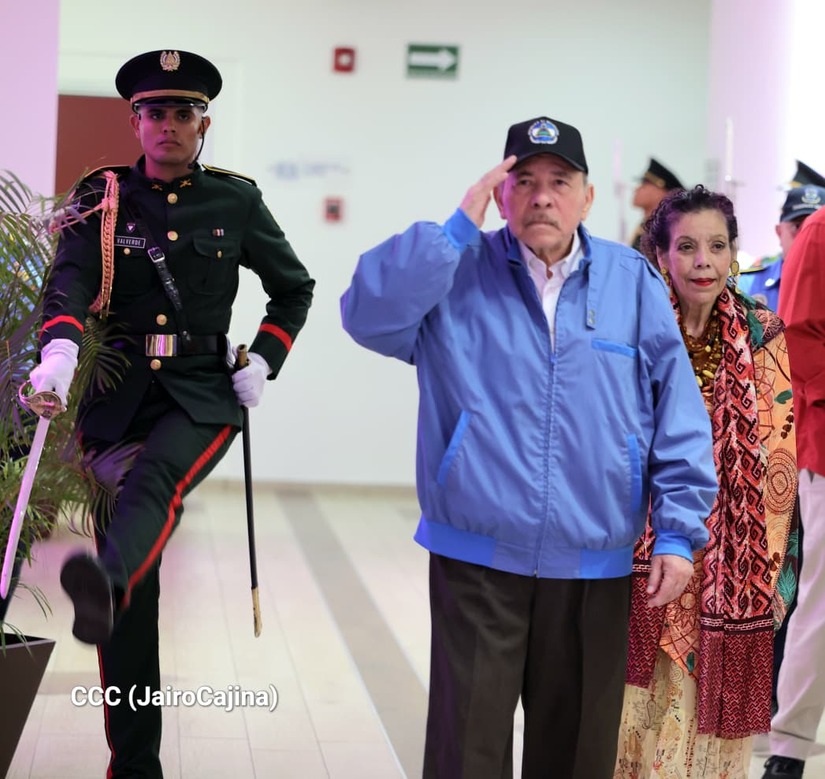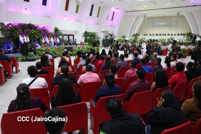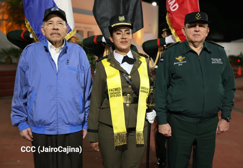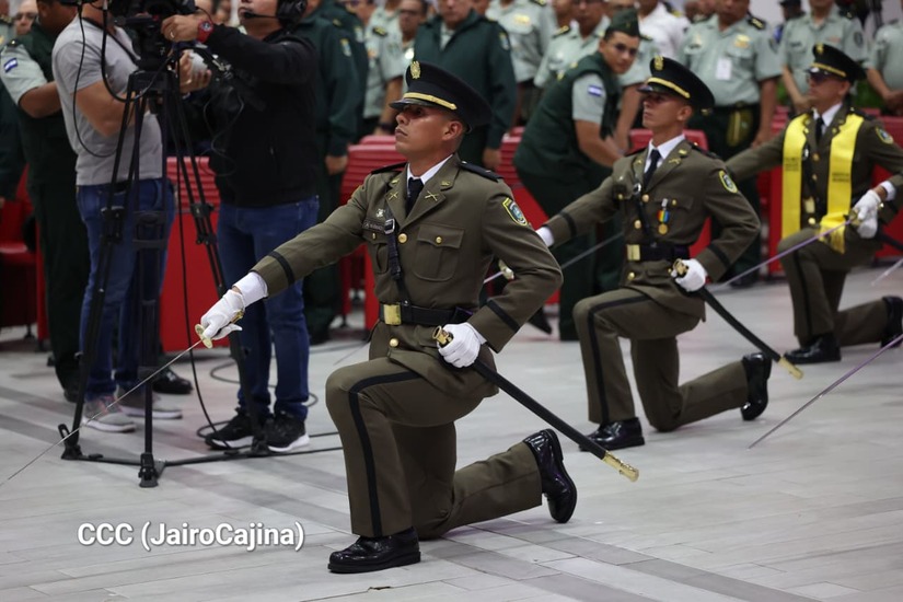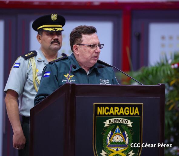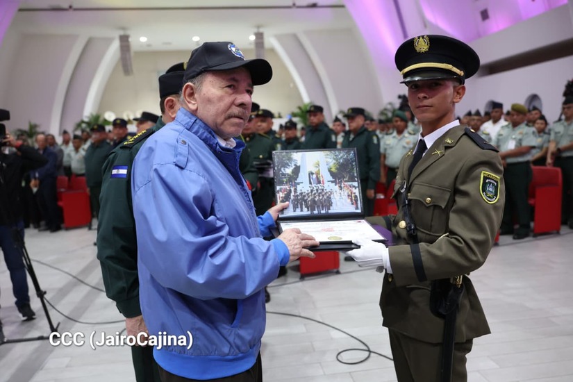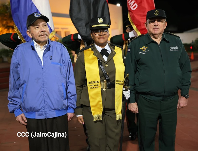 Los Copresidentes de la República, Comandante Daniel Ortega Saavedra y la Compañera Rosario Murillo, presiden junto al General de Ejército Julio César Avilés Castillo, la XXX Graduación de Cadetes del Centro Superior de Estudios Militares "General de División José Dolores Estrada Vado".