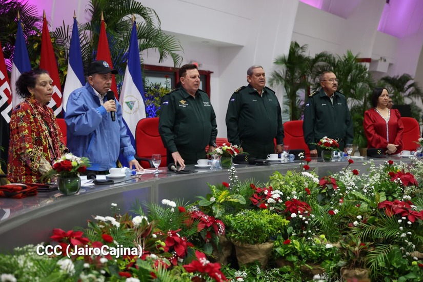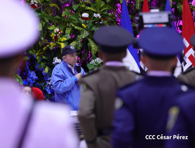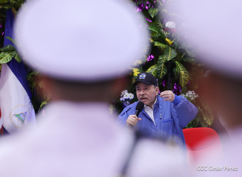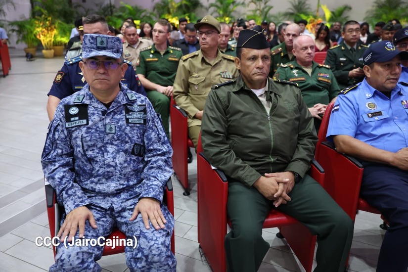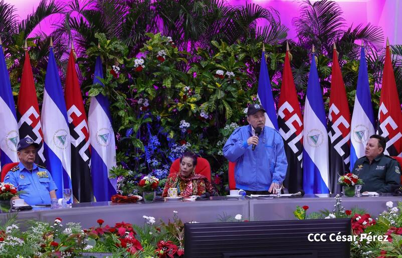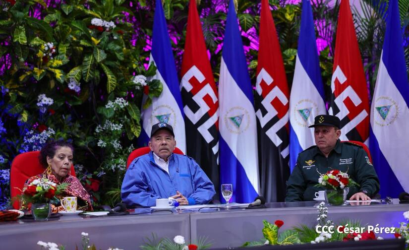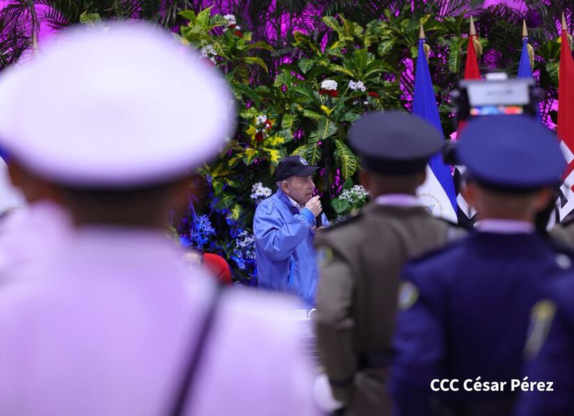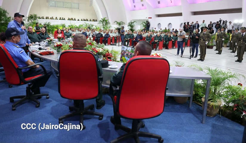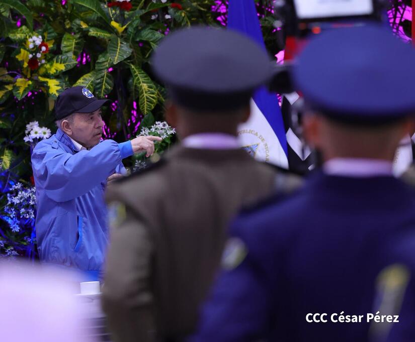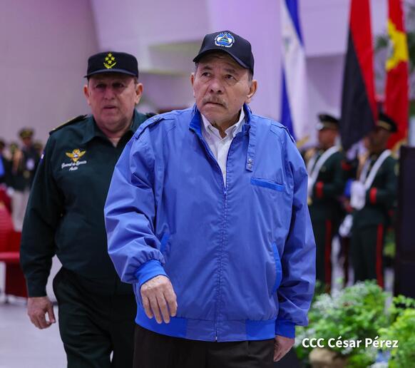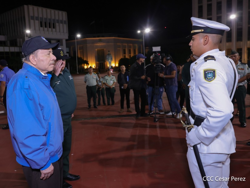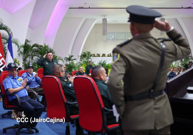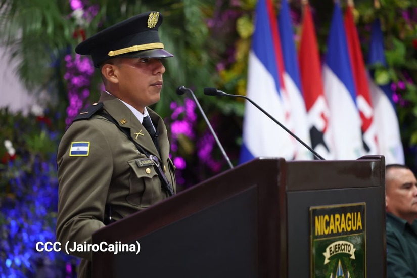 Los Copresidentes de la República, Comandante Daniel Ortega Saavedra y la Compañera Rosario Murillo, presiden junto al General de Ejército Julio César Avilés Castillo, la XXX Graduación de Cadetes del Centro Superior de Estudios Militares "General de División José Dolores Estrada Vado".