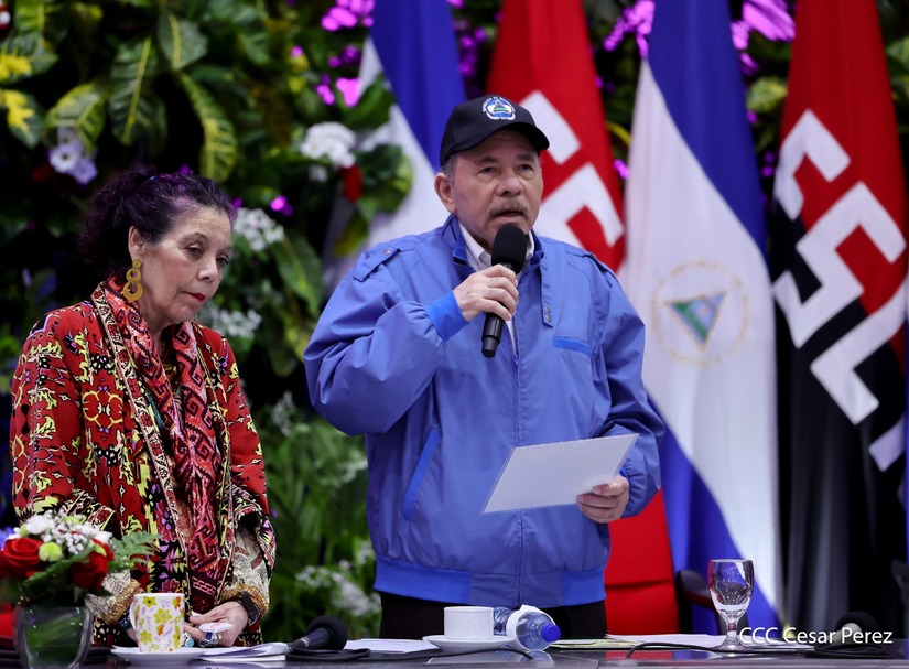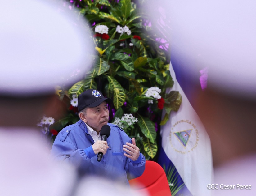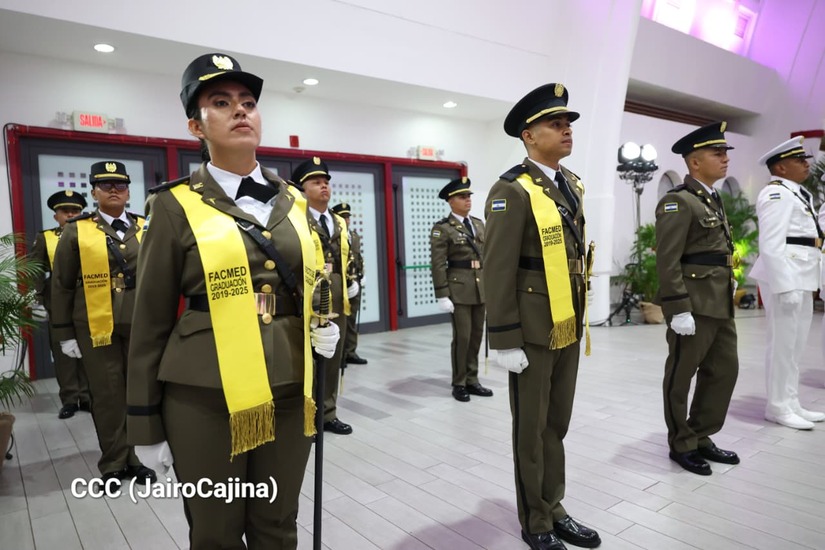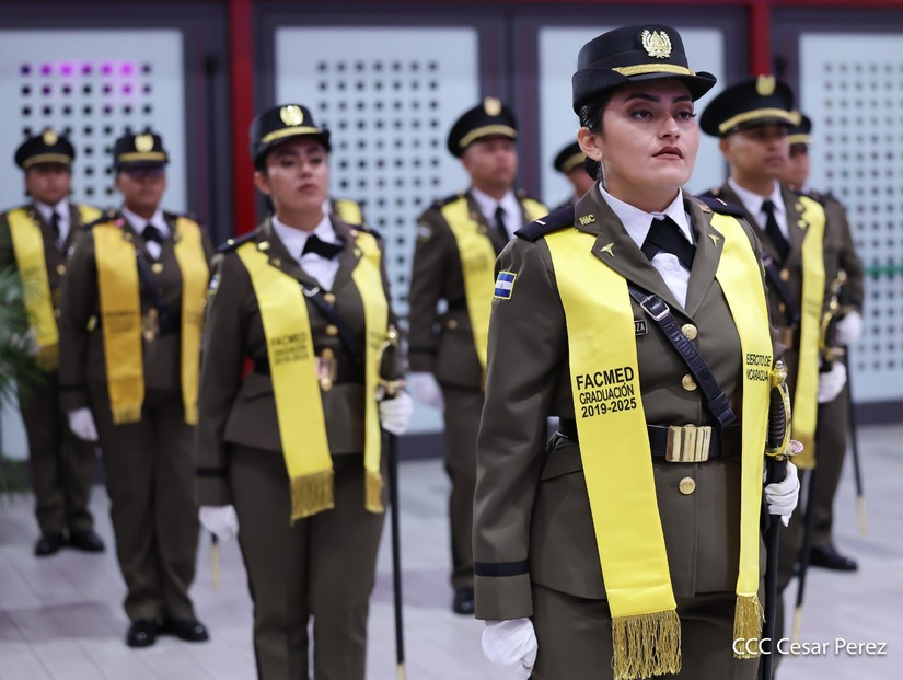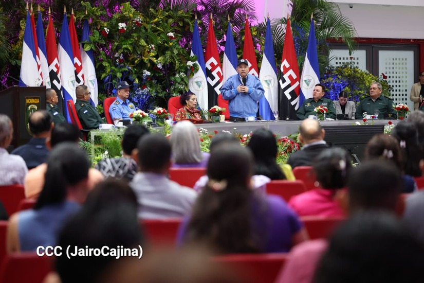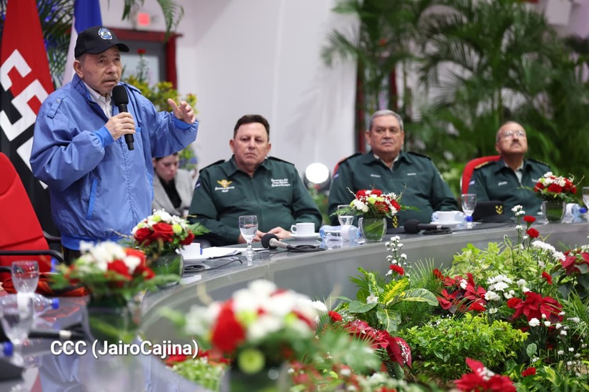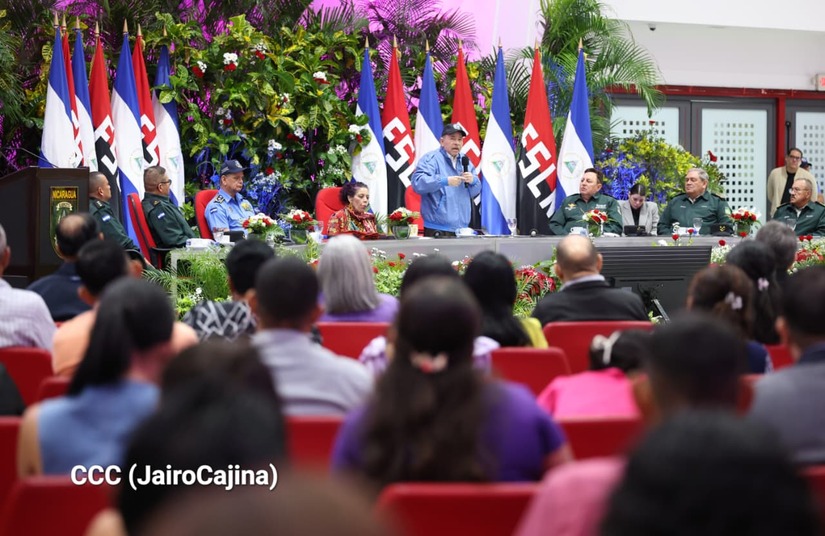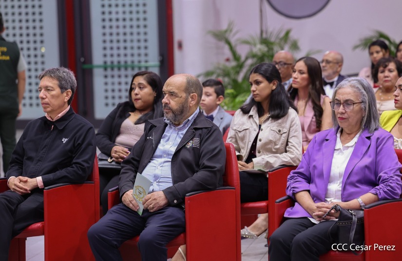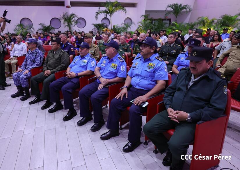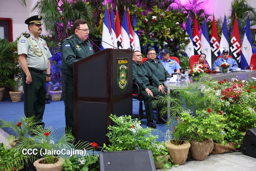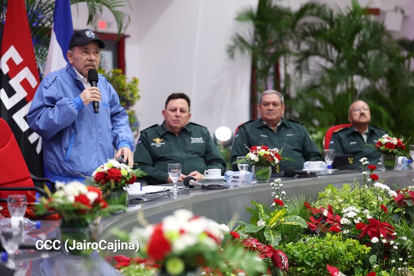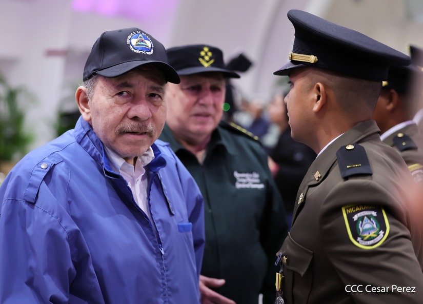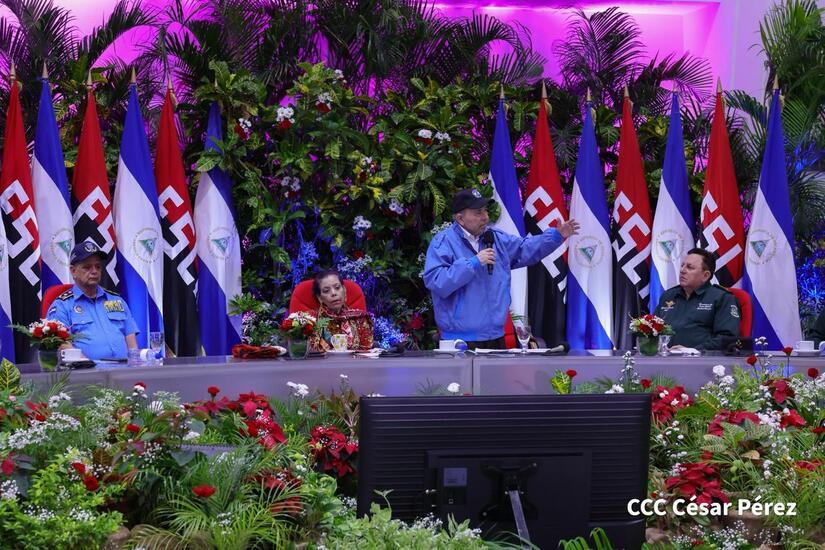 Los Copresidentes de la República, Comandante Daniel Ortega Saavedra y la Compañera Rosario Murillo, presiden junto al General de Ejército Julio César Avilés Castillo, la XXX Graduación de Cadetes del Centro Superior de Estudios Militares "General de División José Dolores Estrada Vado".