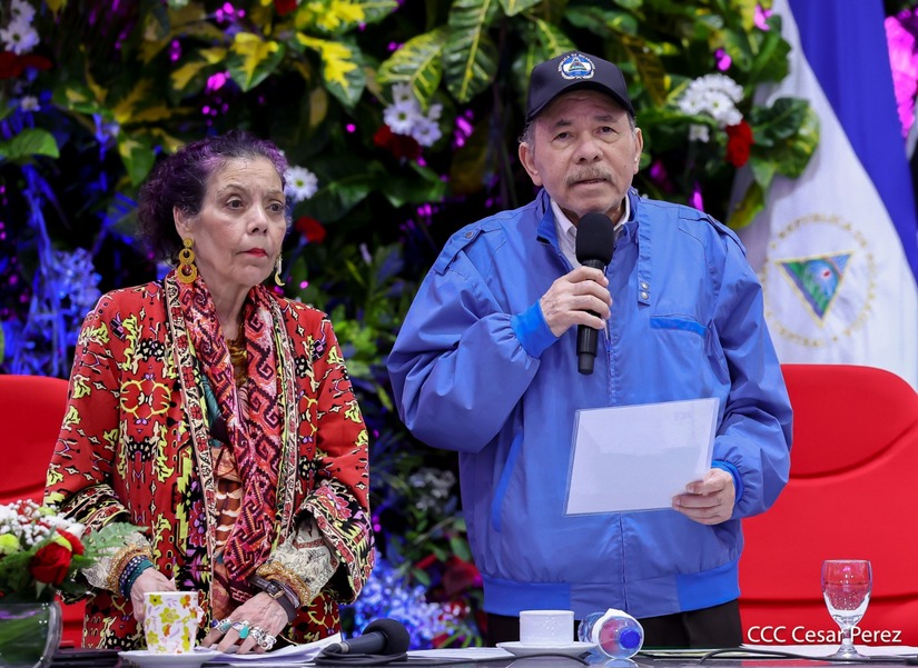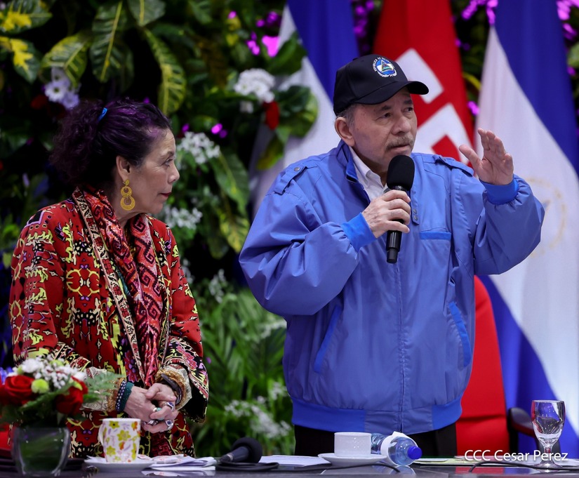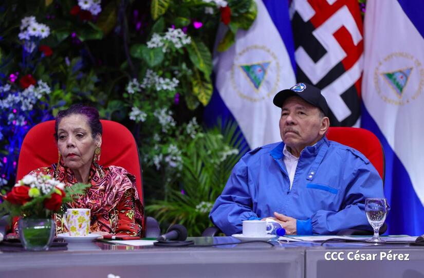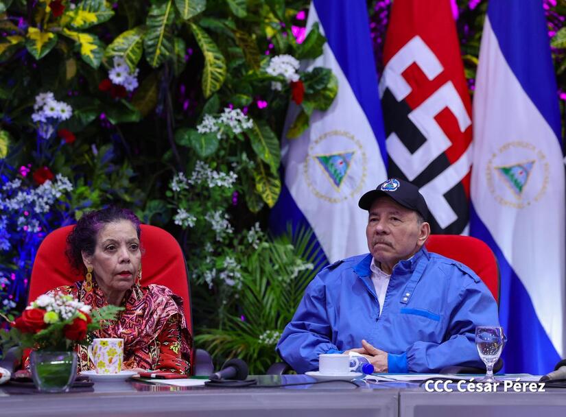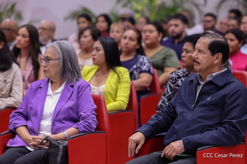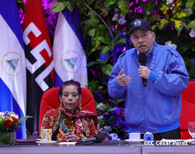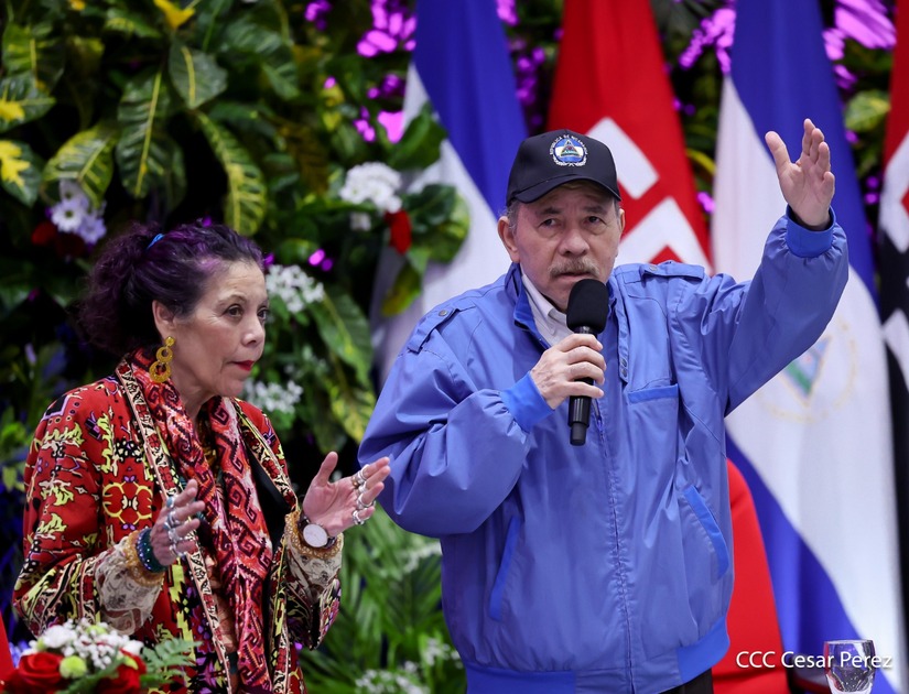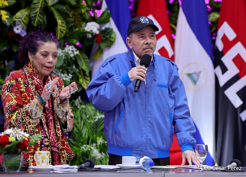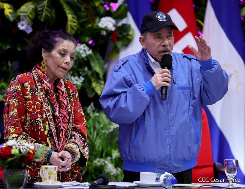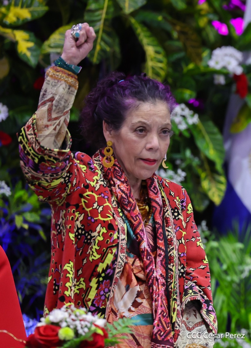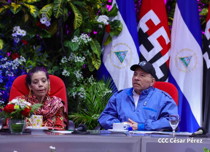 Los Copresidentes de la República, Comandante Daniel Ortega Saavedra y la Compañera Rosario Murillo, presiden junto al General de Ejército Julio César Avilés Castillo, la XXX Graduación de Cadetes del Centro Superior de Estudios Militares "General de División José Dolores Estrada Vado".