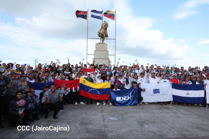 Jóvenes nicaragüenses rinden homenaje a Simón Bolívar con caminata y concierto en Managua