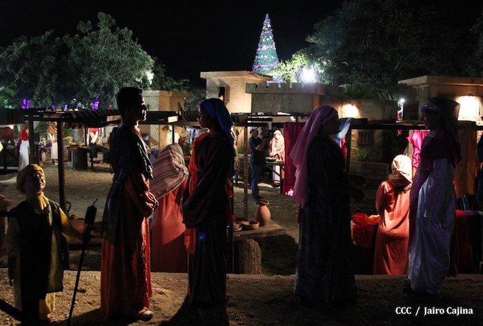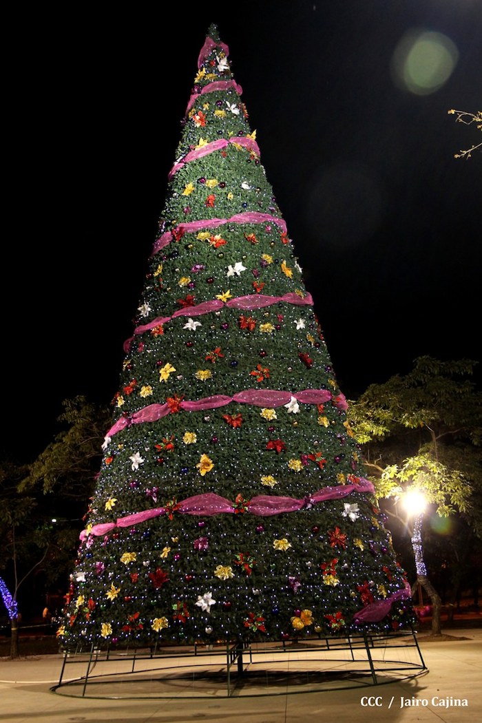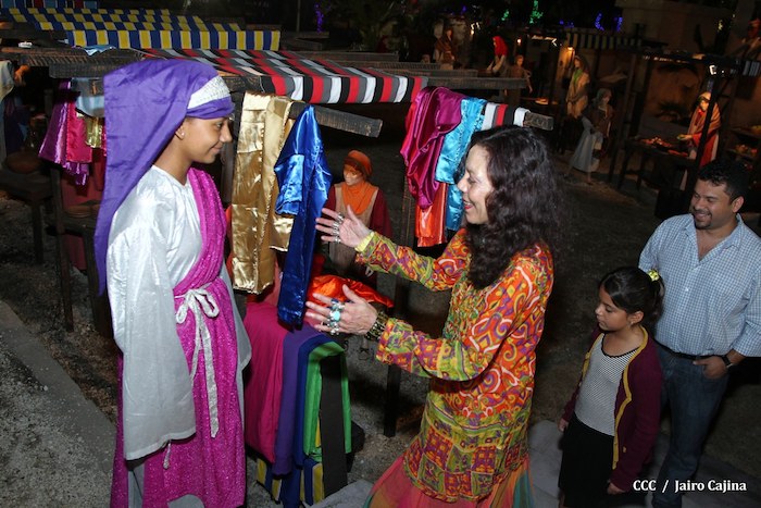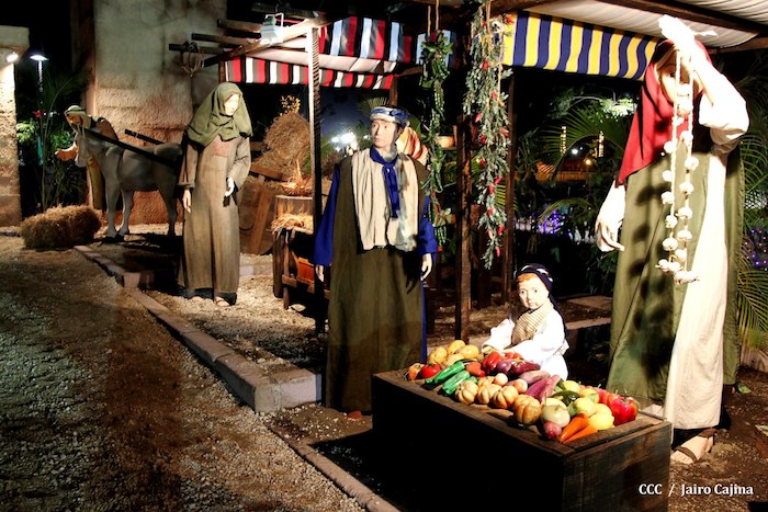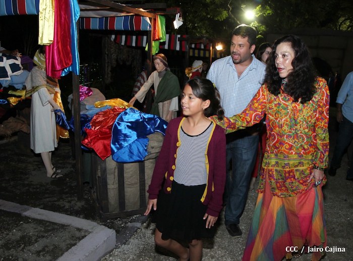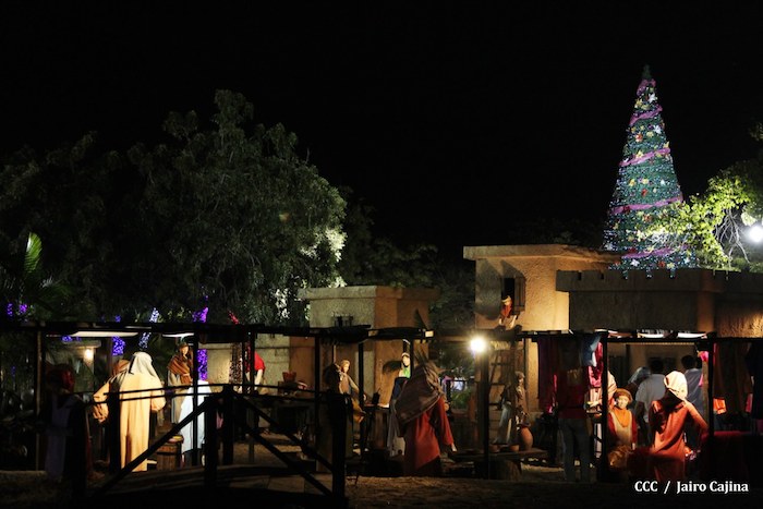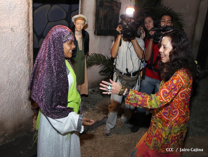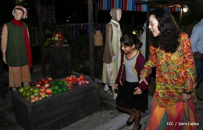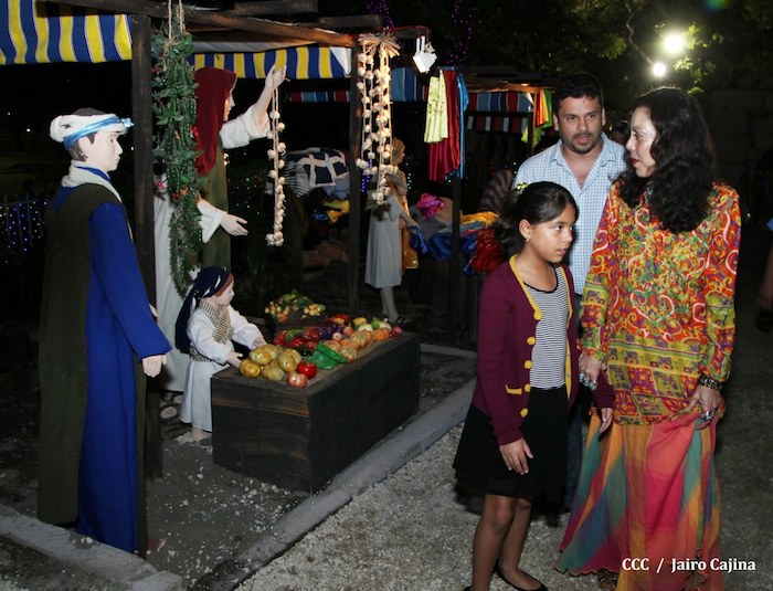 Acompañada por autoridades de la Alcaldía de Managua y familiares, la Compañera Rosario Murillo, Coordinadora del Consejo de Comunicación y Ciudadanía, realizó la noche de este miércoles un recorrido para supervisar los avances en la instalación del Belén, el cual se inaugurará en los próximos días en el Parque Luis Alfonso Velásquez Flores de la capital.