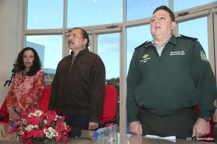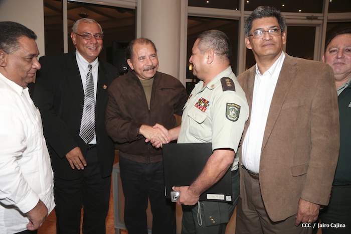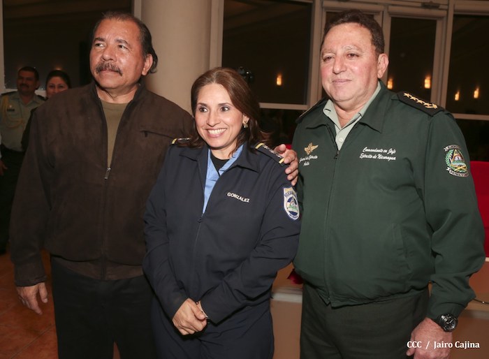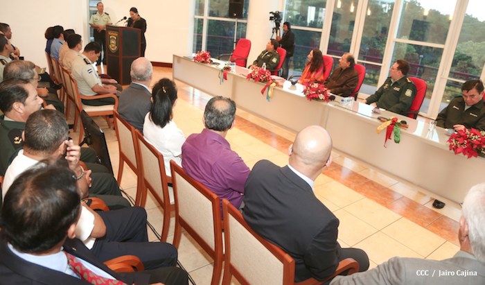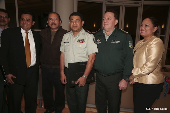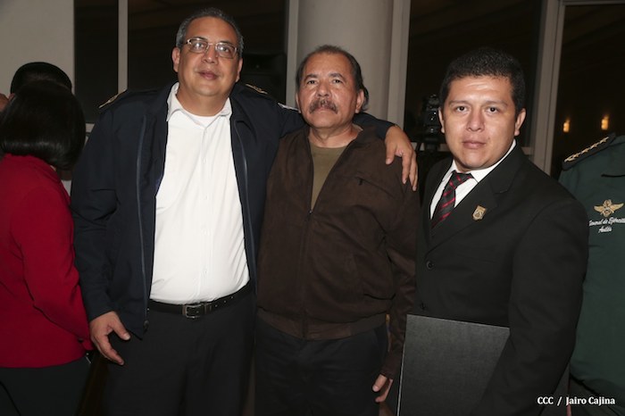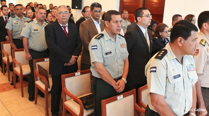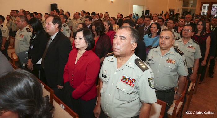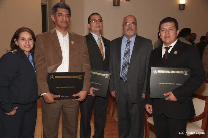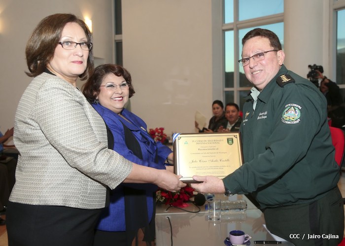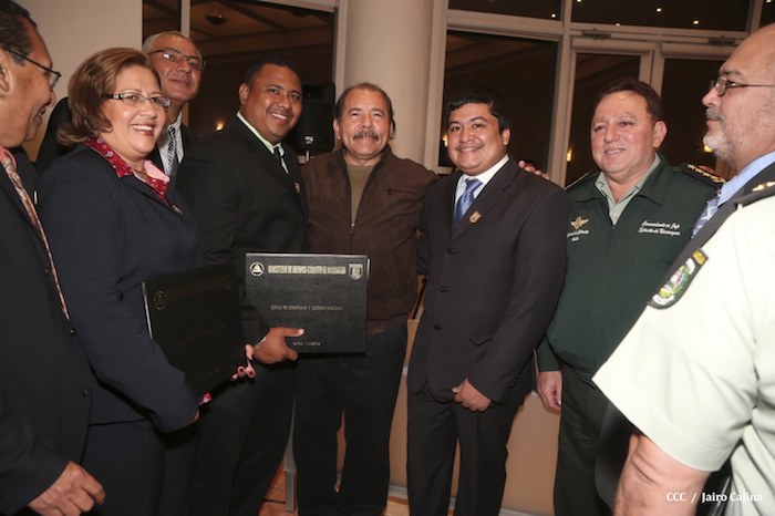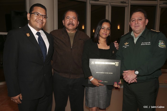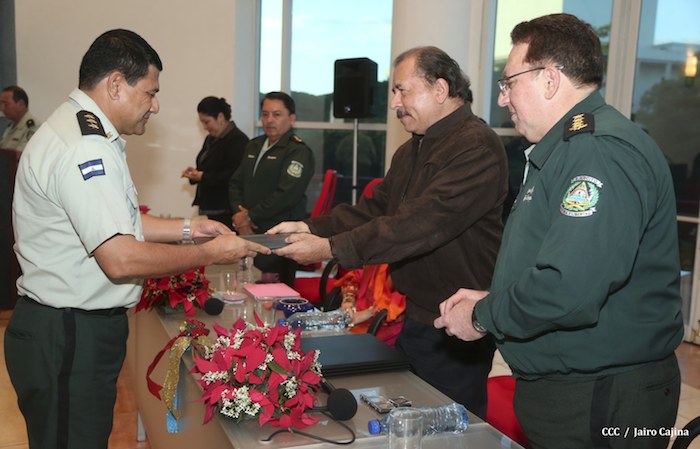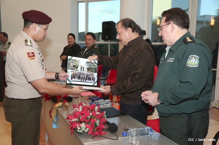 El Presidente de la República, comandante Daniel Ortega Saavedra, presidió este jueves la clausura del Noveno Curso Anual en Defensa y Seguridad del Ejército de Nicaragua, dedicado a la memoria del líder sudafricano Nelson Mandela, y del líder bolivariano, comandante Hugo Chávez Frías.