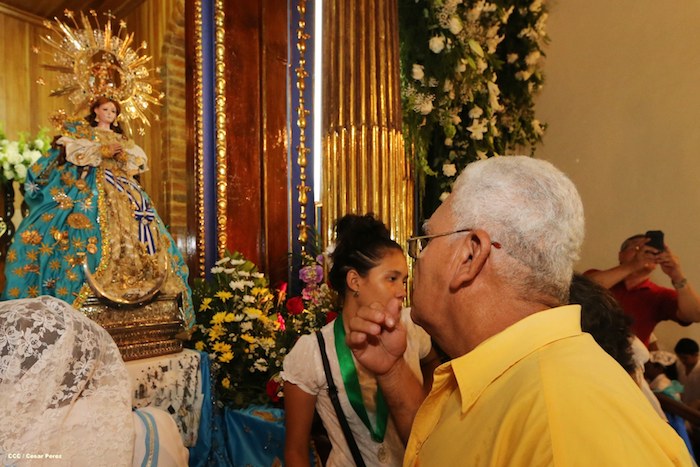 El fervor mariano y la fe en la Virgen María invadieron al pueblo católico nicaragüense, que una vez más se desbordó en la Basílica Menor de El Viejo para festejar junto al clero los 451 años de la llegada de la Virgen del Trono a Nicaragua con la Lavada de la Plata.