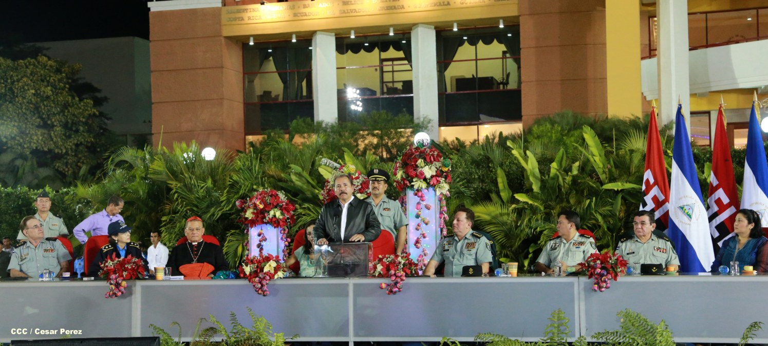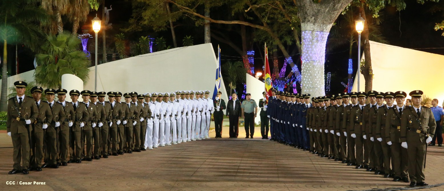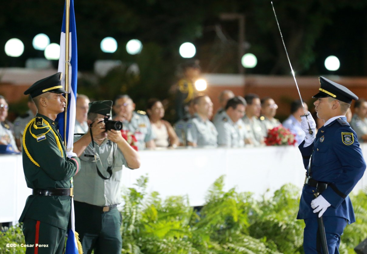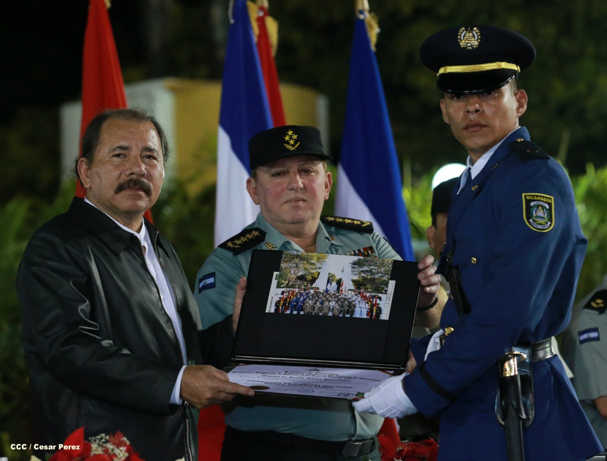 El presidente Daniel Ortega Saavedra y la compañera Rosario Murillo participan en la XVIII Graduación de Damas y Caballeros Cadetes del Ejército de Nicaragua.