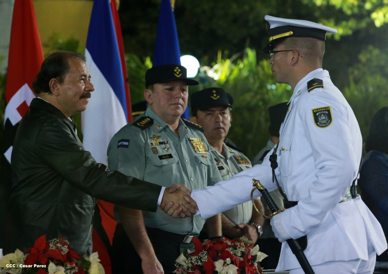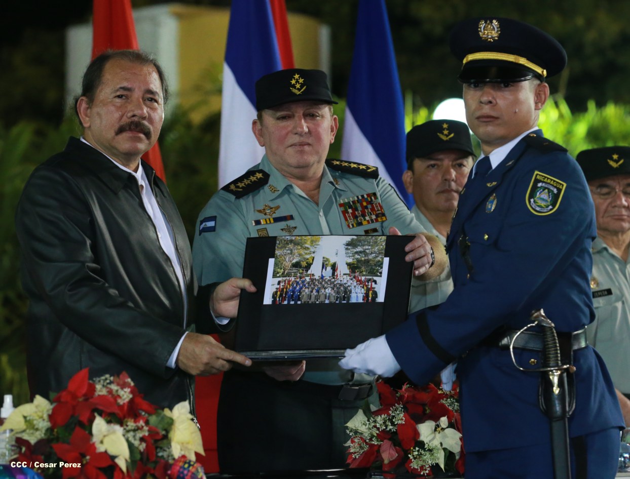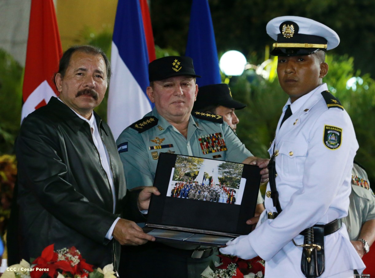 El presidente Daniel Ortega Saavedra y la compañera Rosario Murillo participan en la XVIII Graduación de Damas y Caballeros Cadetes del Ejército de Nicaragua.