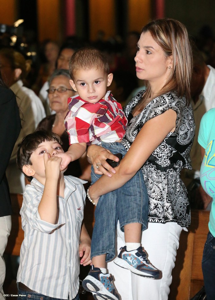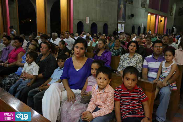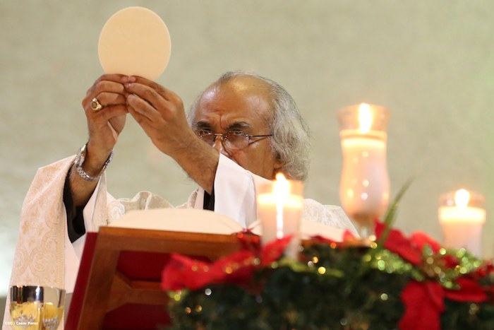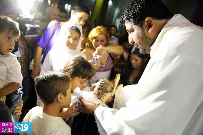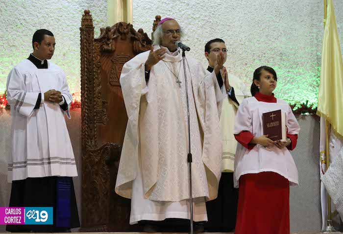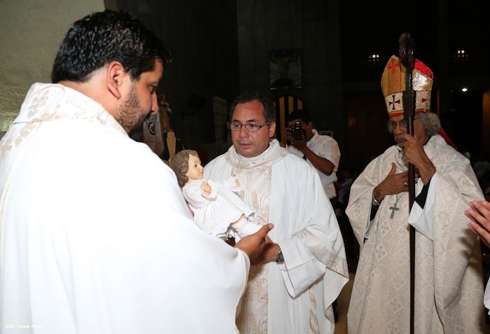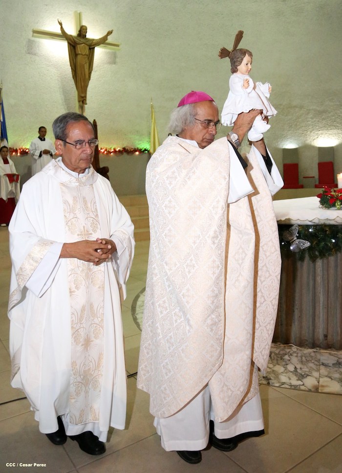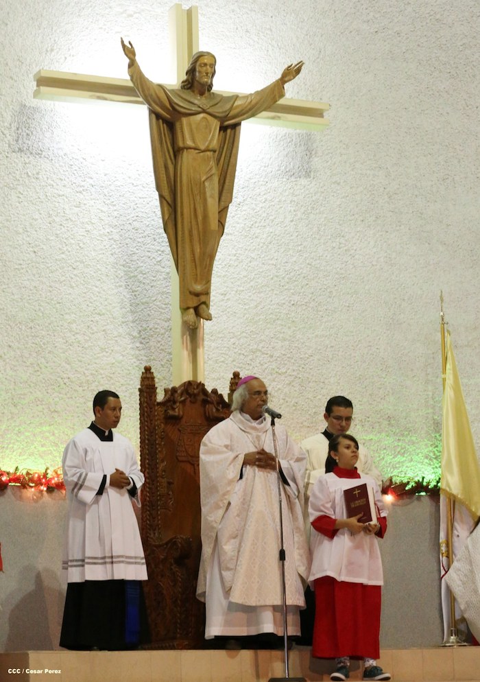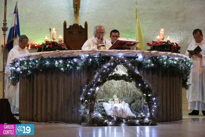 Fieles católicos celebran la Misa del Gallo en la Catedral de Managua.