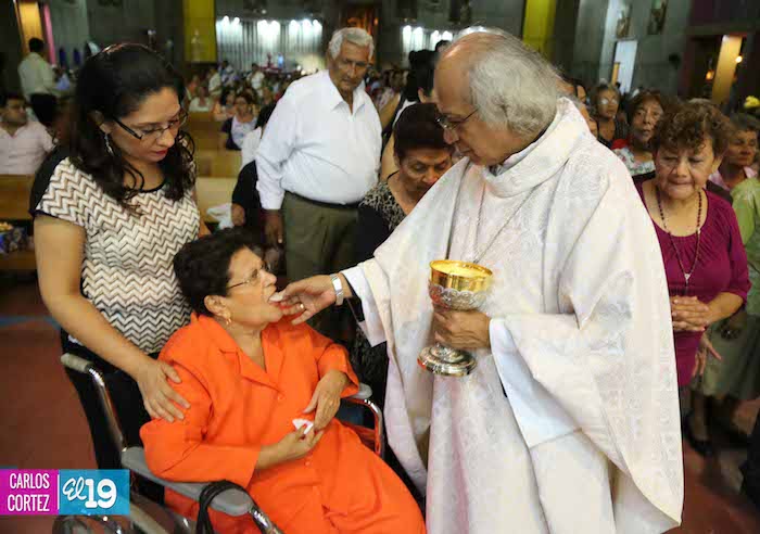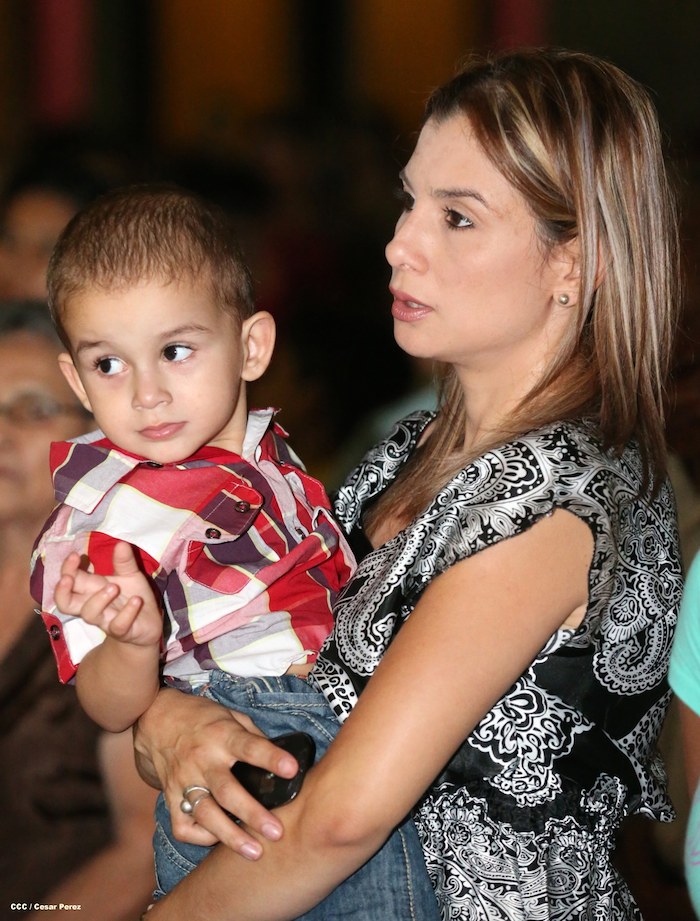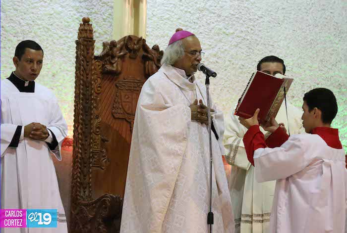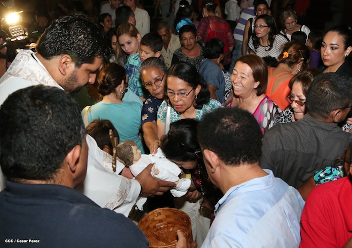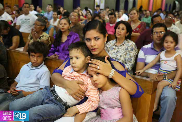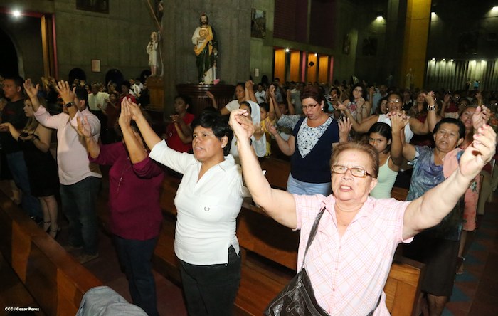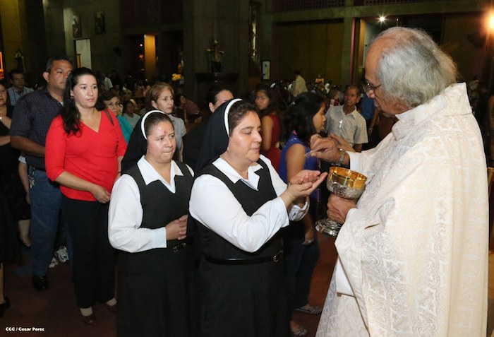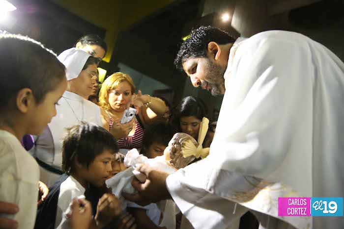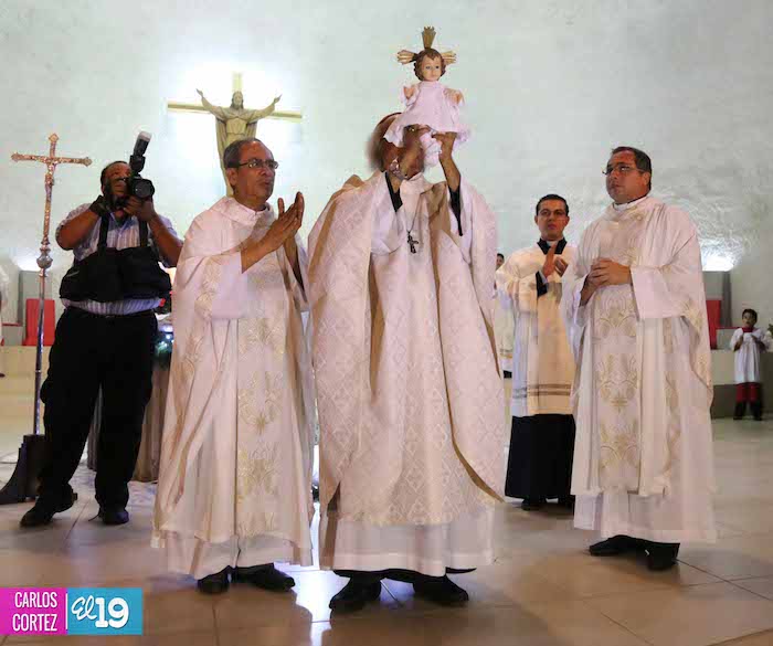 Fieles católicos celebran la Misa del Gallo en la Catedral de Managua.