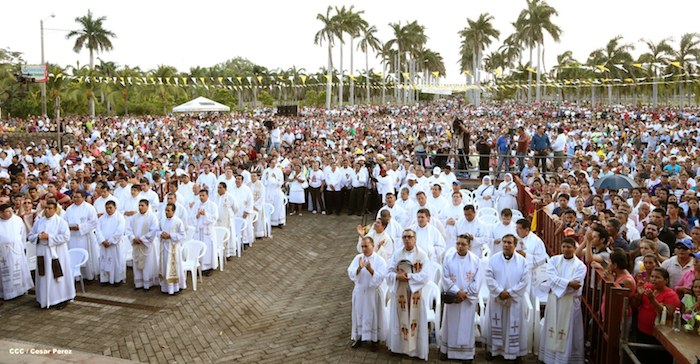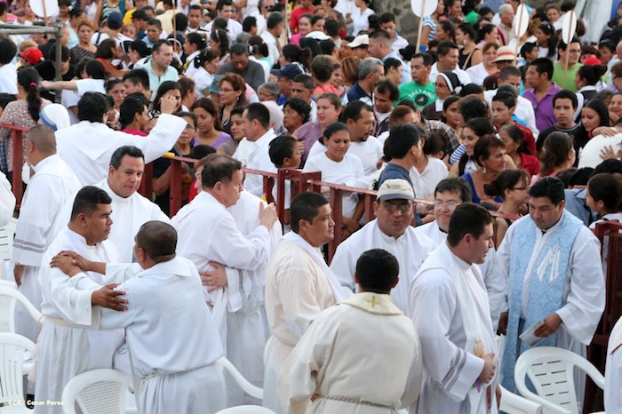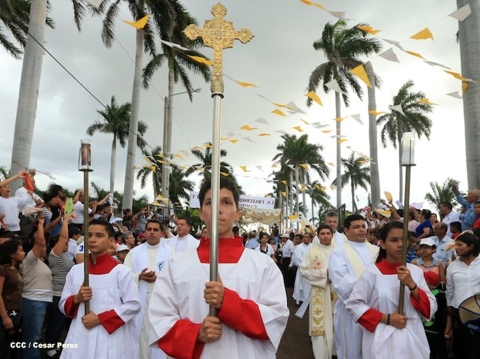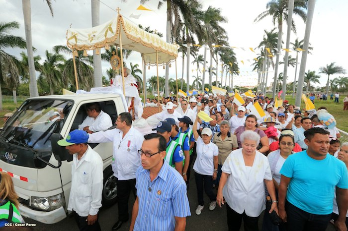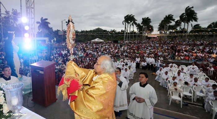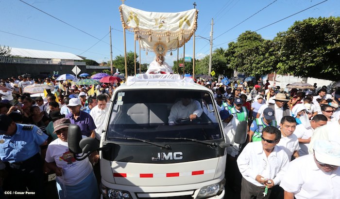 En saludo al año que comienza, la feligresía católica festejó este 1 de enero una solemne procesión del Santísimo Sacramento que recorrió las calles de Managua desde el Colegio Cristo Rey hasta culminar en la Catedral Inmaculada Concepción de María.