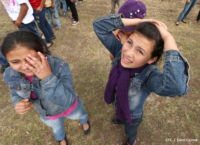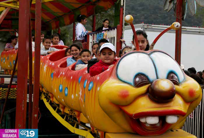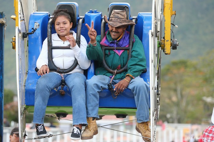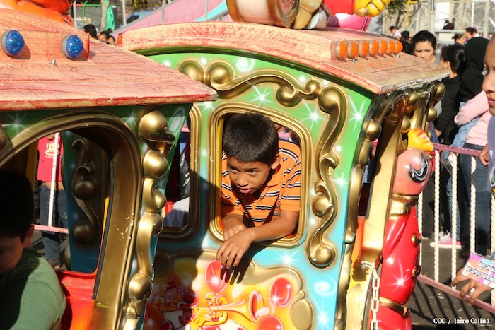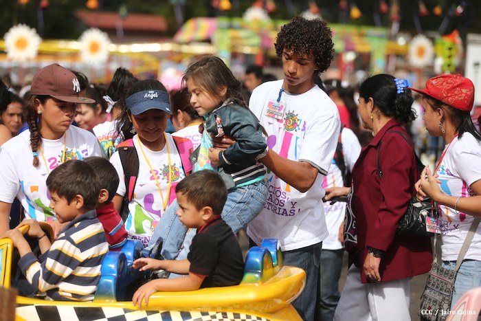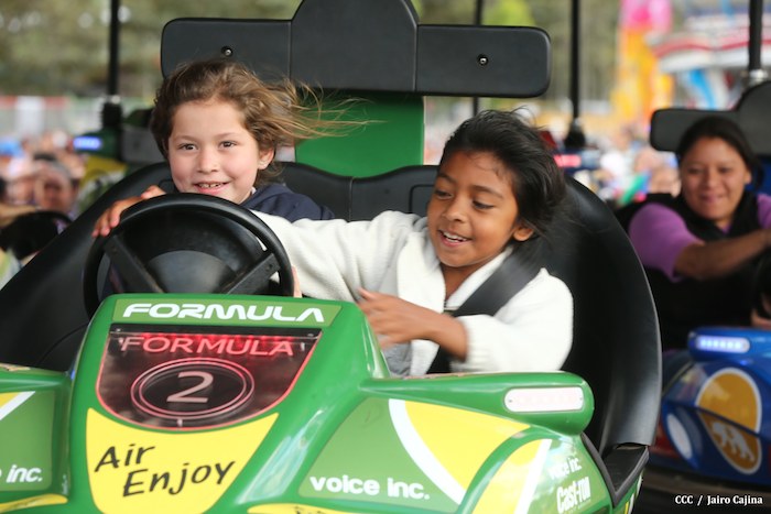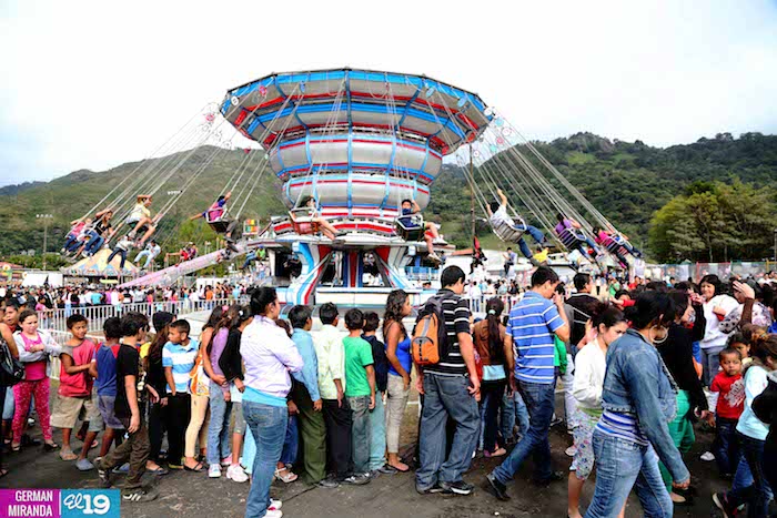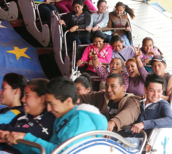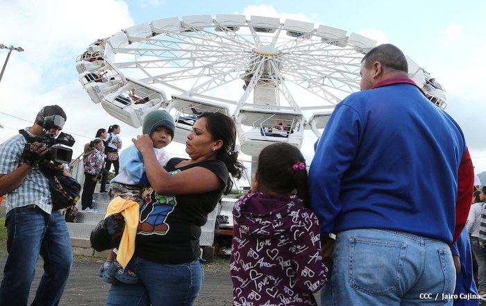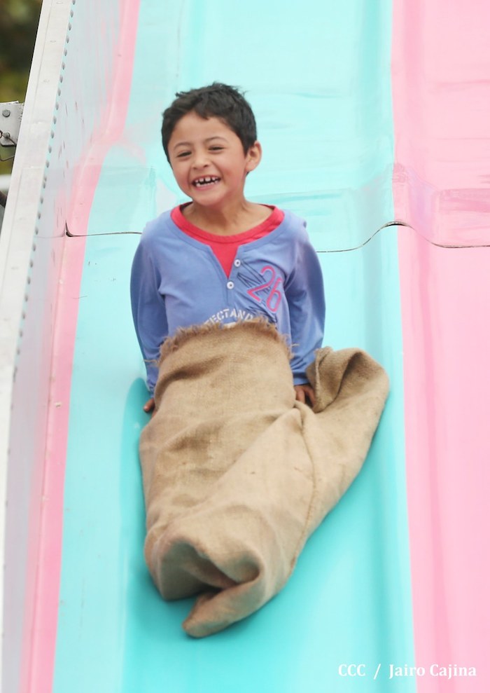 Familias jinoteganas de distintos municipios del departamento llegaron muy contentas hasta la capital departamental, en donde fue instalado por primera vez y por orientación del presidente Daniel Ortega y de la compañera Rosario Murillo, el Parque de la Niñez Feliz.