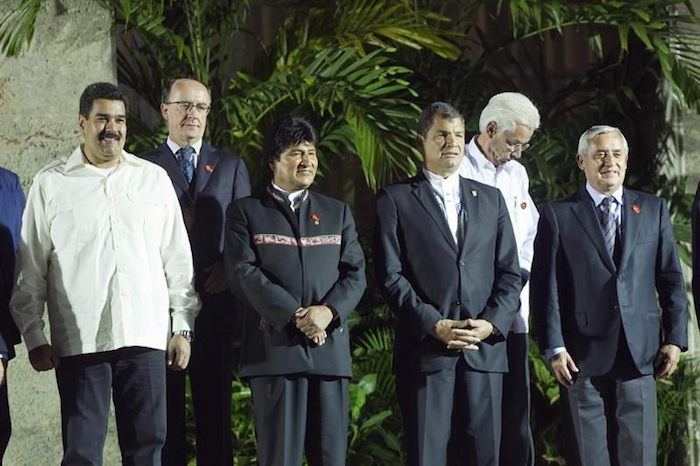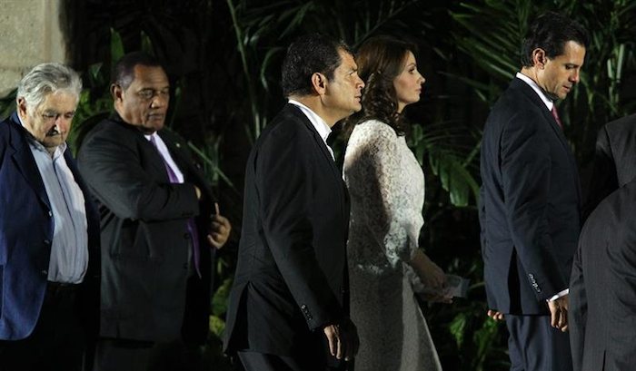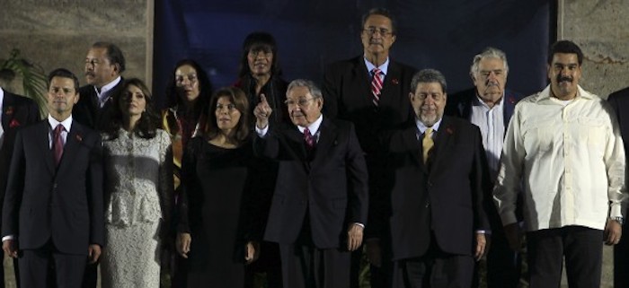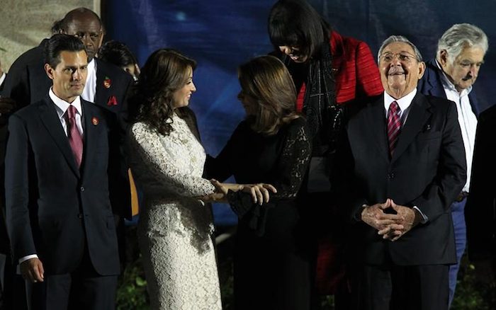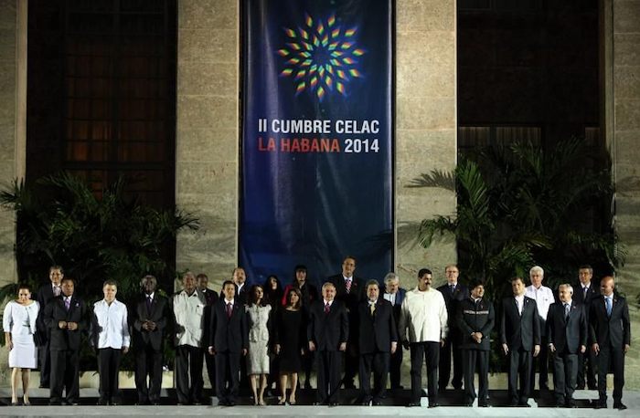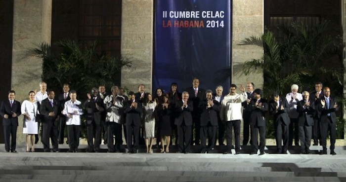 Los mandatarios de América Latina y el Caribe que asisten a la II Cumbre de la Celac recibieron el saludo del Presidente cubano, General de Ejército Raúl Castro, en el Palacio de la Revolución. En ese sitio emblemático se realizó la foto oficial de la Cumbre.